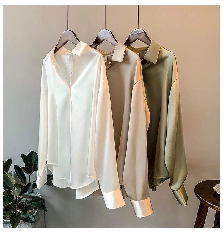 Camisa de Satén de Manga Larga Diseño Nicho para Mujer Primavera 2025 Nueva Versátil Drapeada Retro Estilo Hong Kong Camisa Top