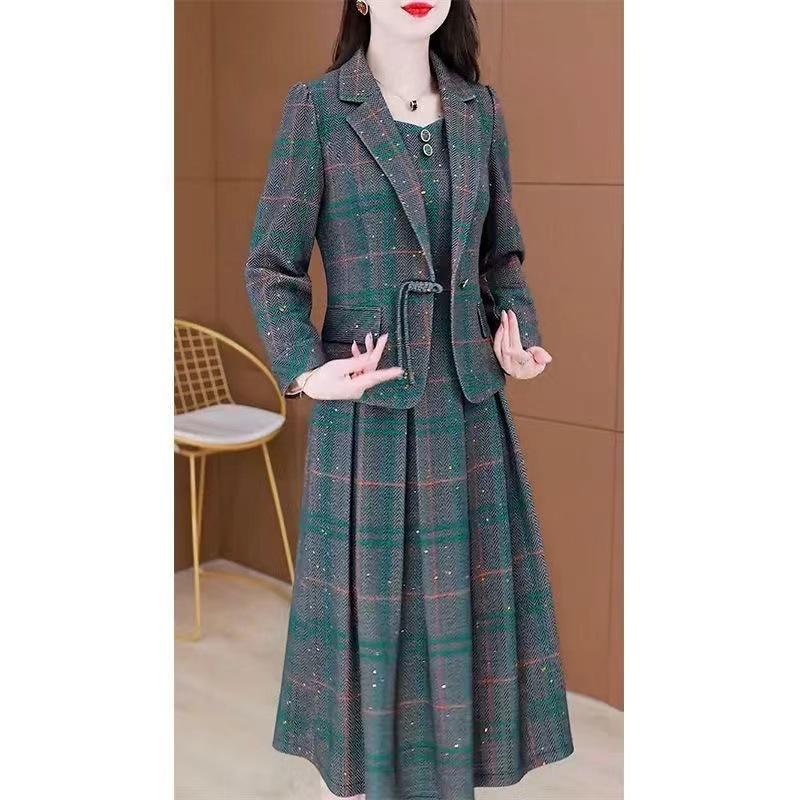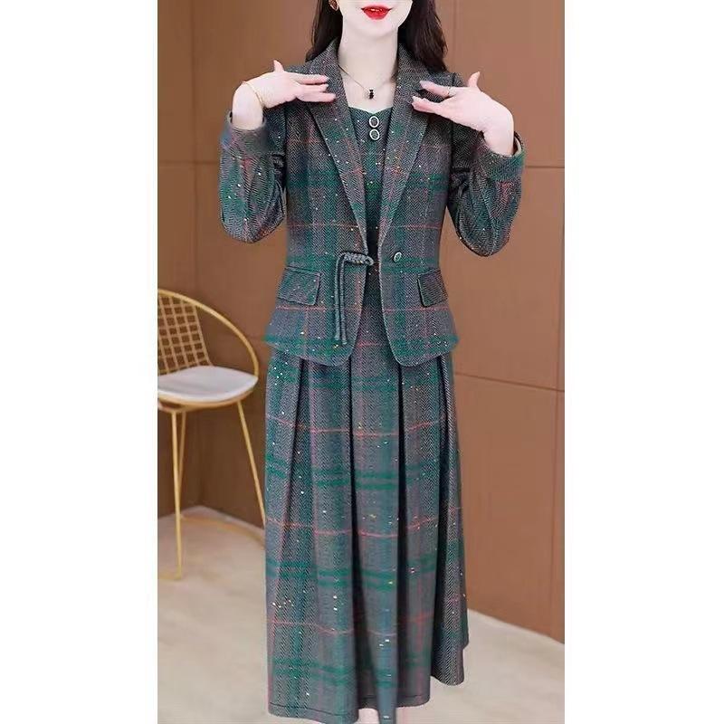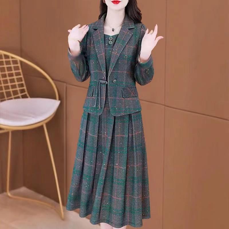 2025 Primavera y Otoño Nuevo Estilo en Stock Vestido Traje de Dos Piezas Mujer Cubre Vientre Adelgazante Temperamento Conjunto de Madre Mujer