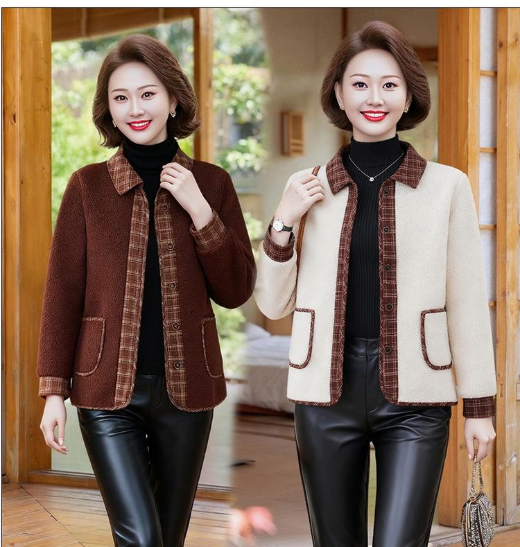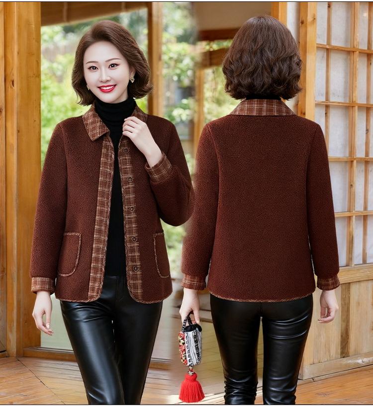 Ropa para mujeres de mediana edad y ancianas, abrigo corto de vellón de partículas engrosado con forro polar, ropa de invierno para mujeres, ropa nueva para mamás, abrigo de algodón cálido para petite