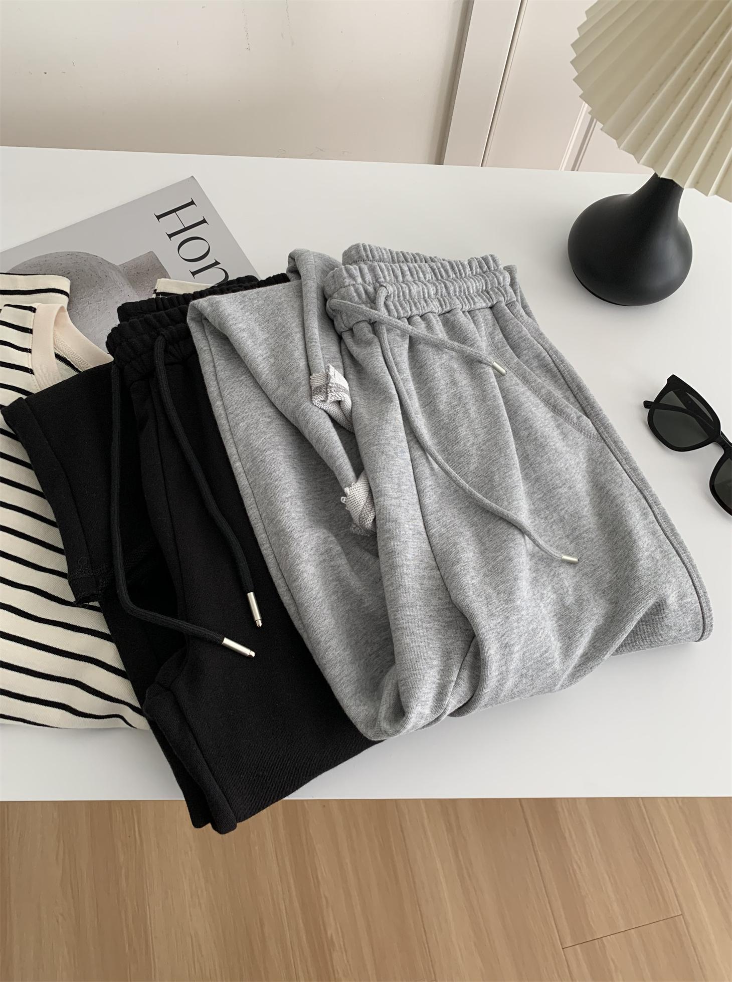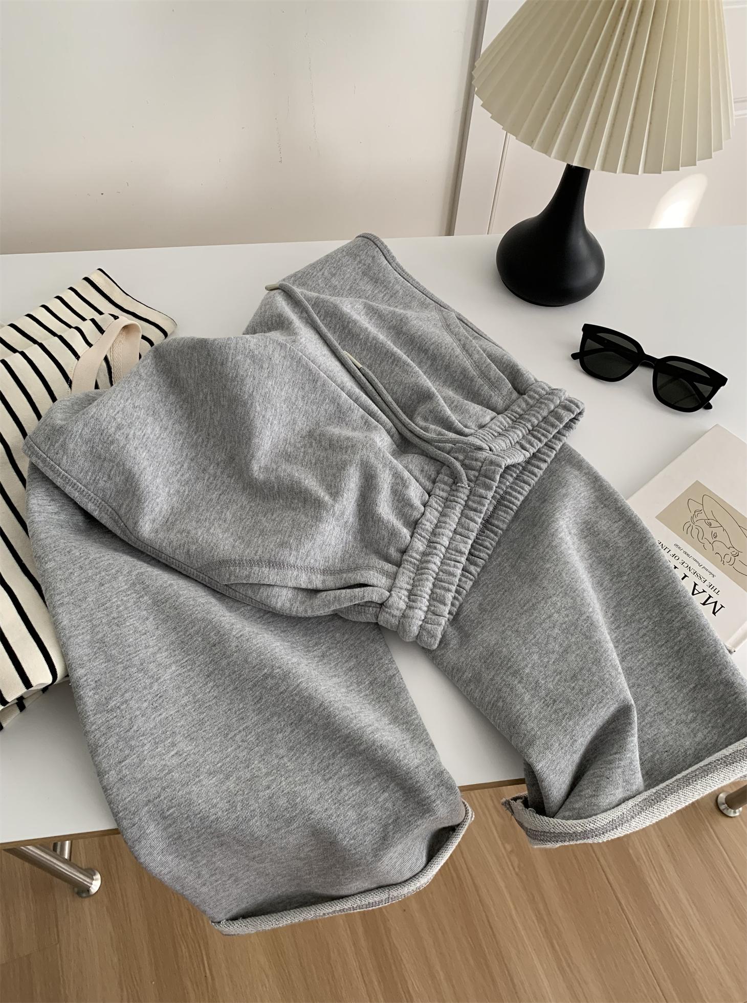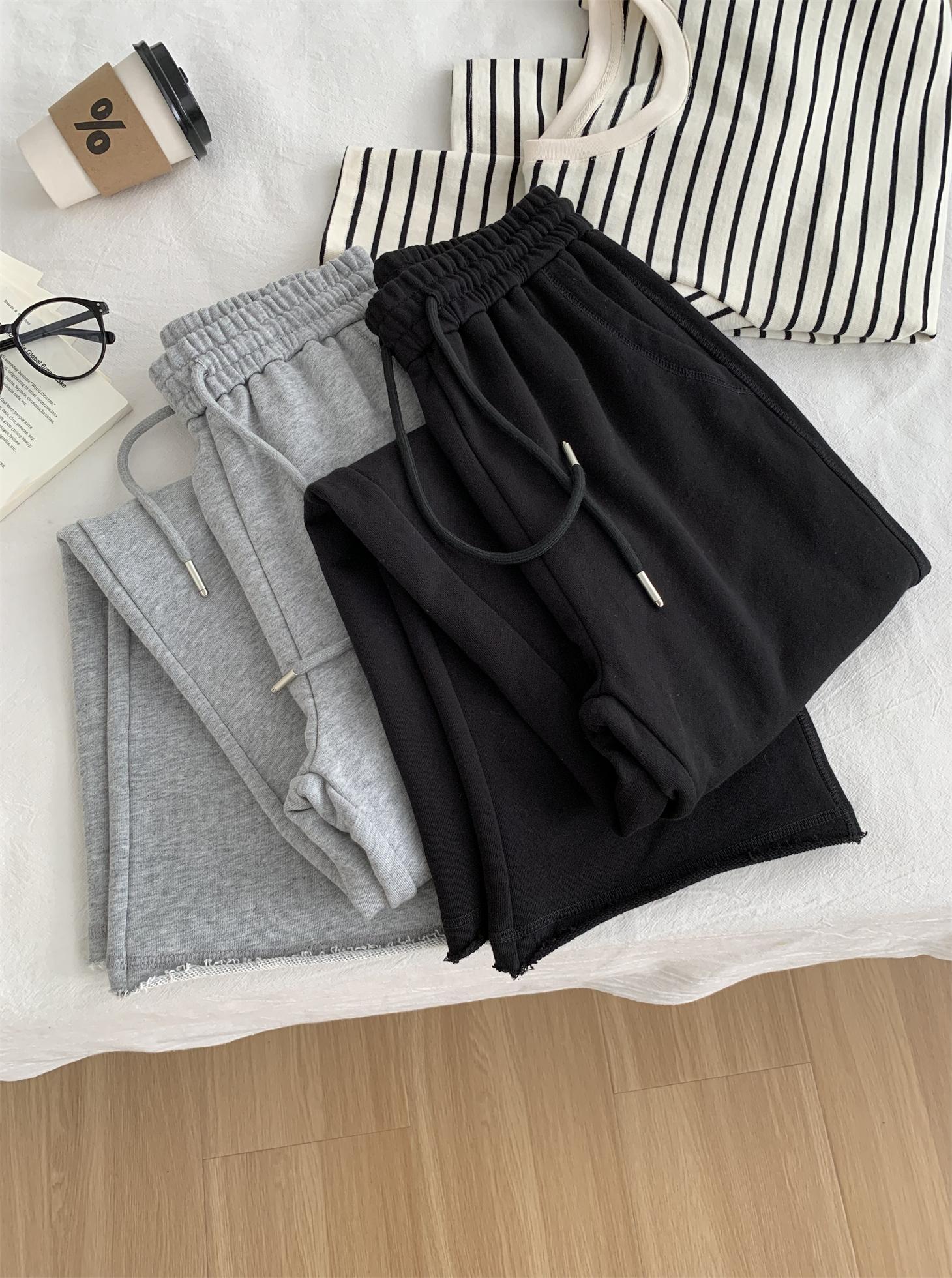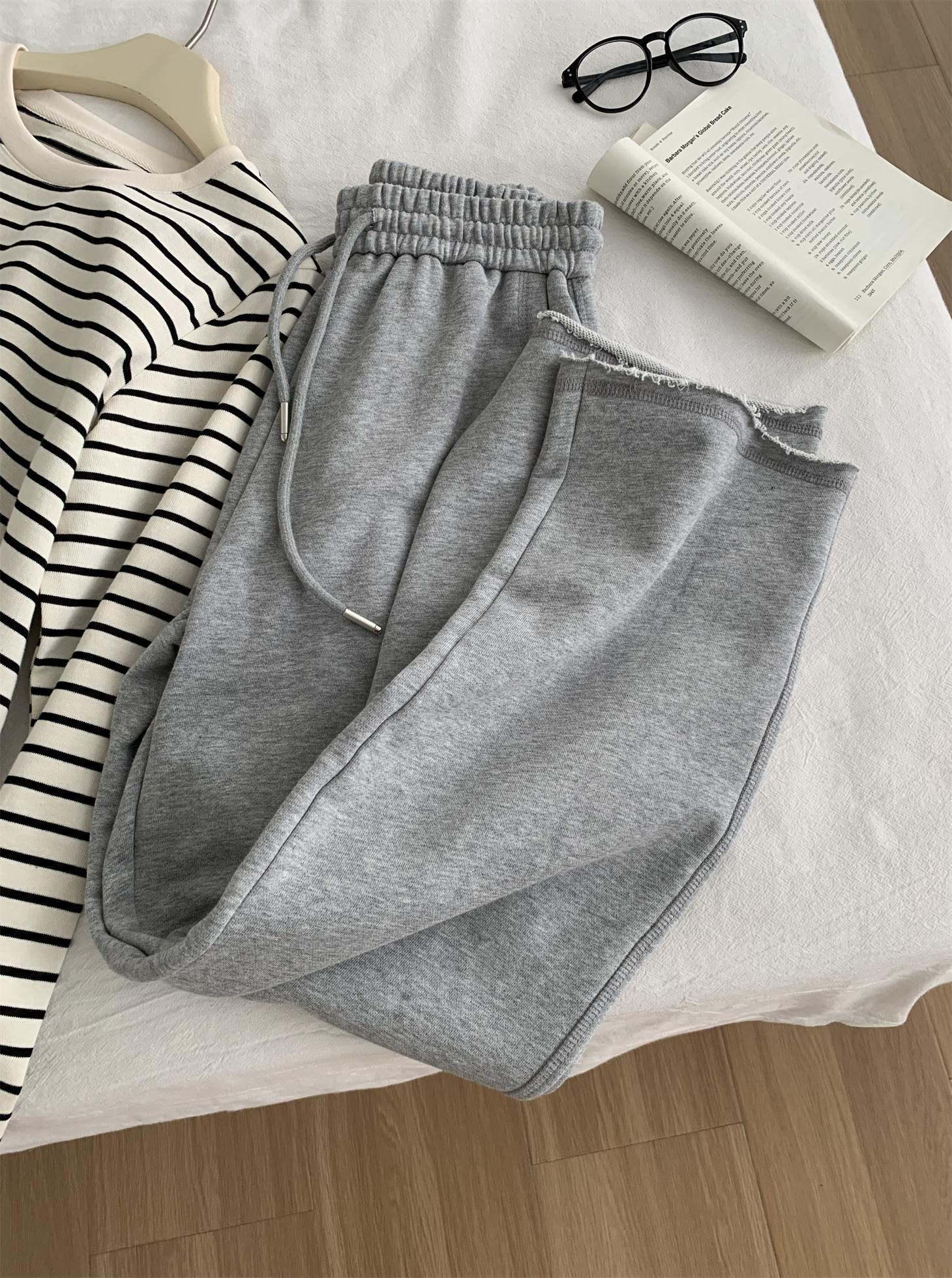 Pantalones Casuales de Pierna Recta Estilo Coreano Relajado para Mujer Otoño/Invierno Algodón Terry de Alto Gramaje Cintura Alta Cordón Ajustable Pantalones Deportivos Pantalones de Sudor con Borde Crudo