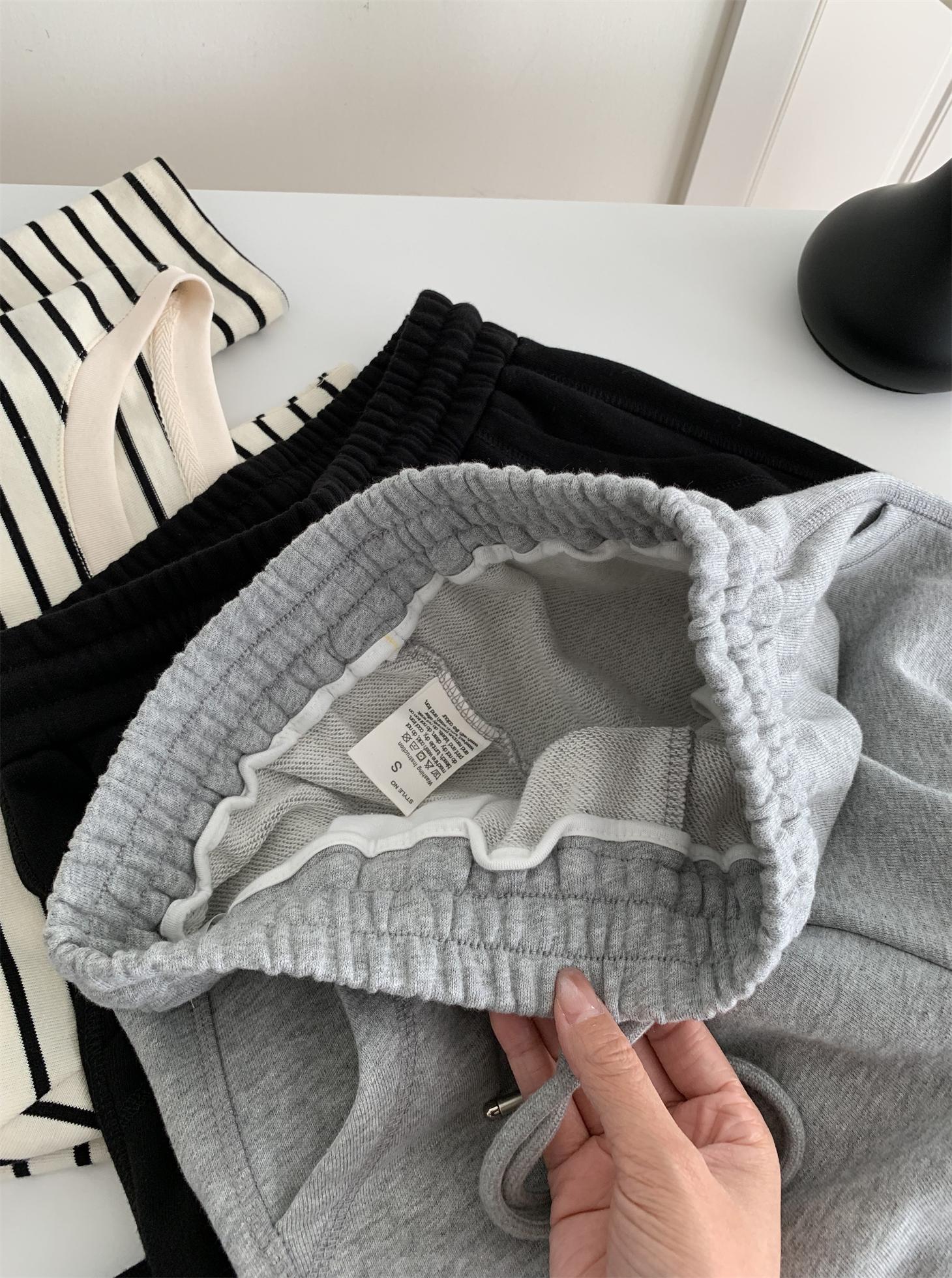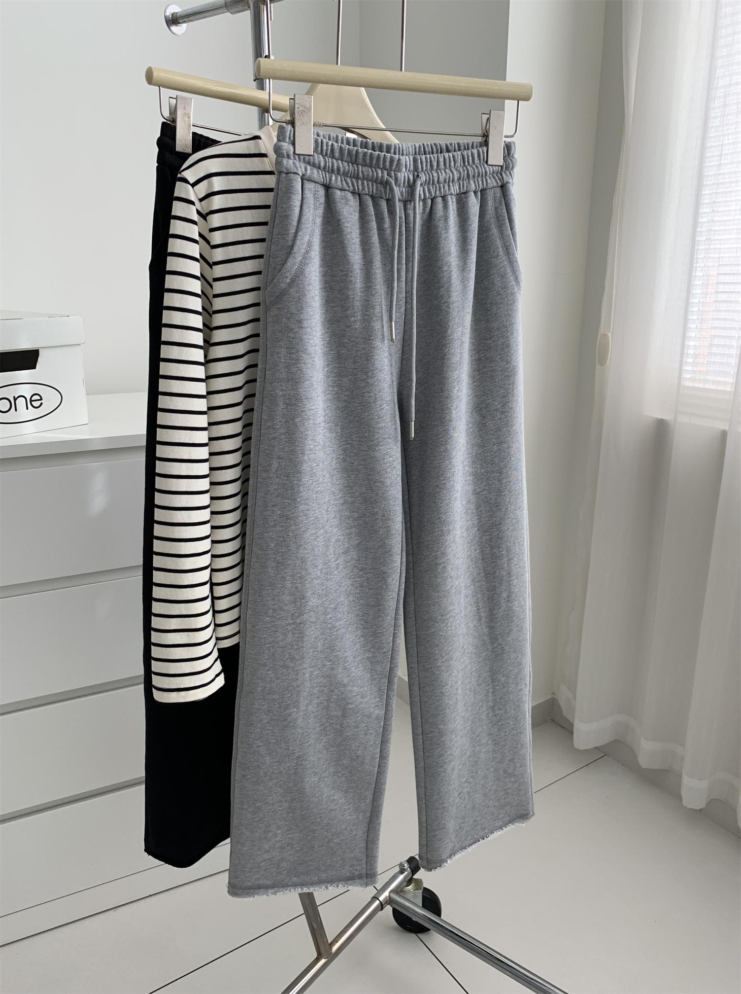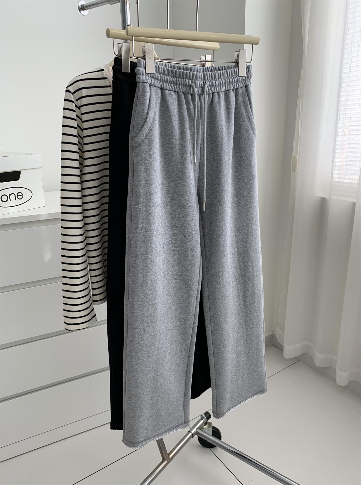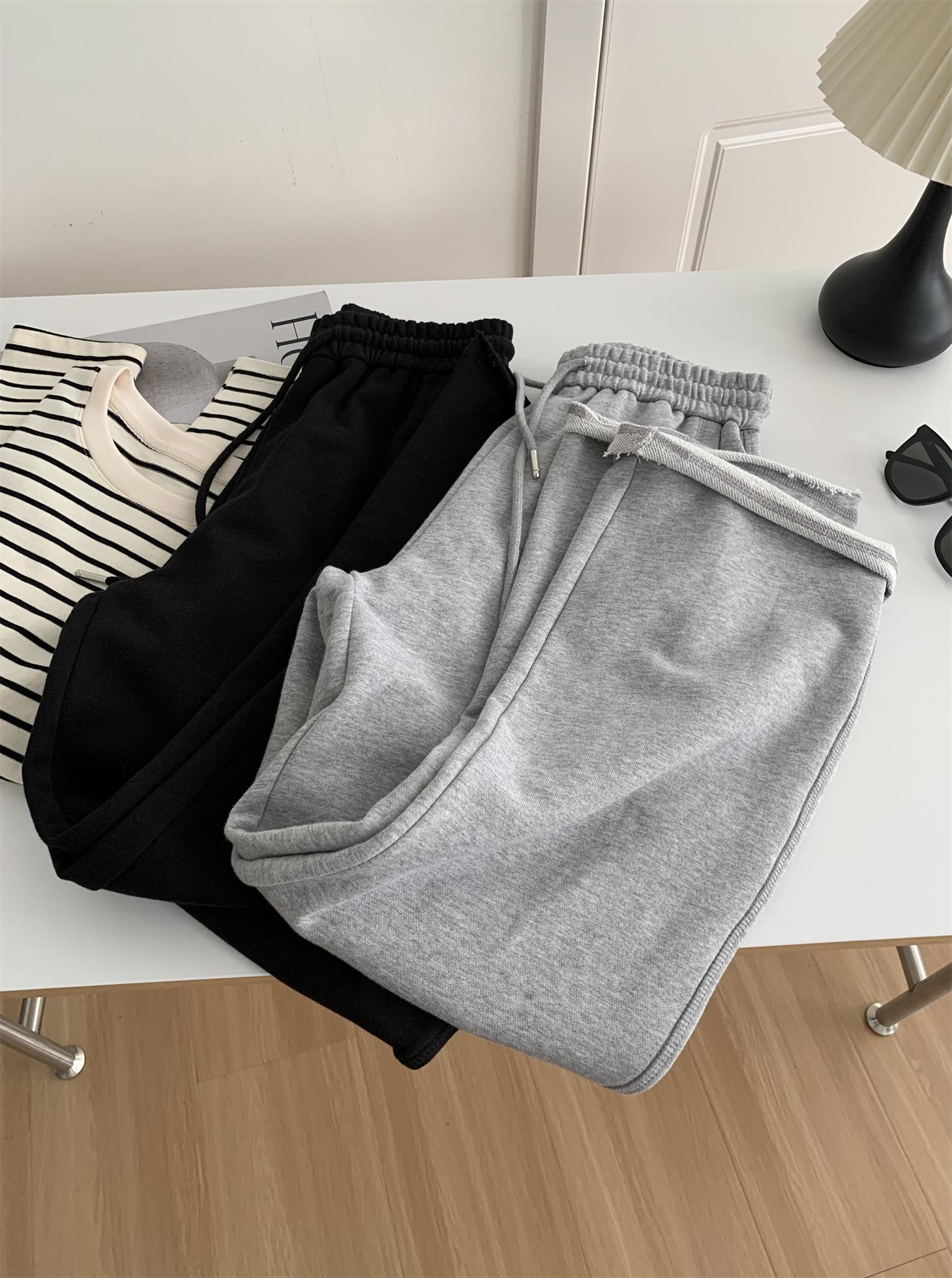 Pantalones Casuales de Pierna Recta Estilo Coreano Relajado para Mujer Otoño/Invierno Algodón Terry de Alto Gramaje Cintura Alta Cordón Ajustable Pantalones Deportivos Pantalones de Sudor con Borde Crudo