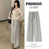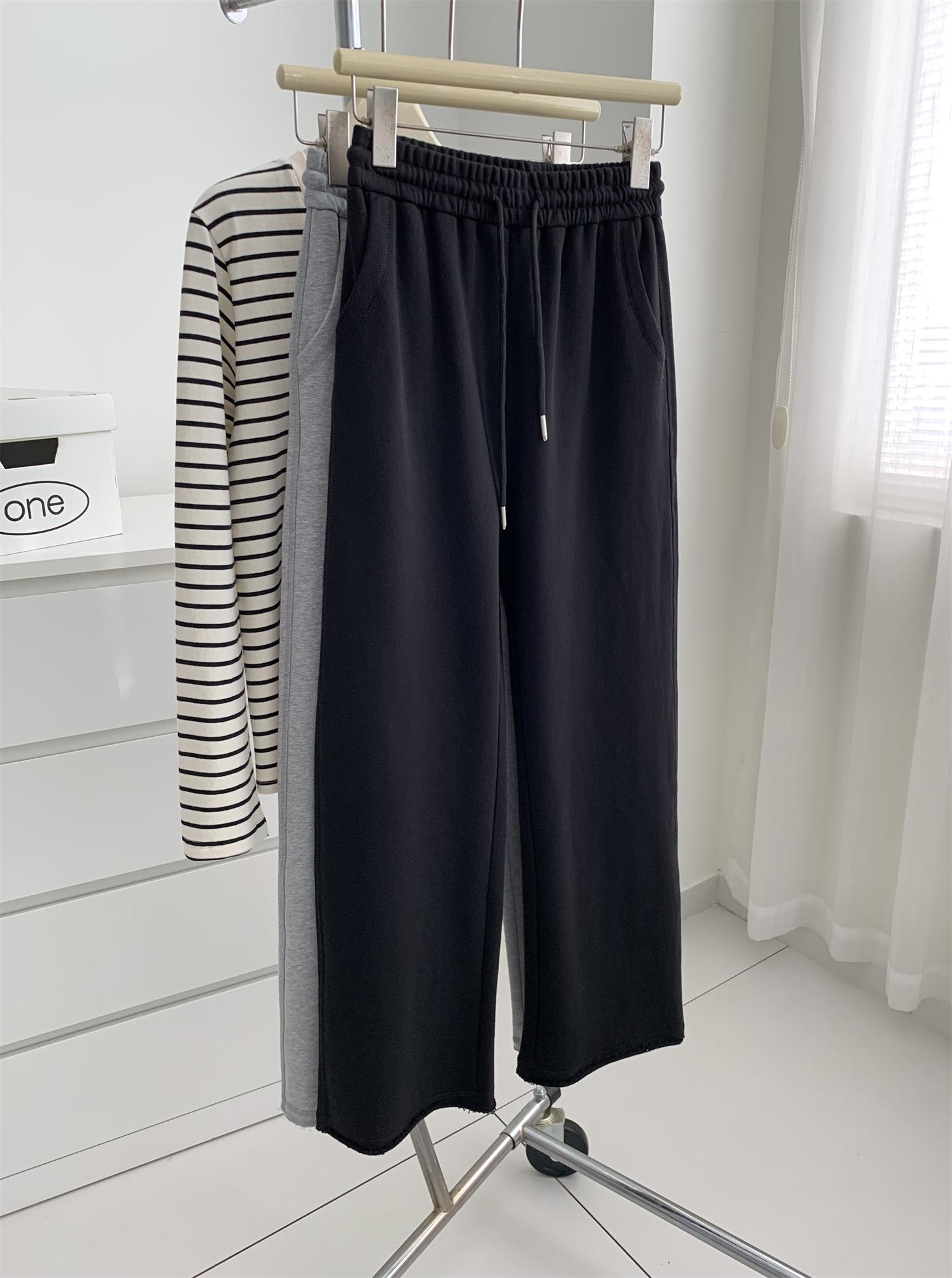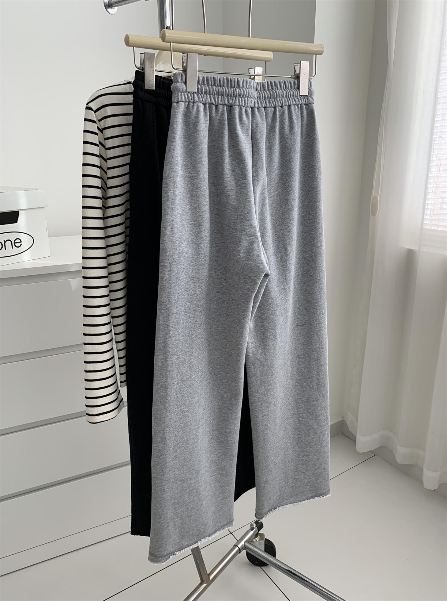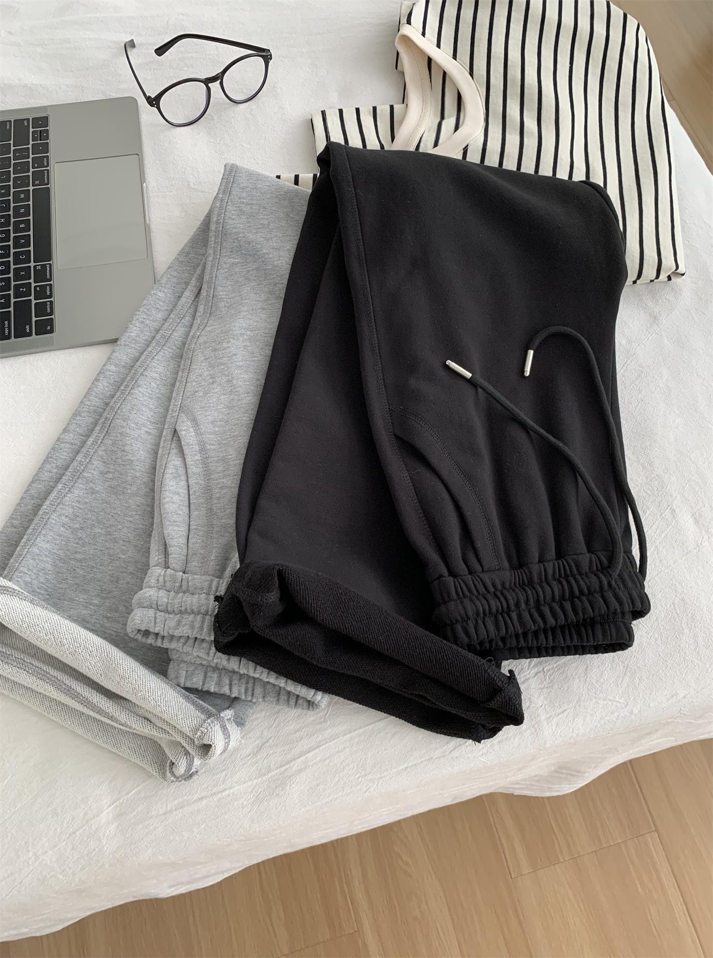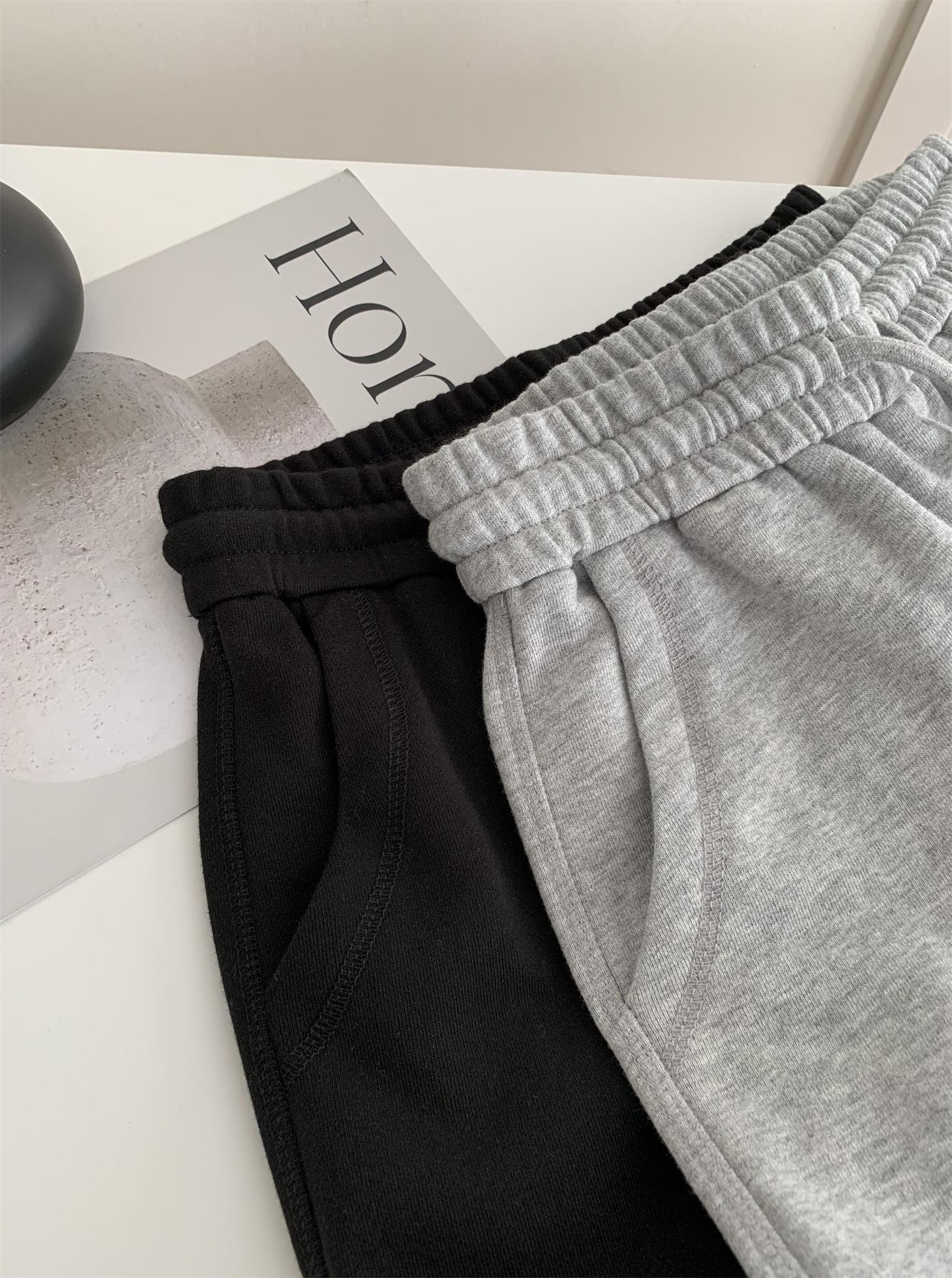Pantalones Casuales de Pierna Recta Estilo Coreano Relajado para Mujer Otoño/Invierno Algodón Terry de Alto Gramaje Cintura Alta Cordón Ajustable Pantalones Deportivos Pantalones de Sudor con Borde Crudo