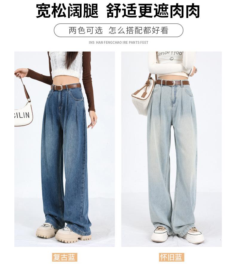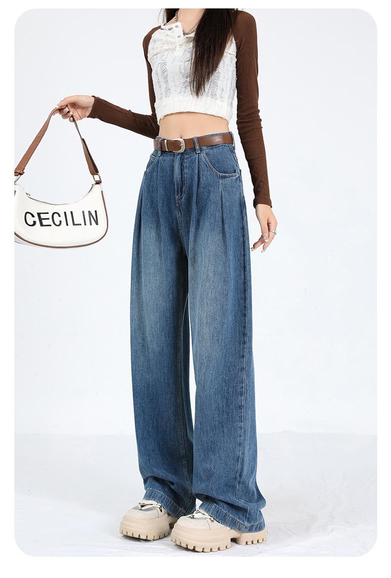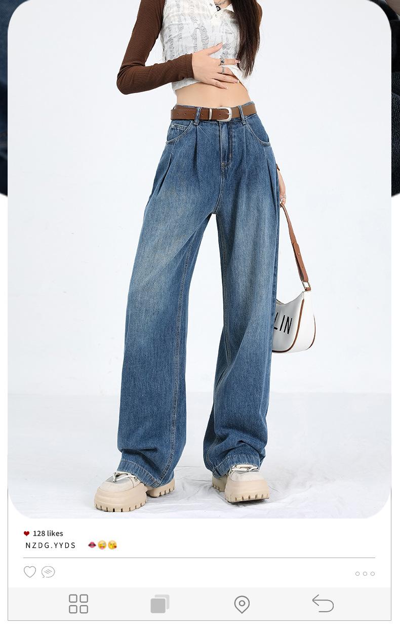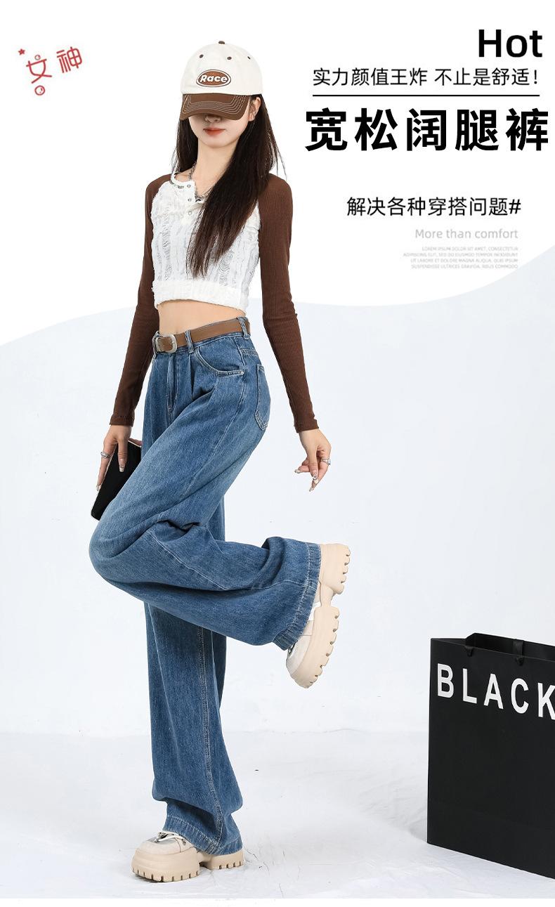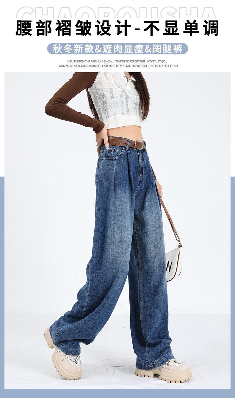 Amazon Aliexpress Cómodo Tejido Súper Suave Jeans de Pierna Ancha para Mujer Suelto Delgado Plisado Cintura Alta Suelto