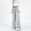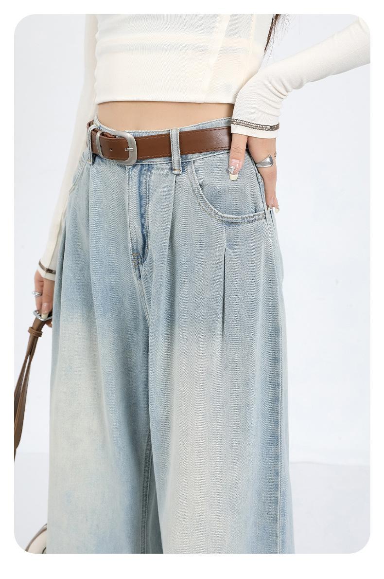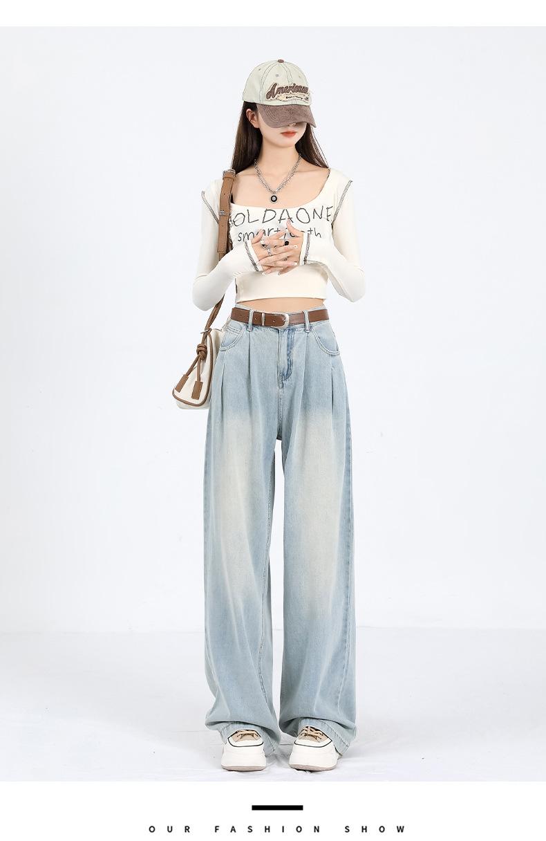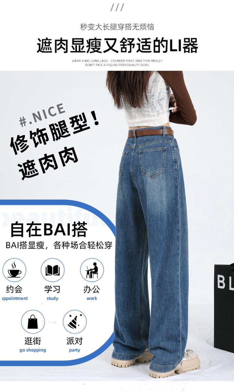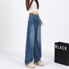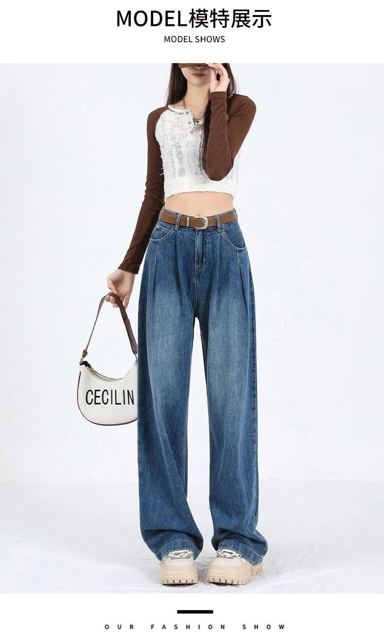 Amazon Aliexpress Cómodo Tejido Súper Suave Jeans de Pierna Ancha para Mujer Suelto Delgado Plisado Cintura Alta Suelto