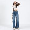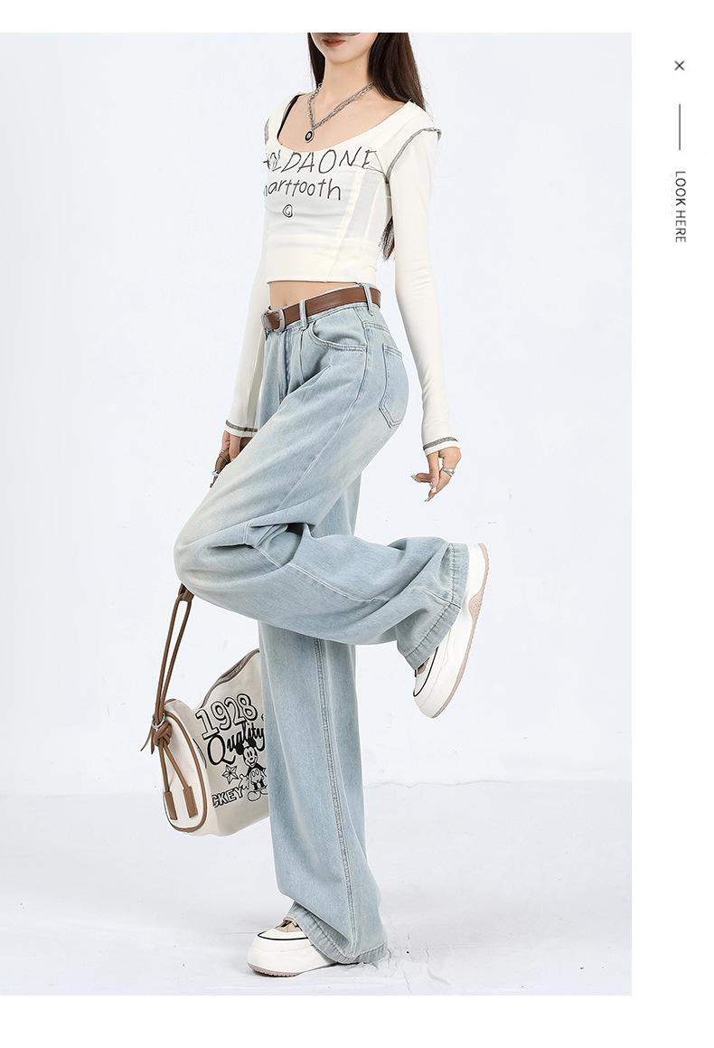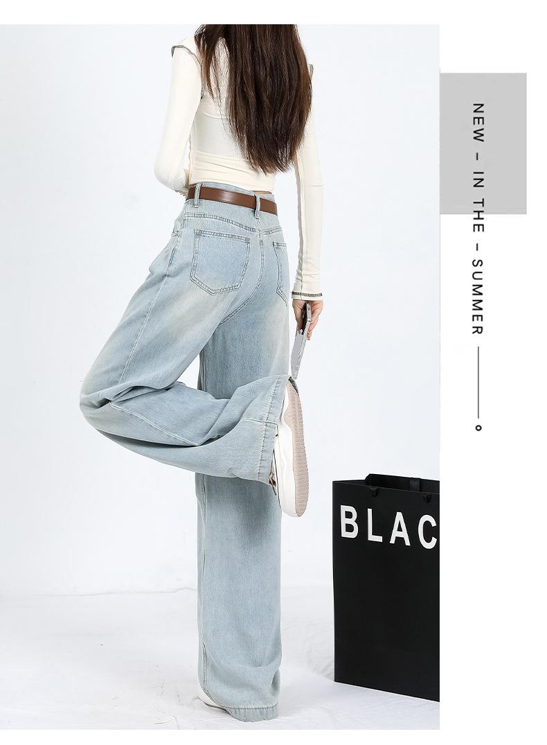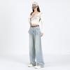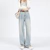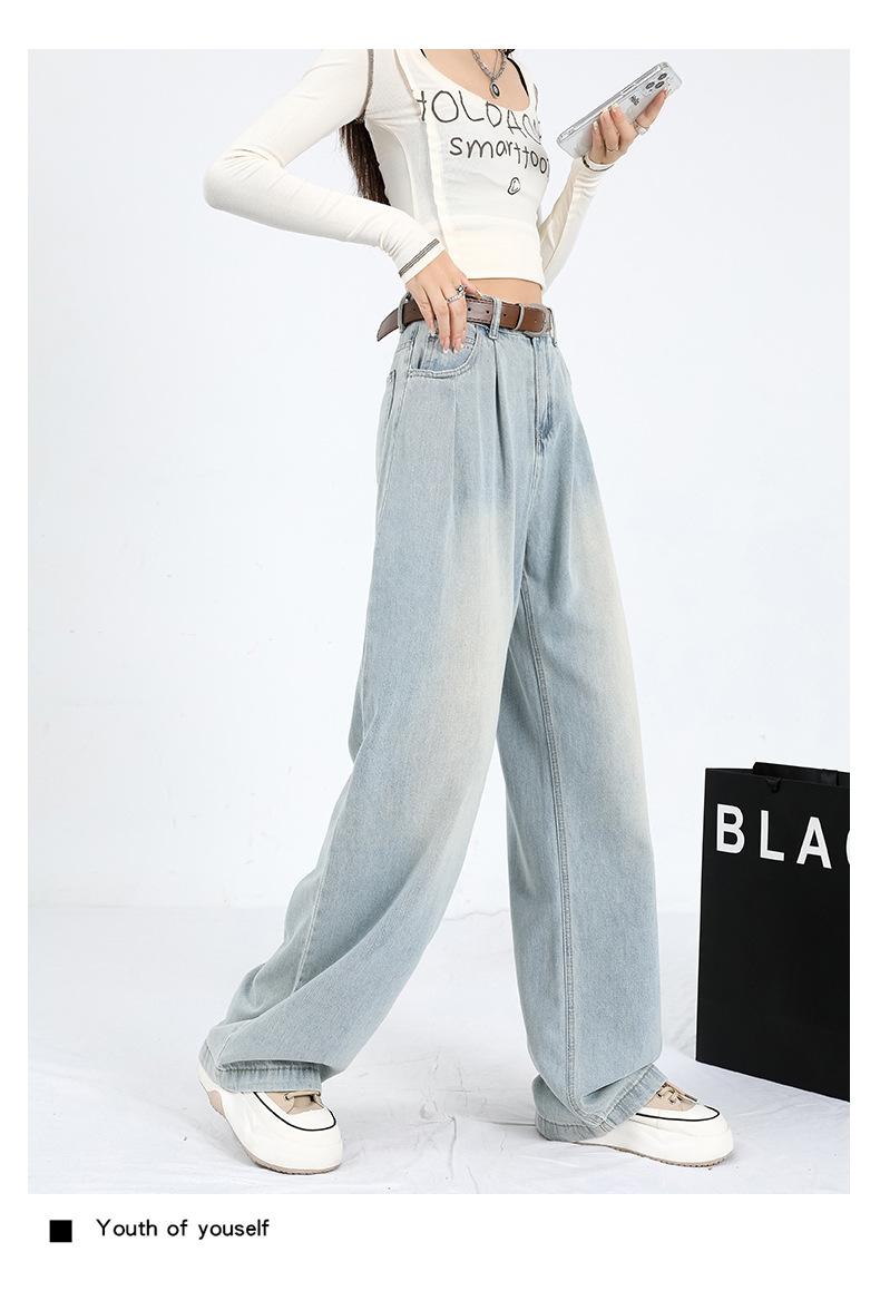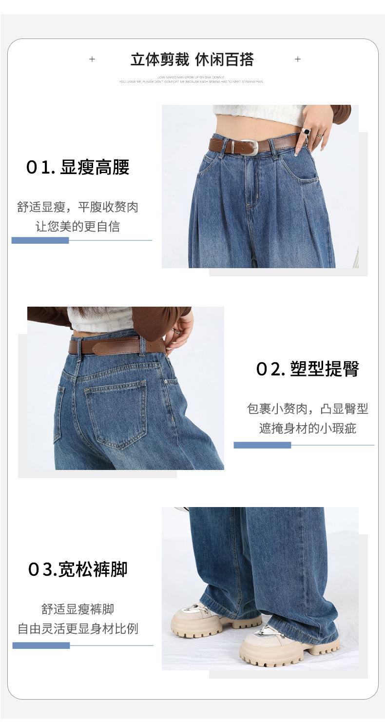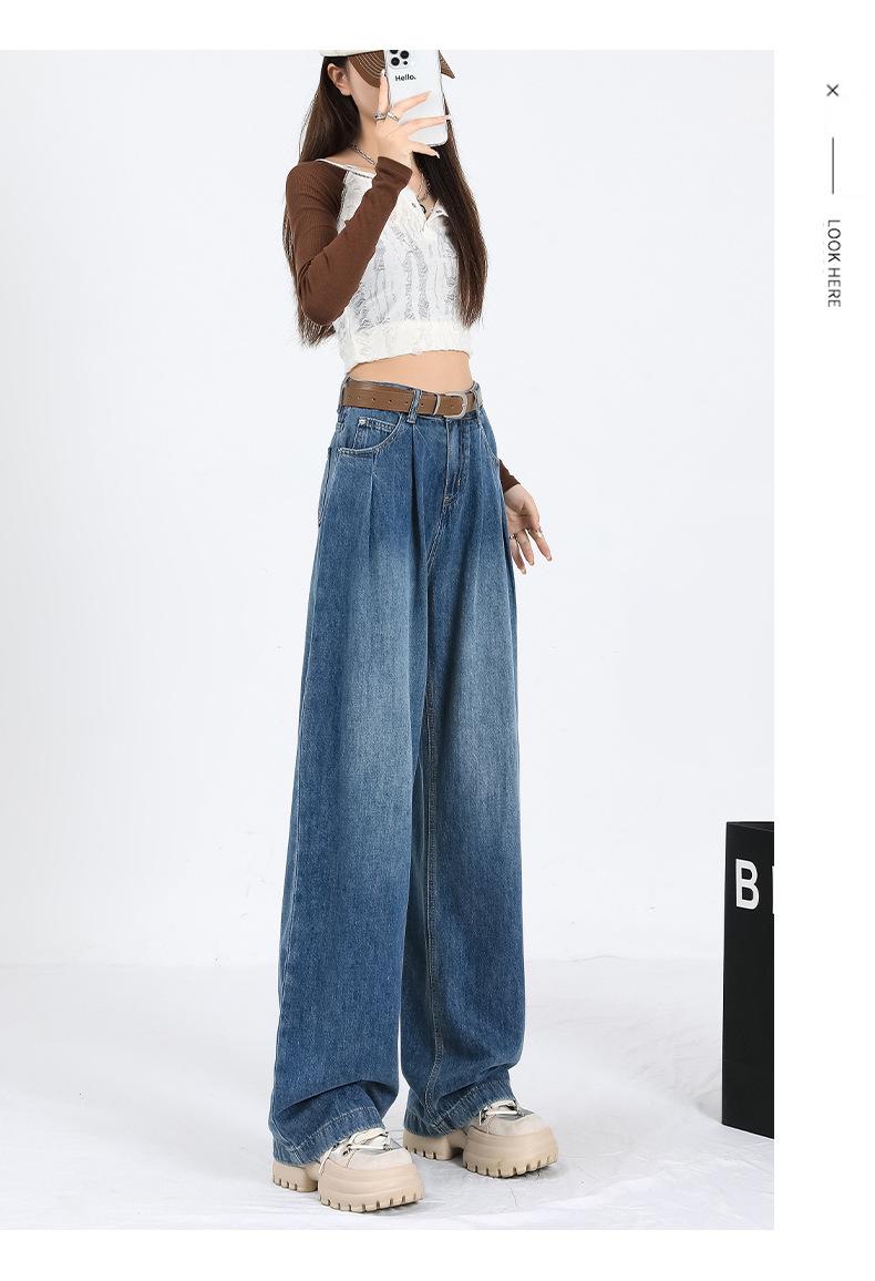 Amazon Aliexpress Cómodo Tejido Súper Suave Jeans de Pierna Ancha para Mujer Suelto Delgado Plisado Cintura Alta Suelto