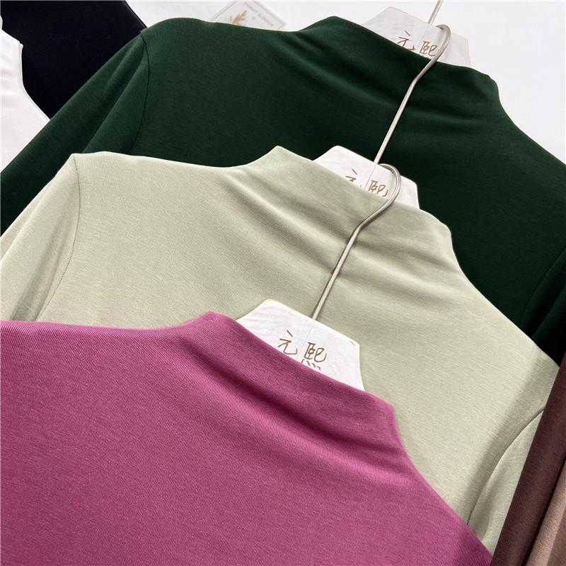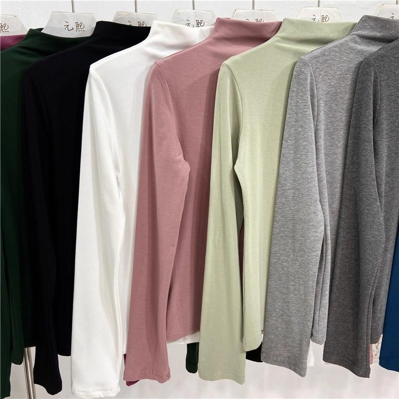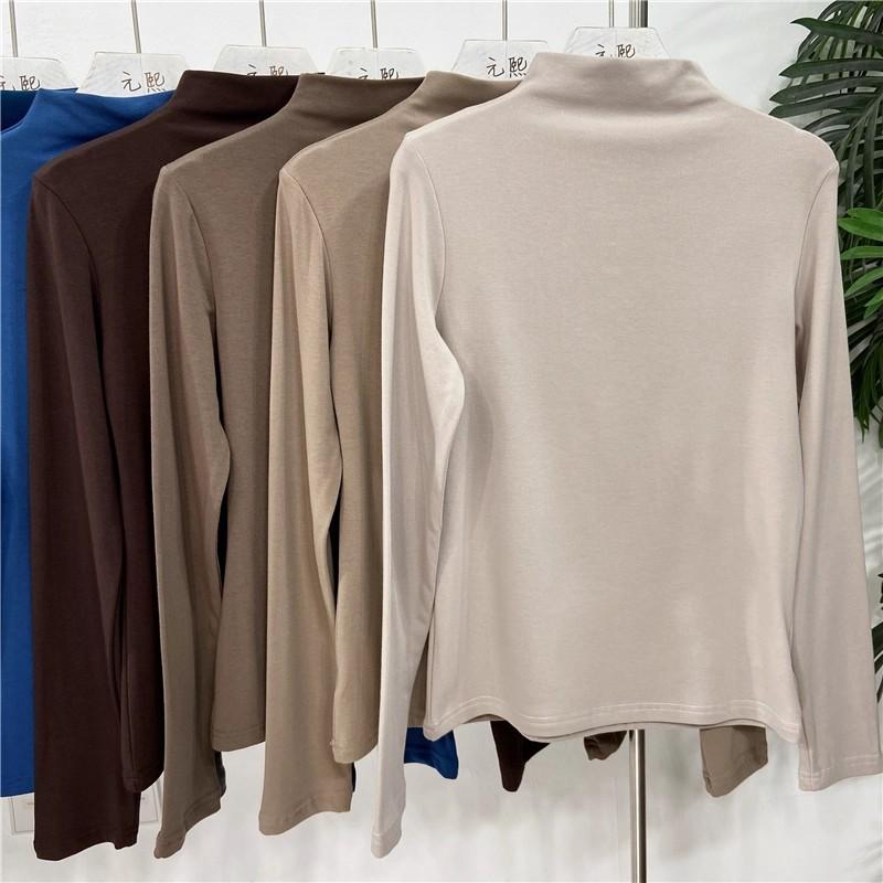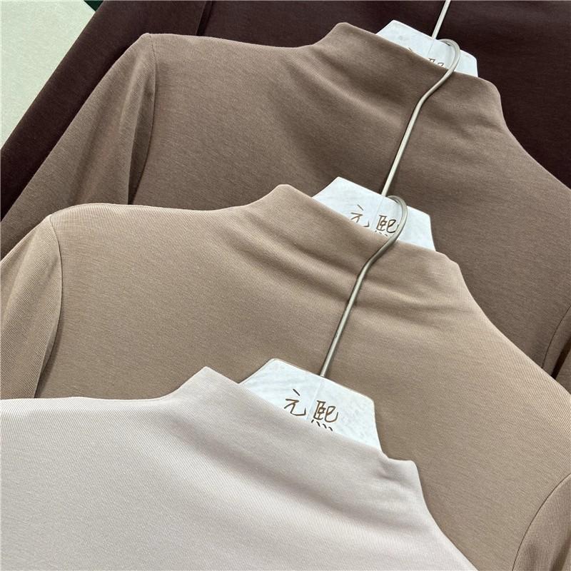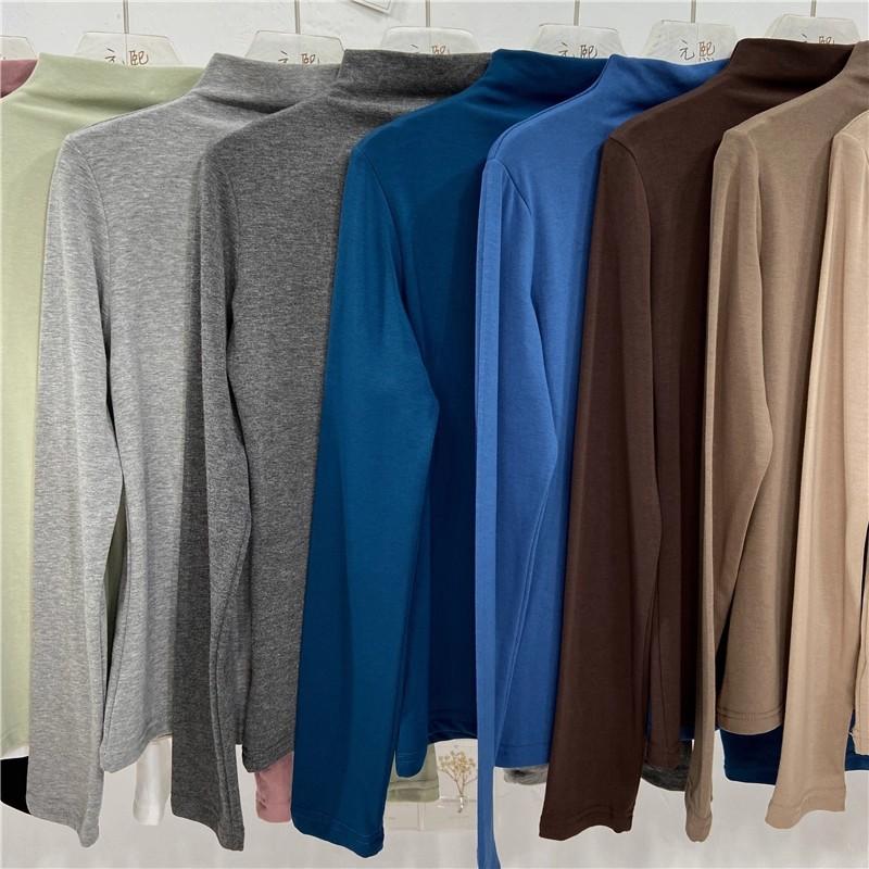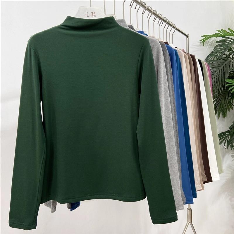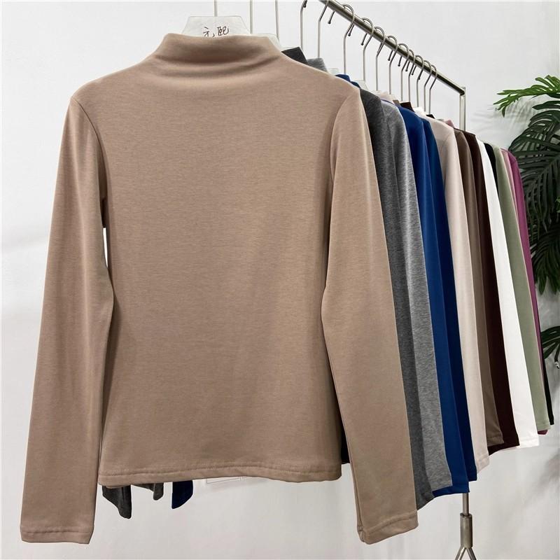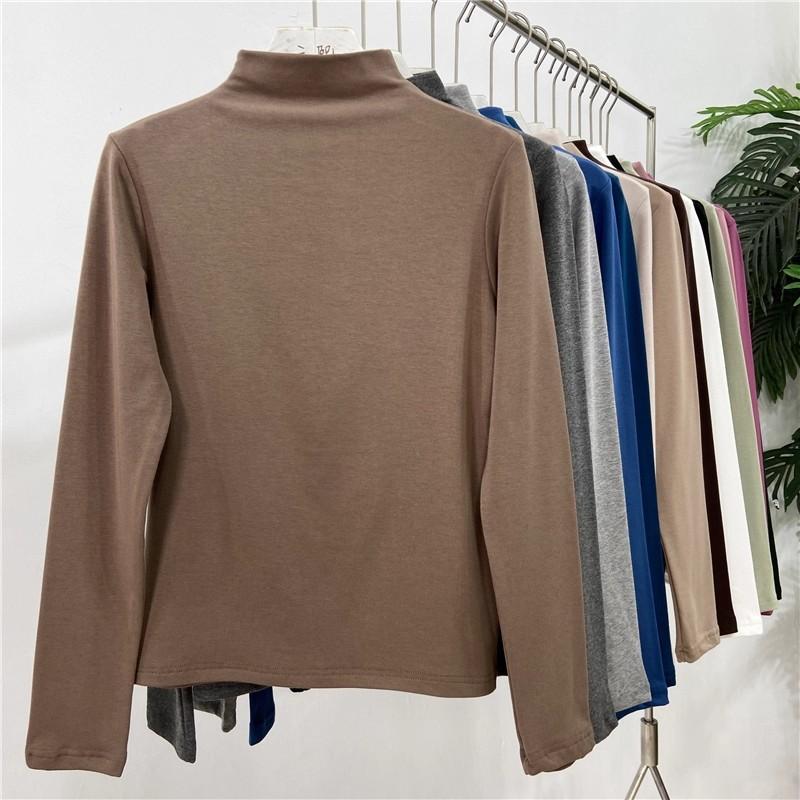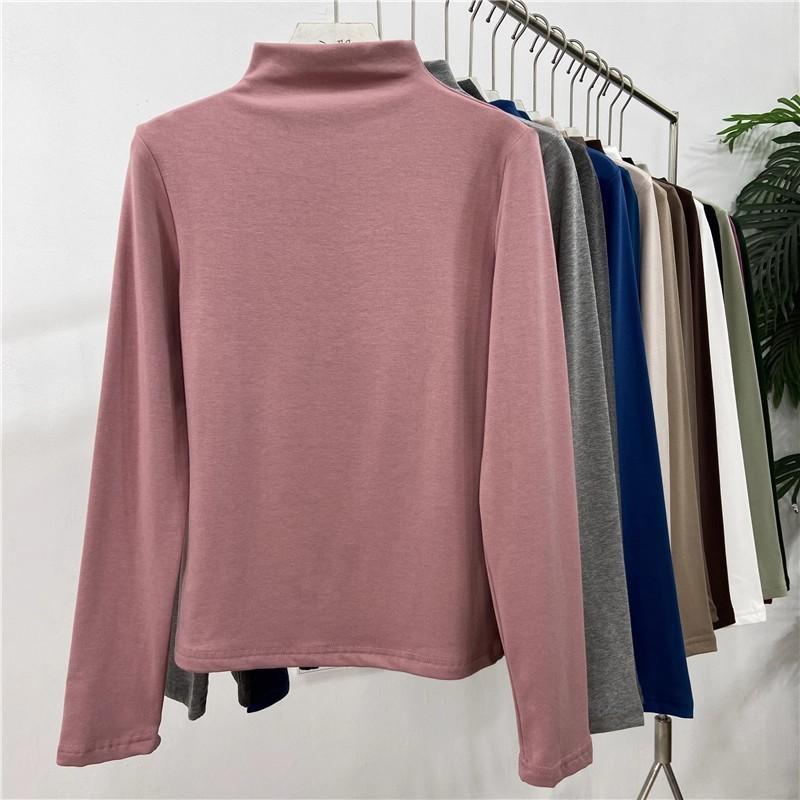 Camiseta básica de cuello semi alto para mujer otoño nueva corte ajustado ropa interior color sólido manga larga camiseta para mujer top otoño e invierno top grueso