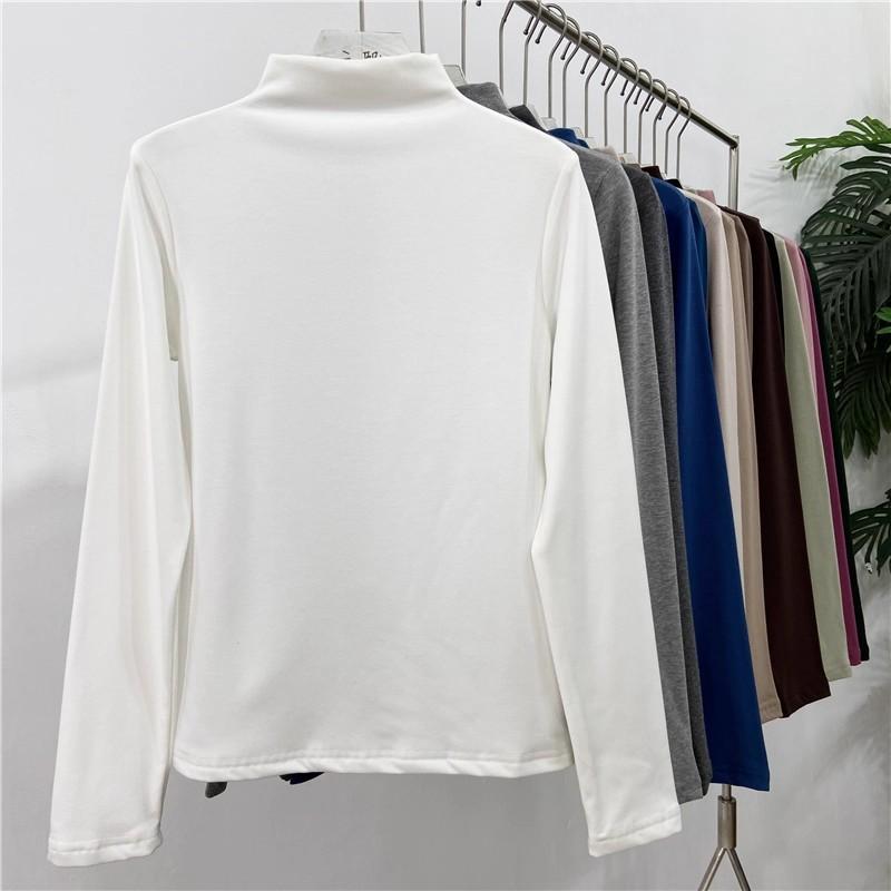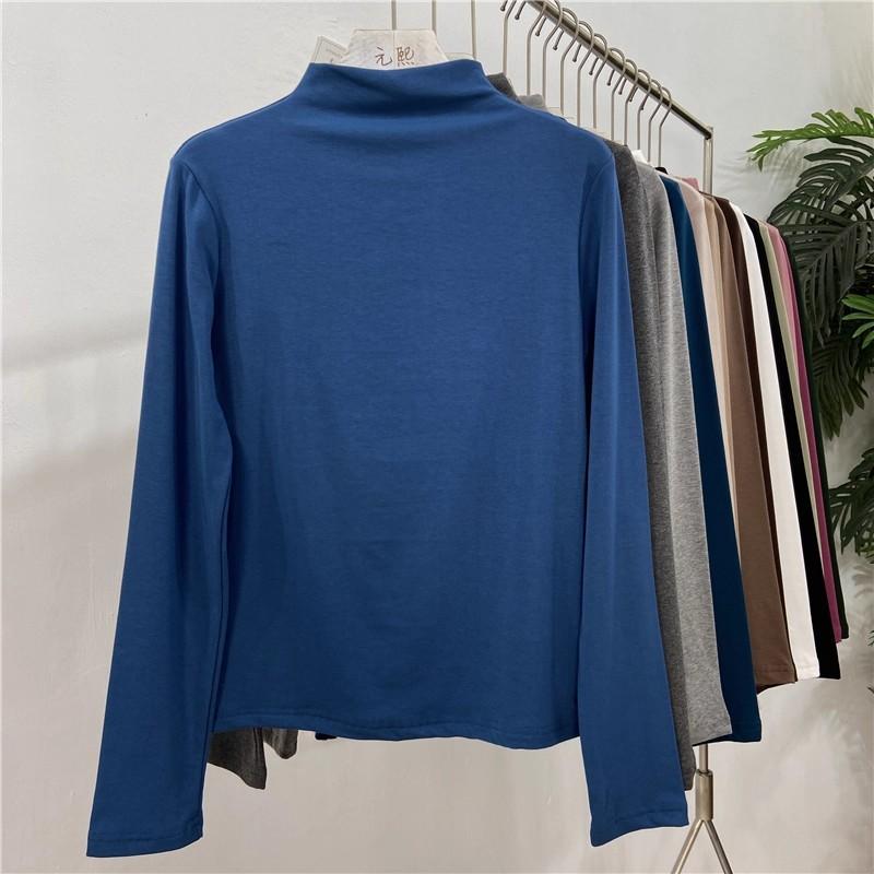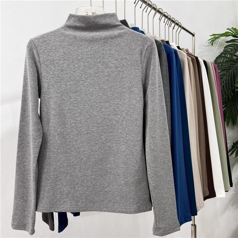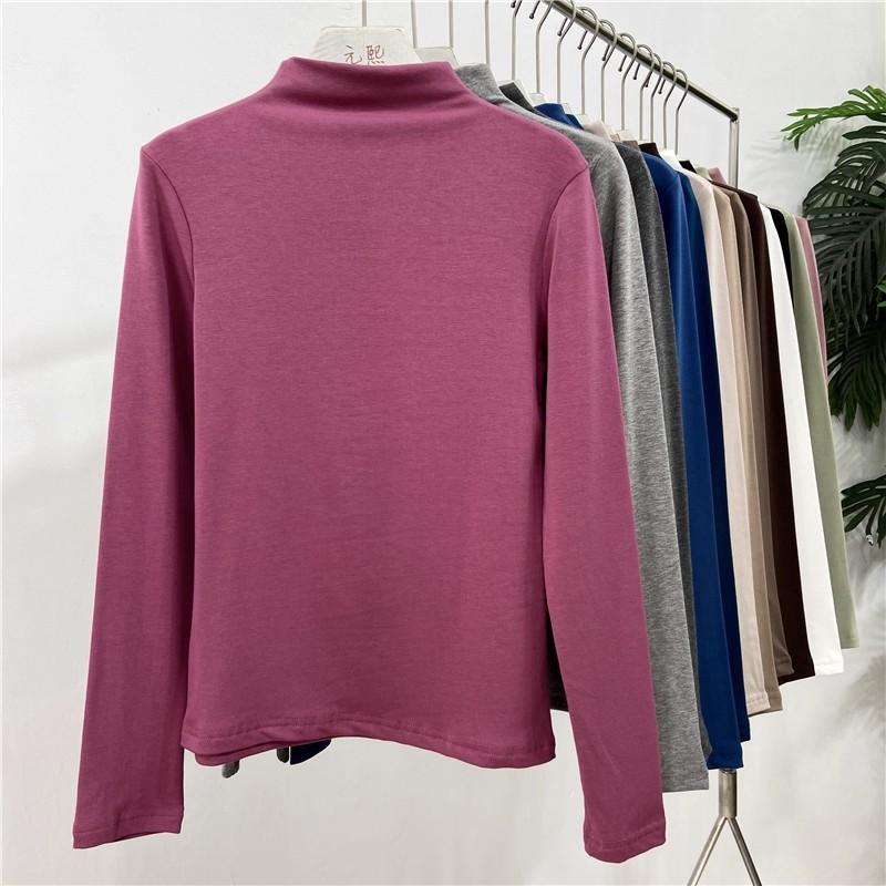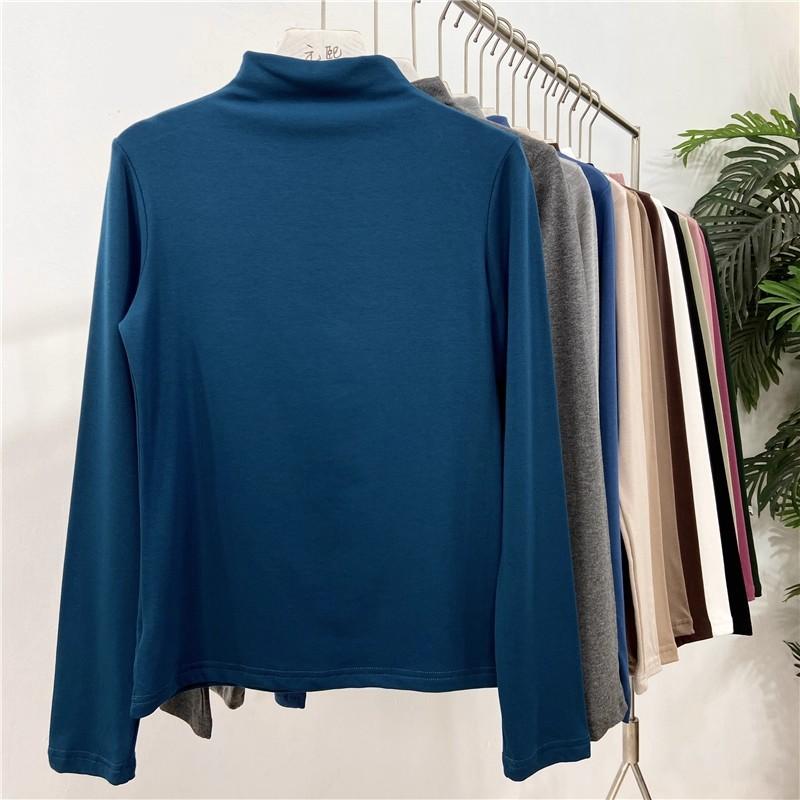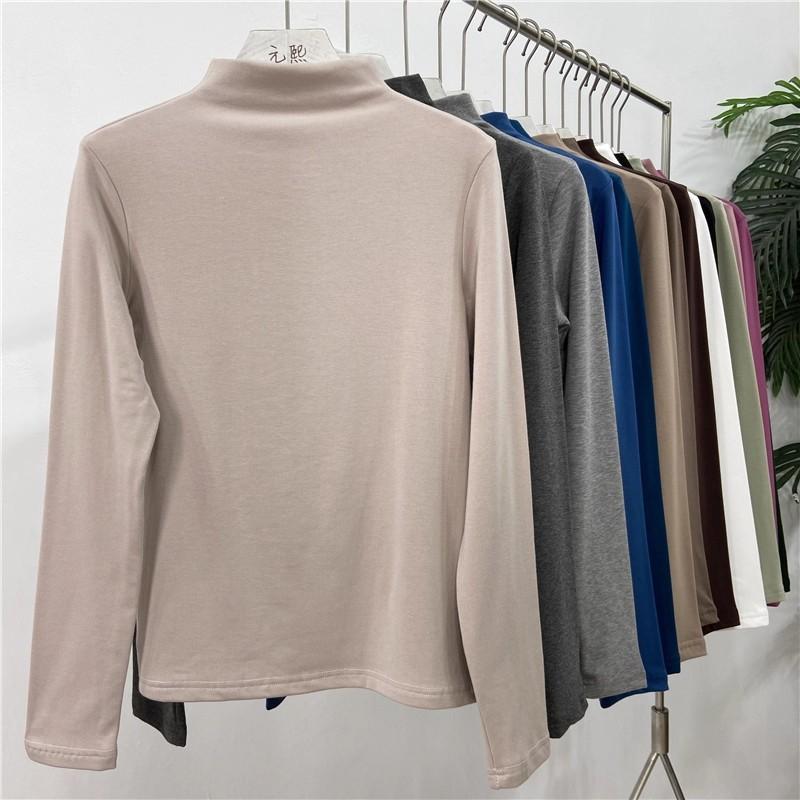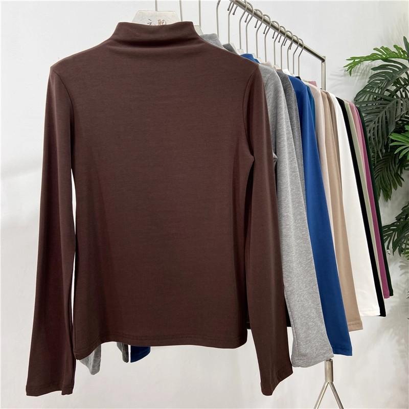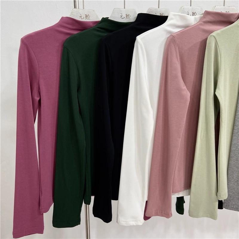 Camiseta básica de cuello semi alto para mujer otoño nueva corte ajustado ropa interior color sólido manga larga camiseta para mujer top otoño e invierno top grueso