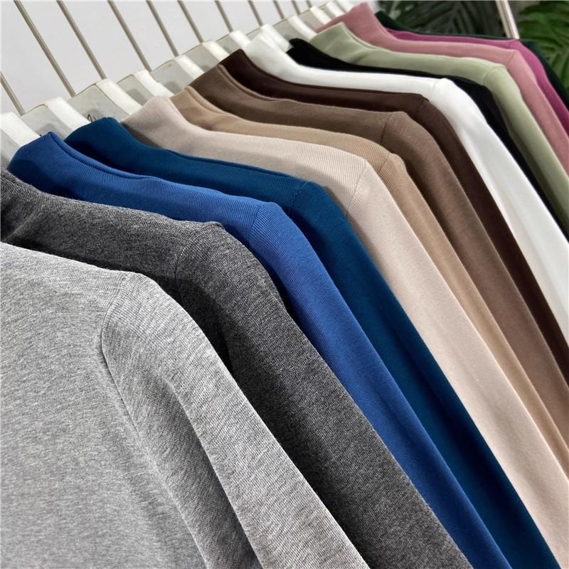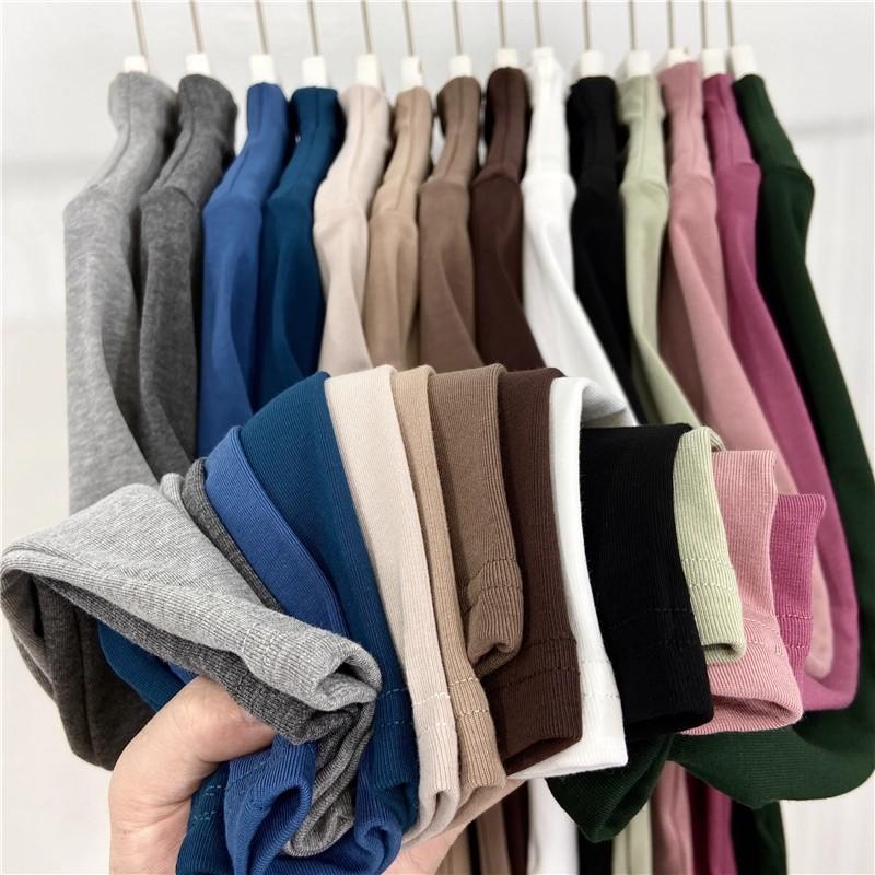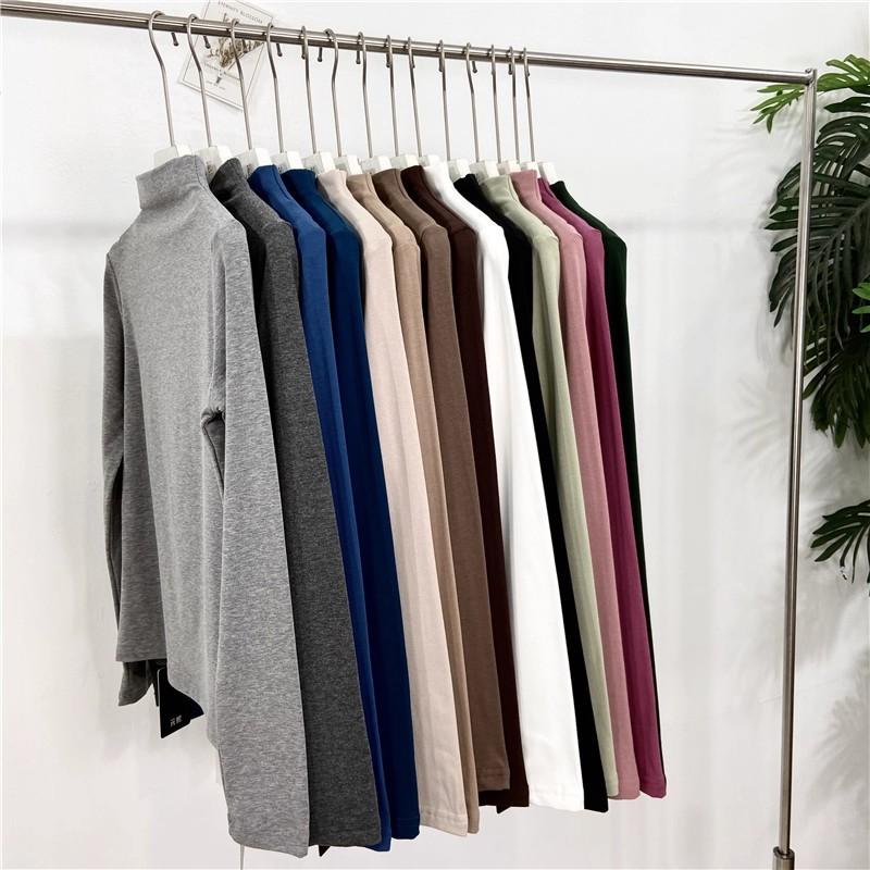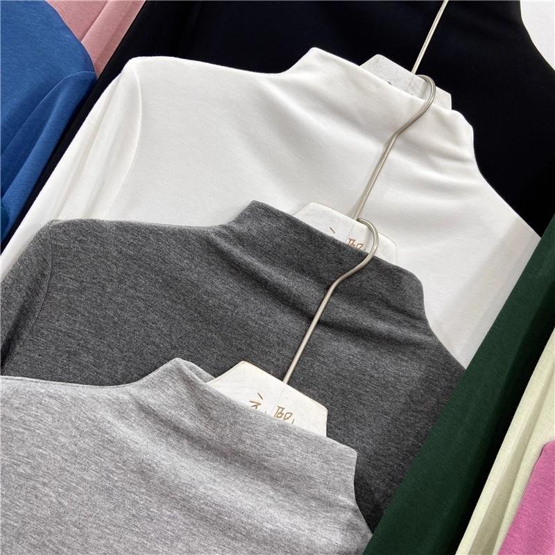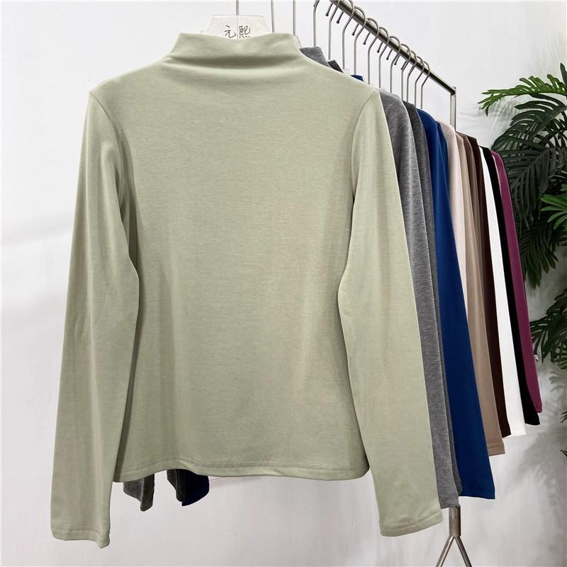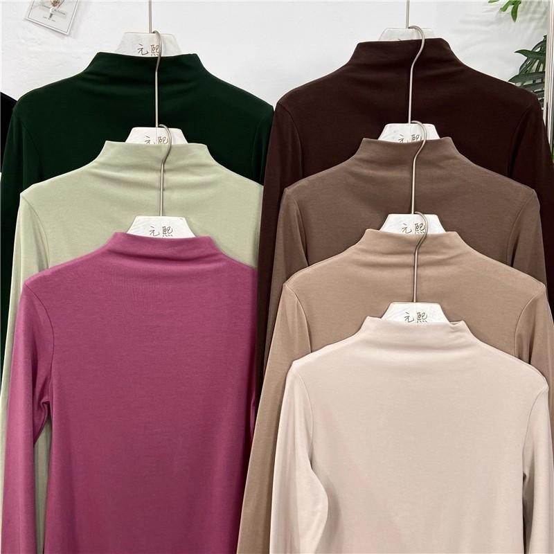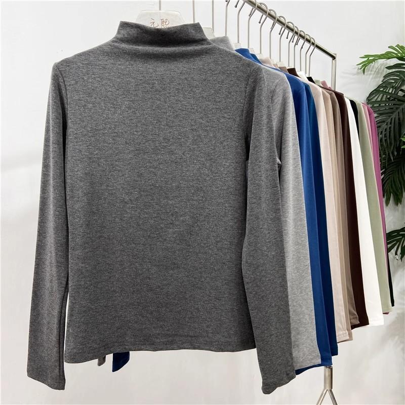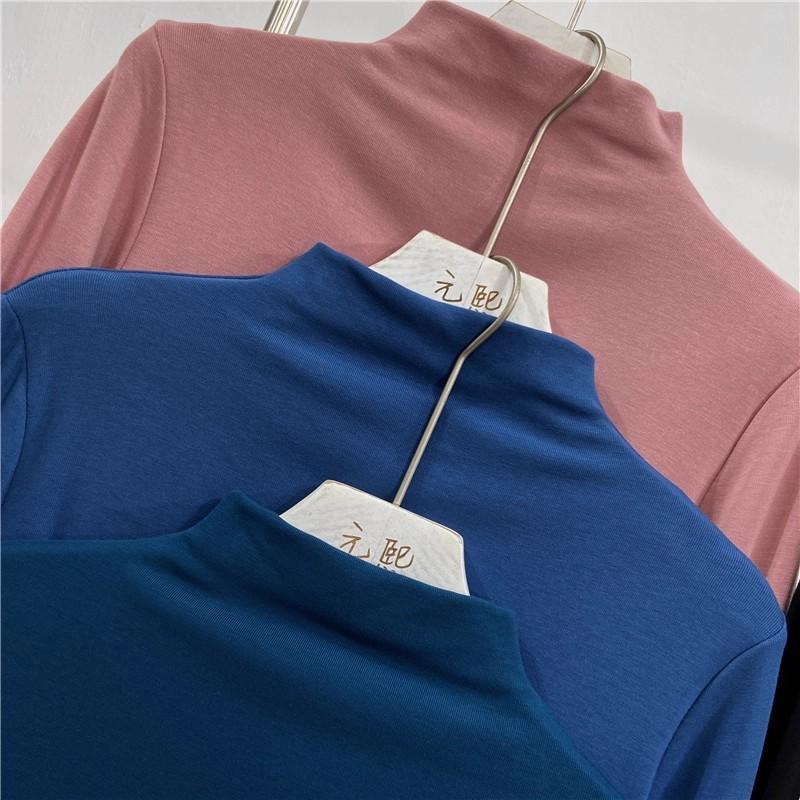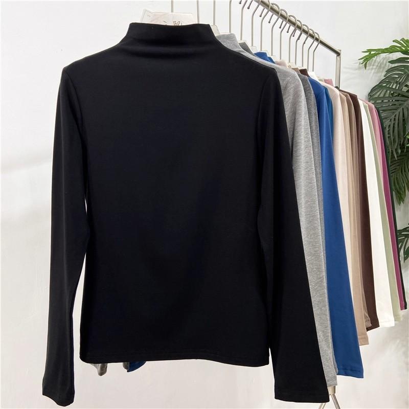 Camiseta básica de cuello semi alto para mujer otoño nueva corte ajustado ropa interior color sólido manga larga camiseta para mujer top otoño e invierno top grueso
