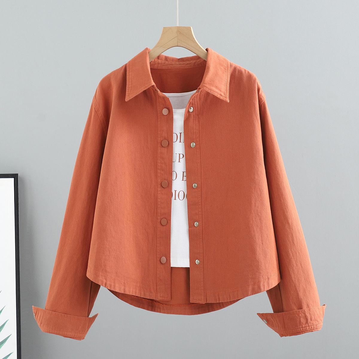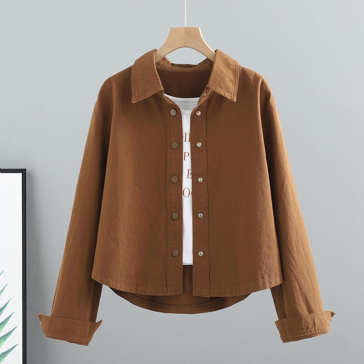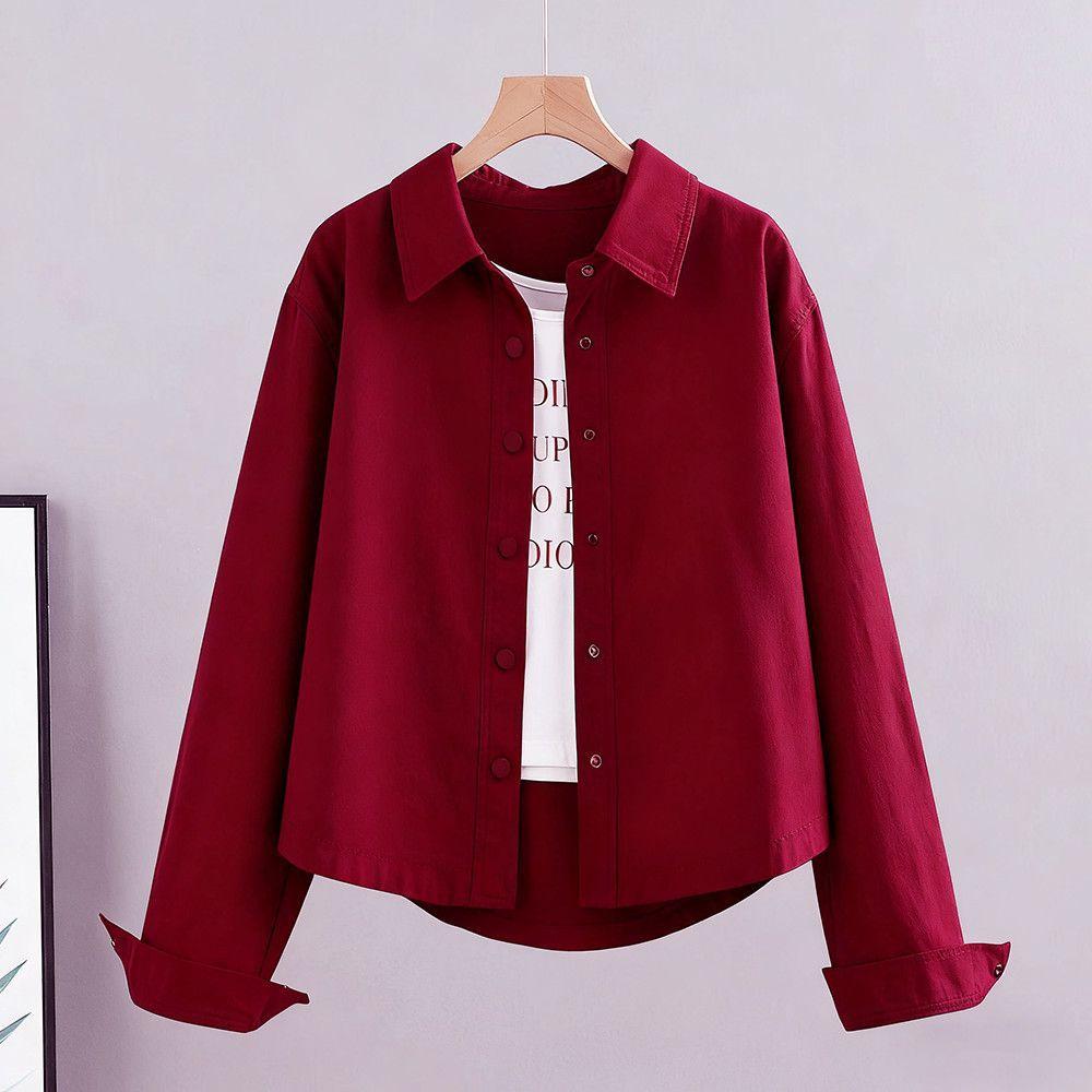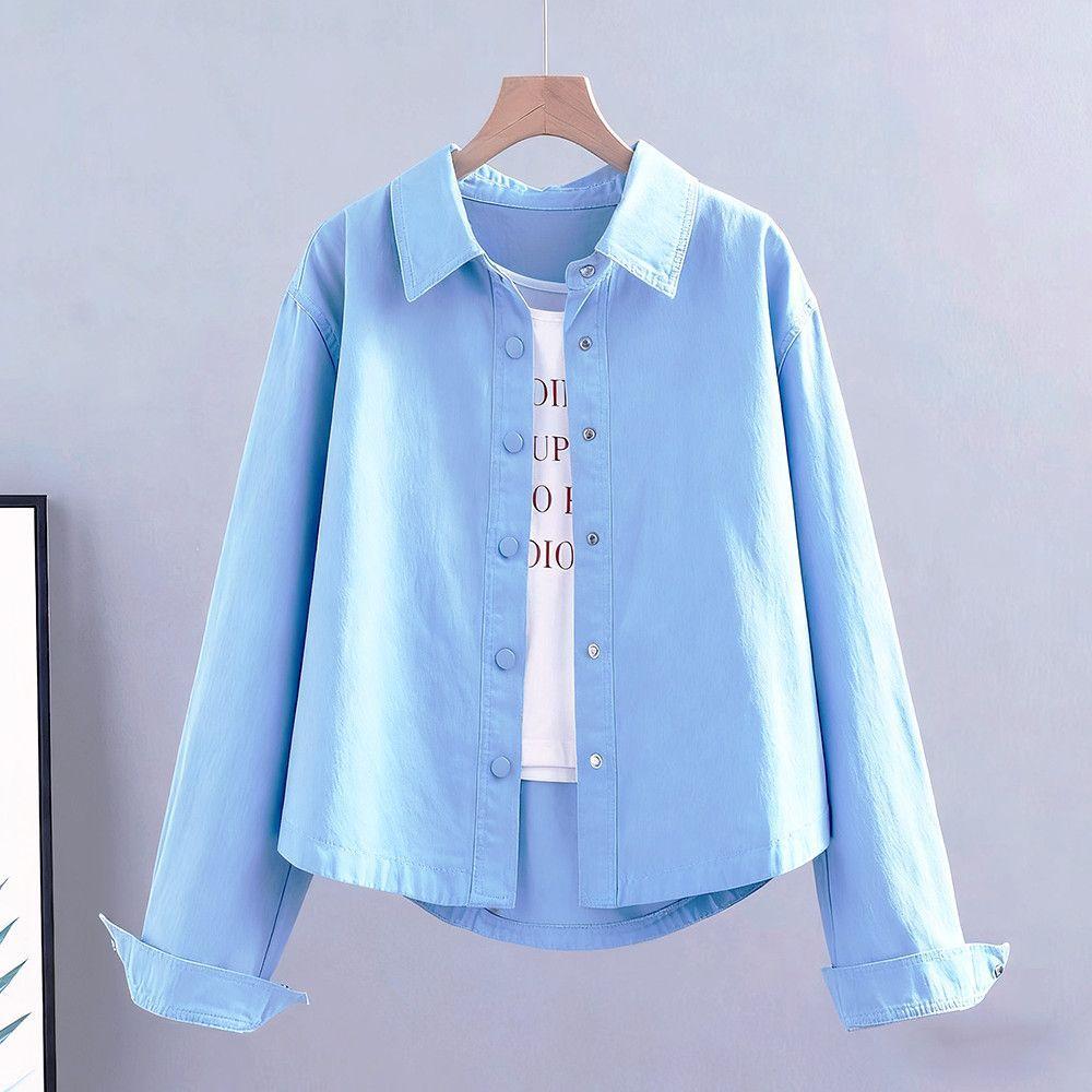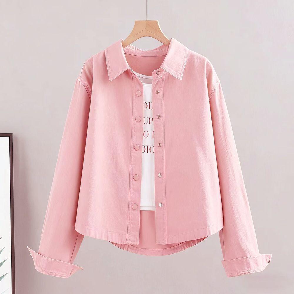Chaqueta Corta de Mezclilla de Algodón Puro para Mujer Primavera y Otoño Nuevo Estilo Coreano Suelta Versátil Camisa de Manga Larga Chaqueta de Ropa de Trabajo Top