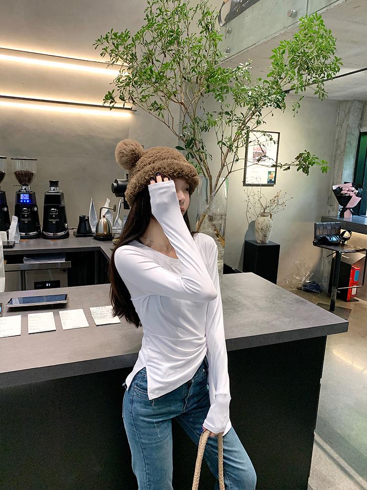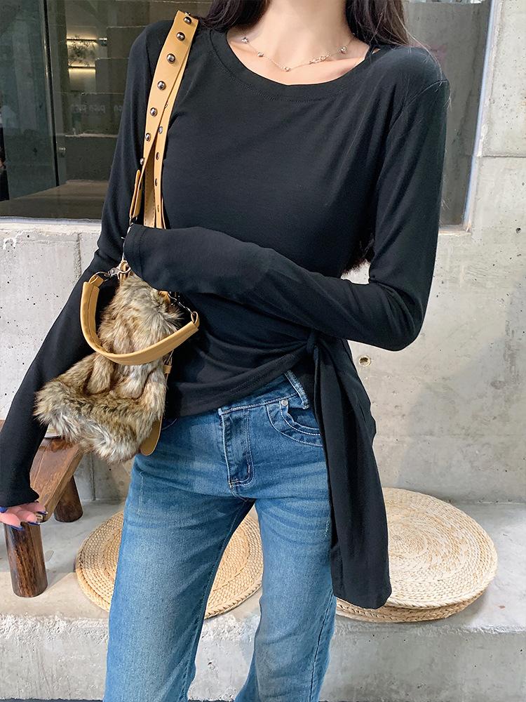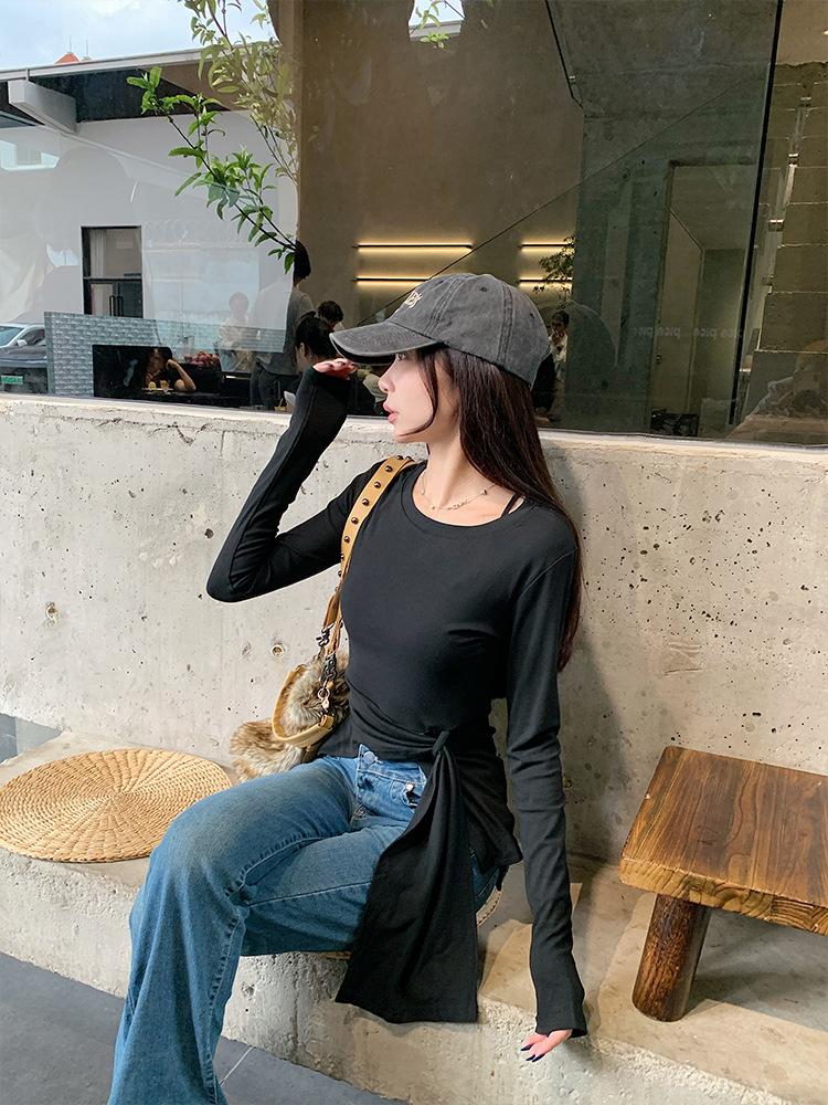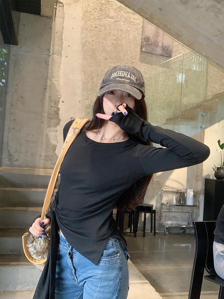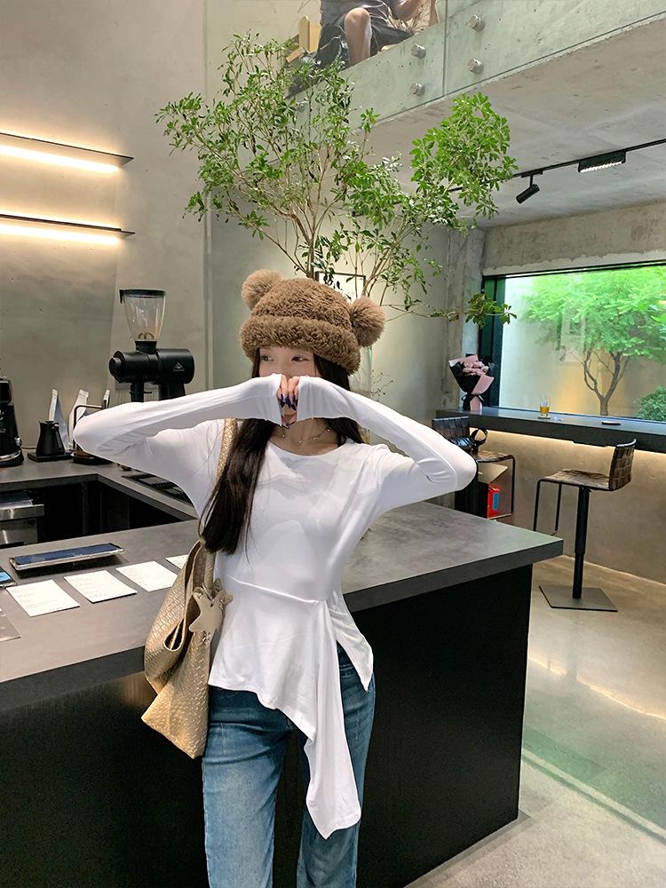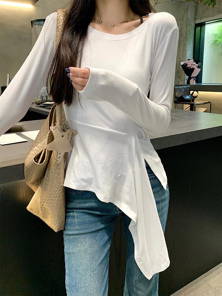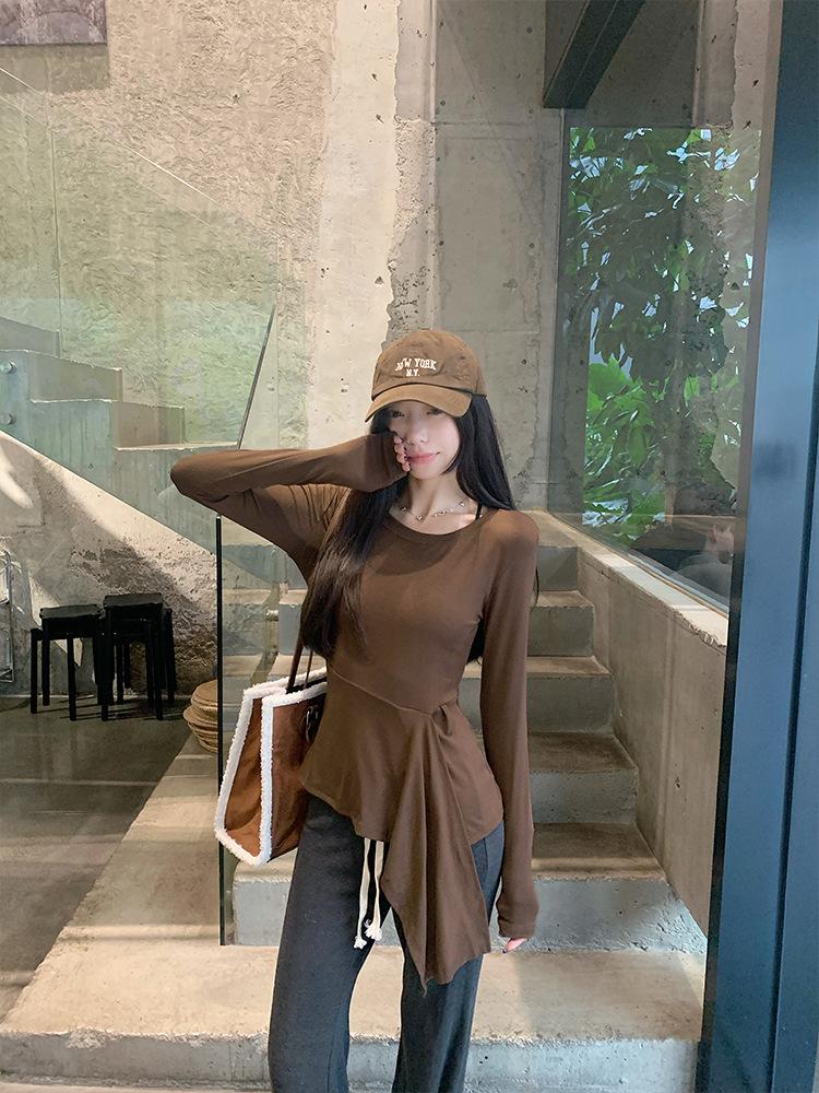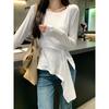Transfronterizo Toma Real Estilo Coreano Sentido del Diseño Top Otoño 2025 Nuevo Camisa Irregular de Manga Larga Mujer Suelta Adelgazante Camiseta