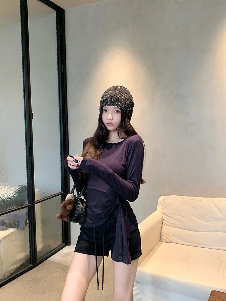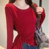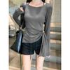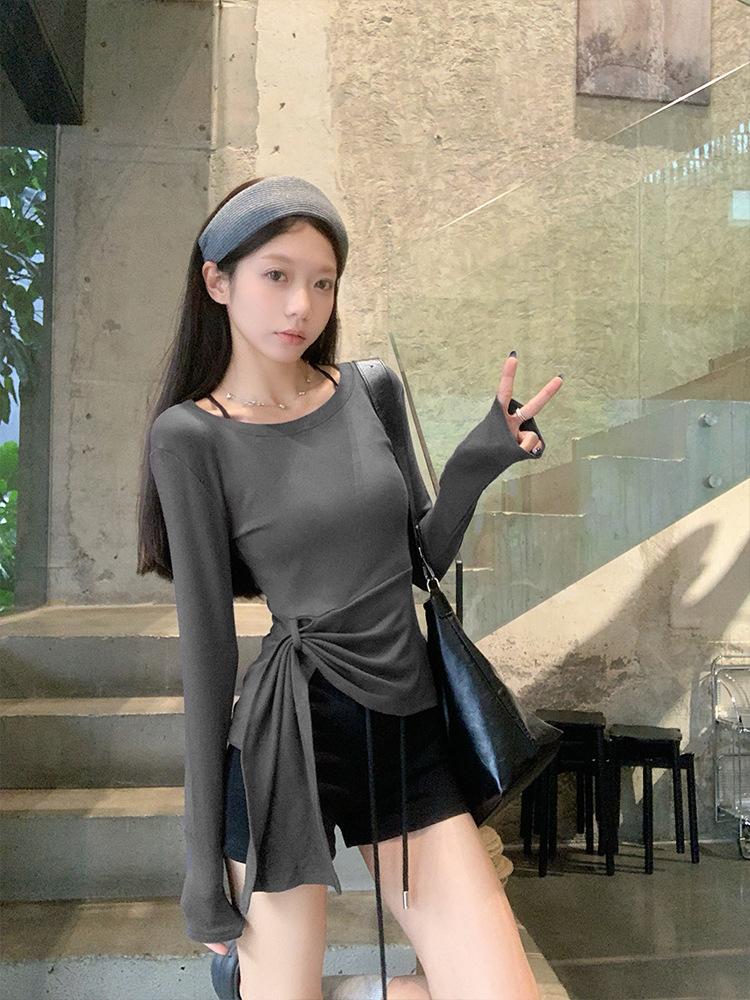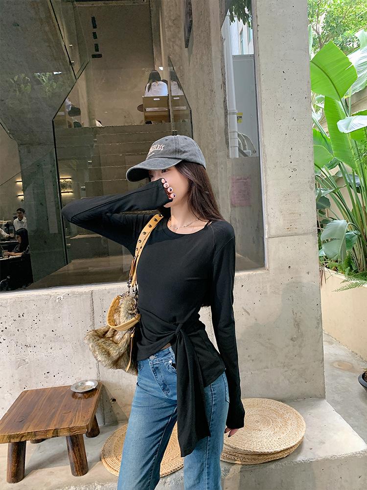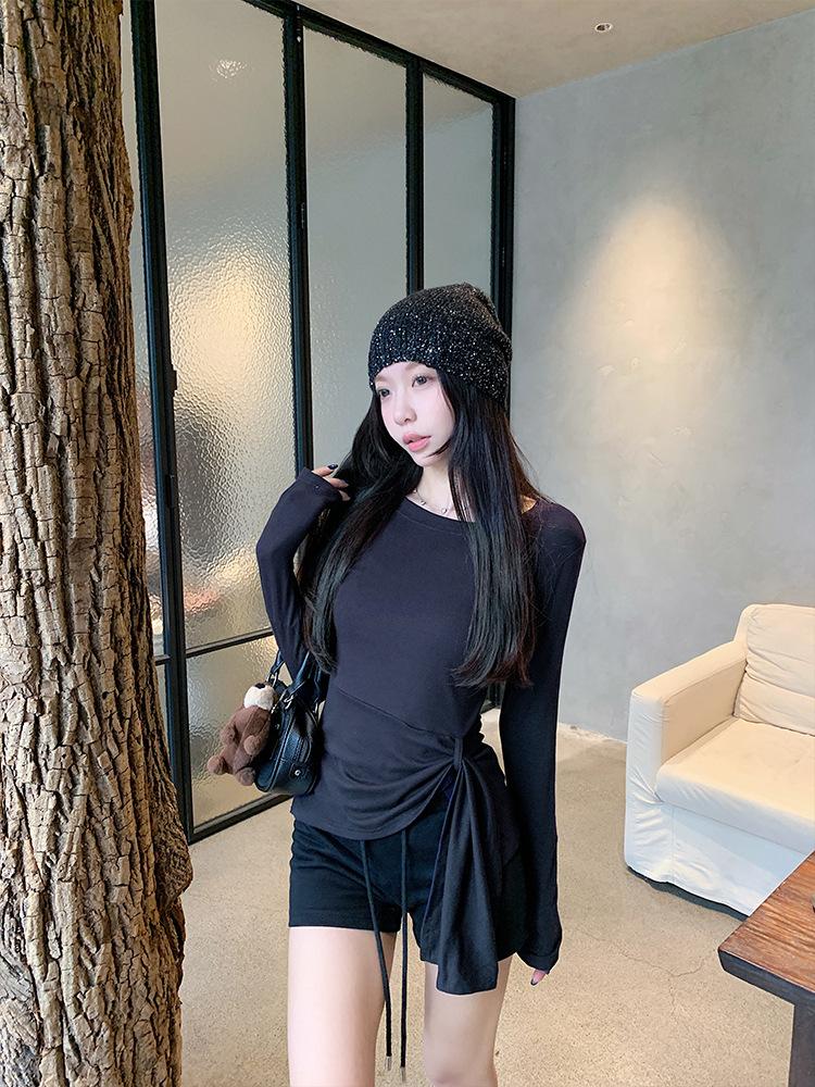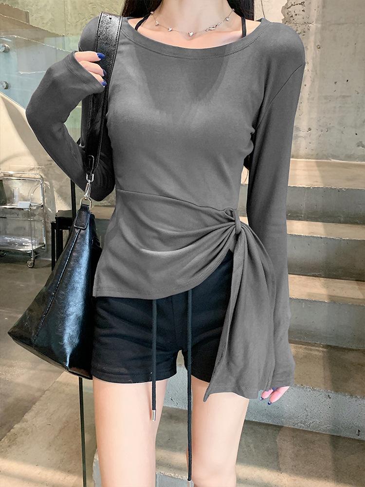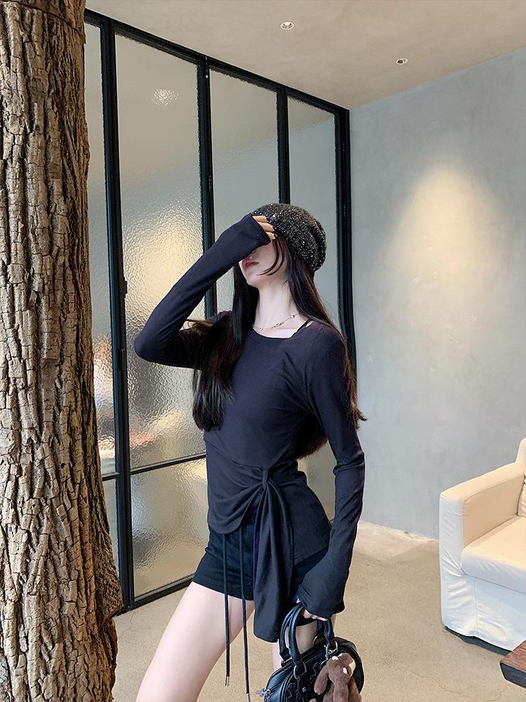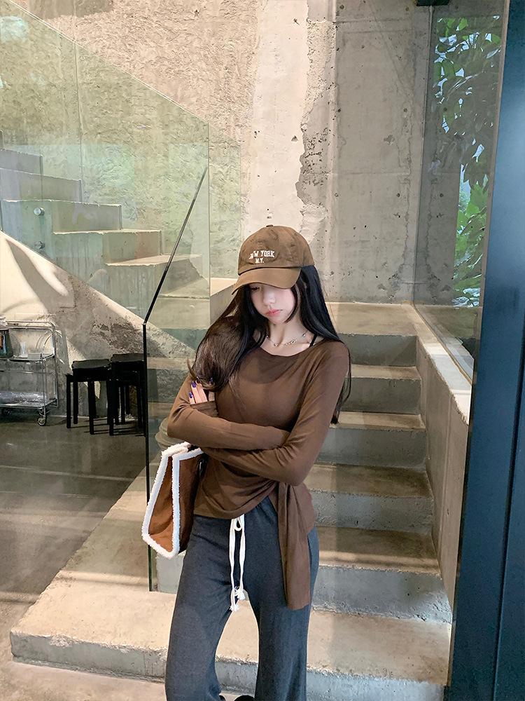 Transfronterizo Toma Real Estilo Coreano Sentido del Diseño Top Otoño 2025 Nuevo Camisa Irregular de Manga Larga Mujer Suelta Adelgazante Camiseta