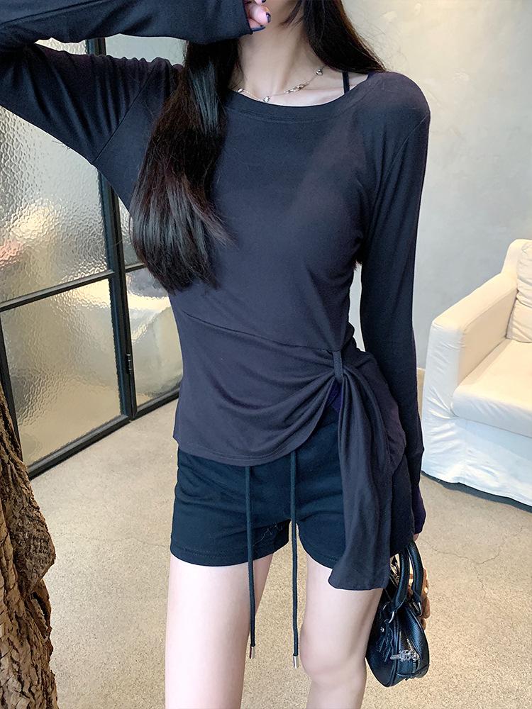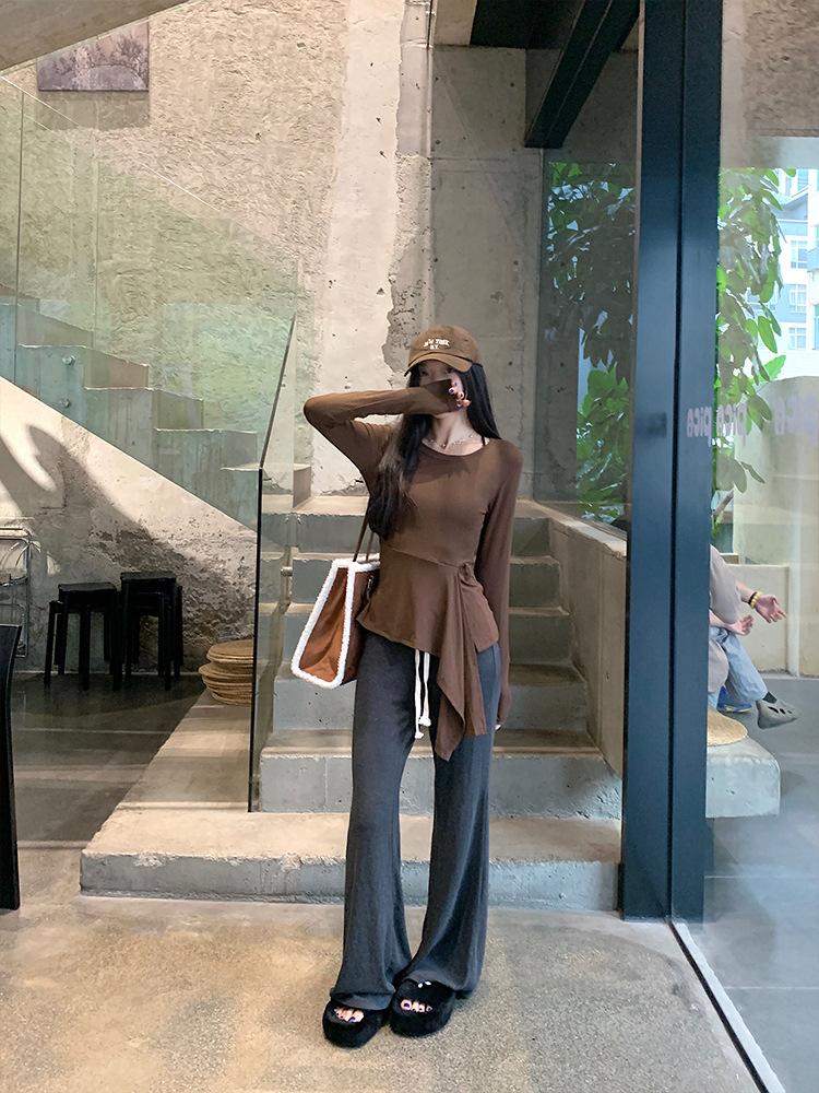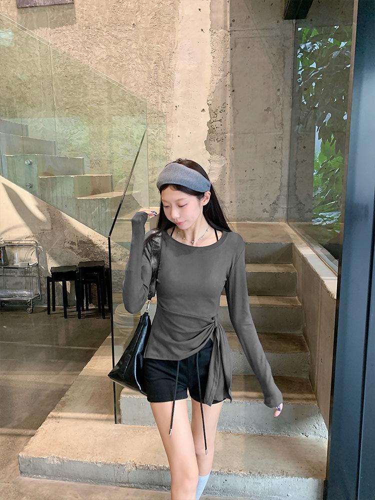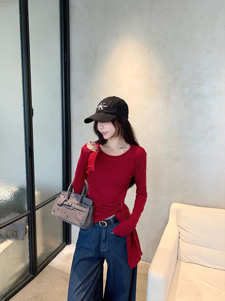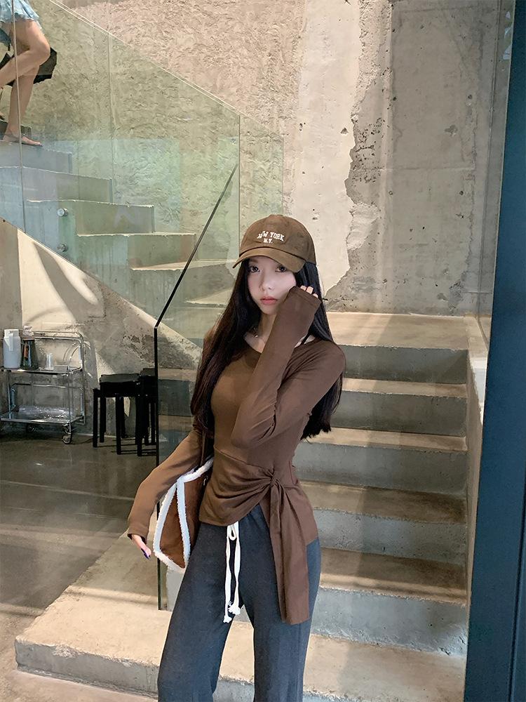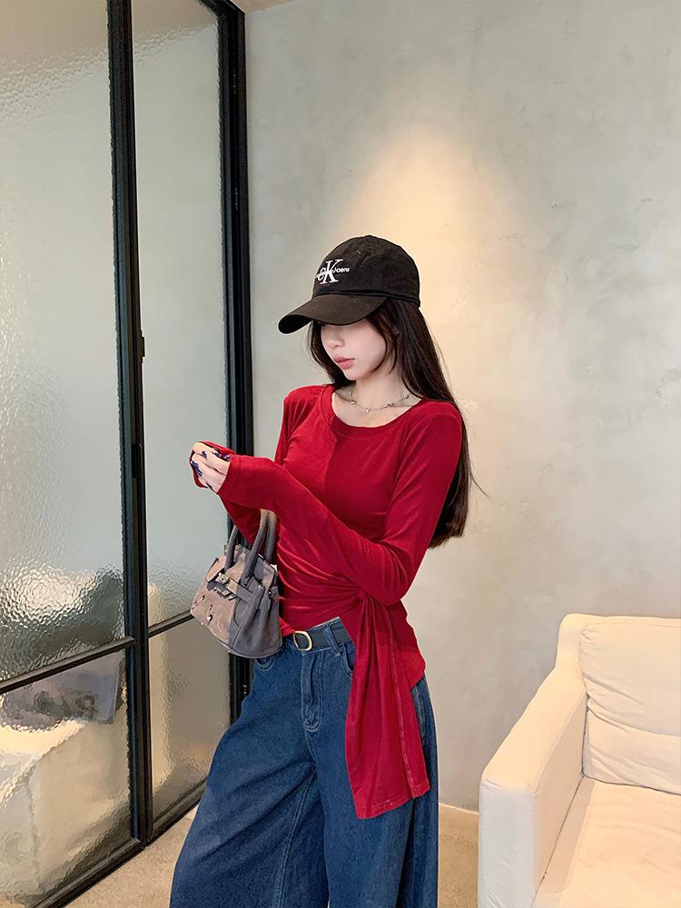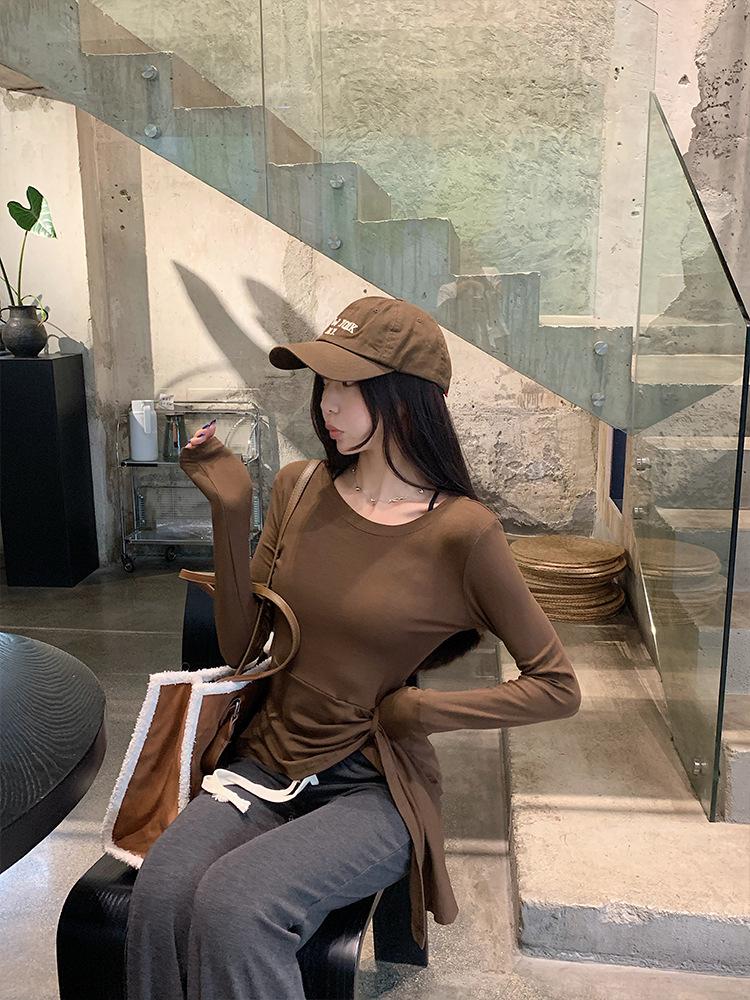 Transfronterizo Toma Real Estilo Coreano Sentido del Diseño Top Otoño 2025 Nuevo Camisa Irregular de Manga Larga Mujer Suelta Adelgazante Camiseta