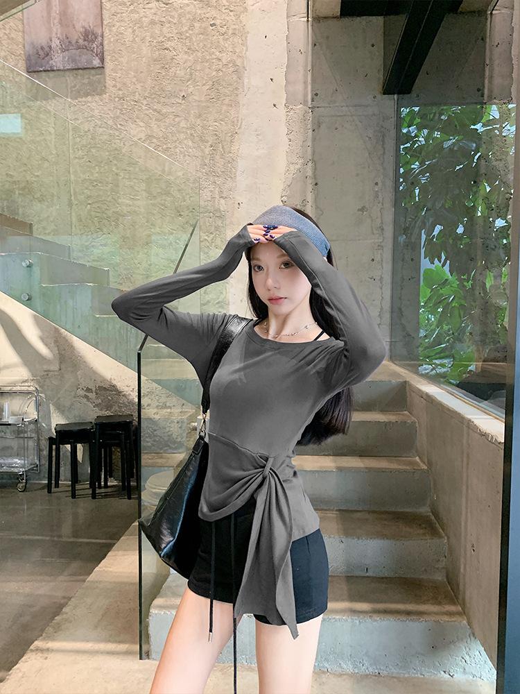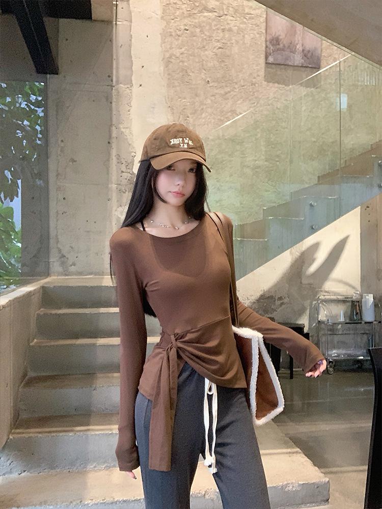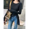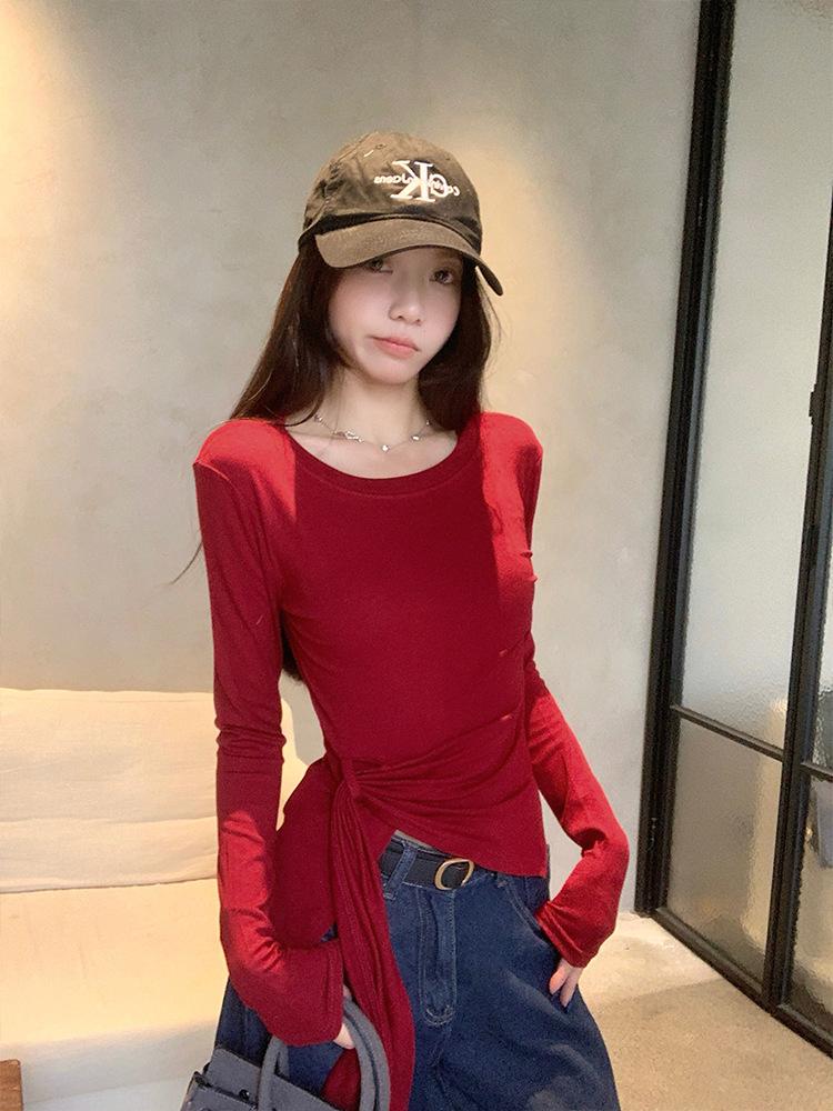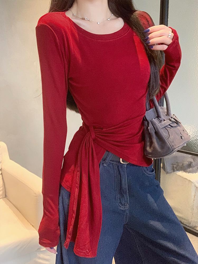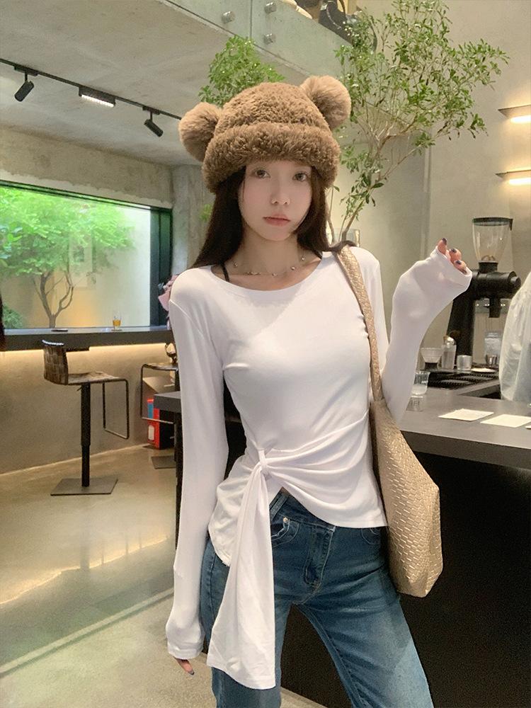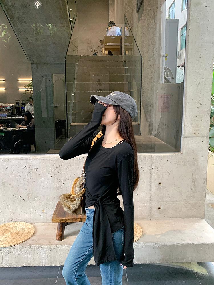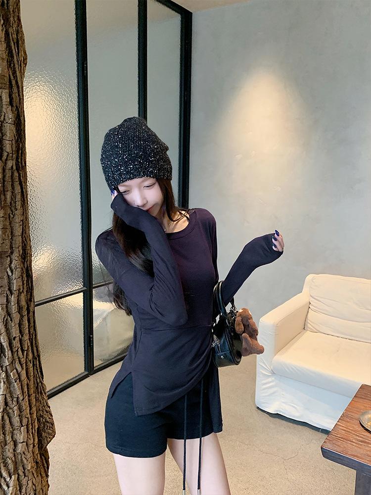 Transfronterizo Toma Real Estilo Coreano Sentido del Diseño Top Otoño 2025 Nuevo Camisa Irregular de Manga Larga Mujer Suelta Adelgazante Camiseta