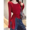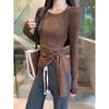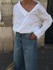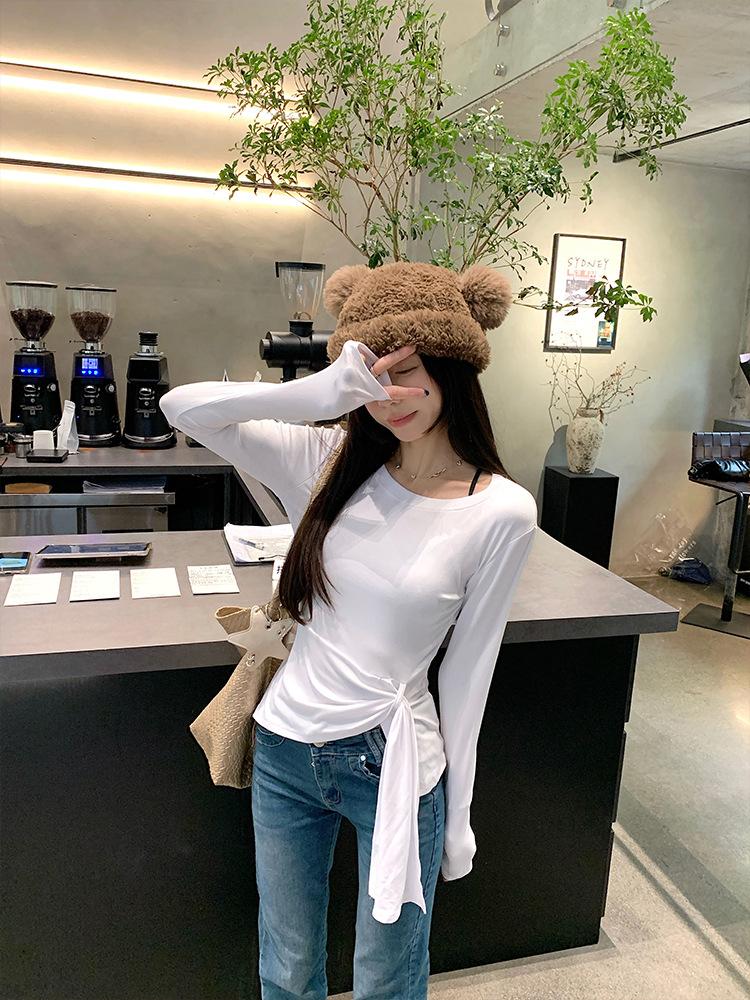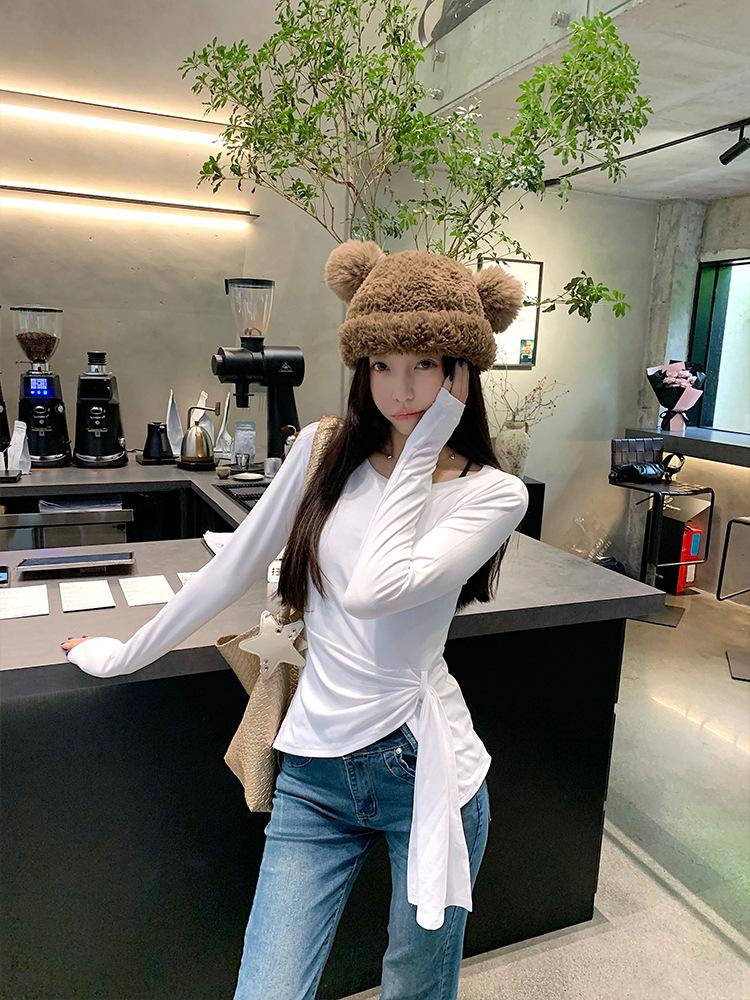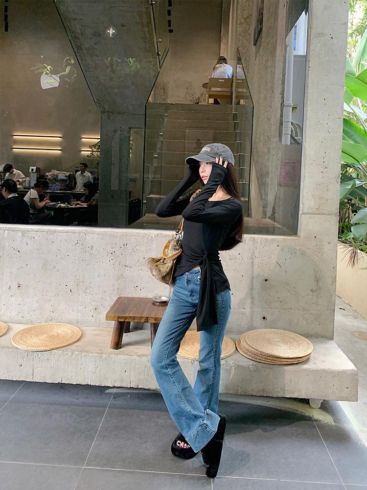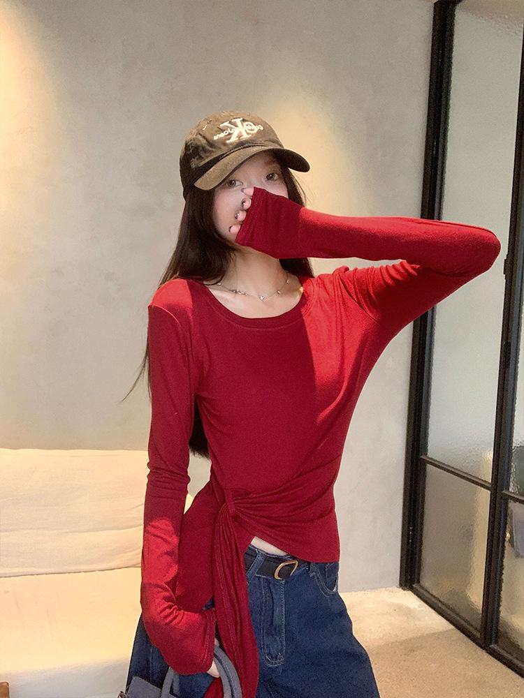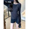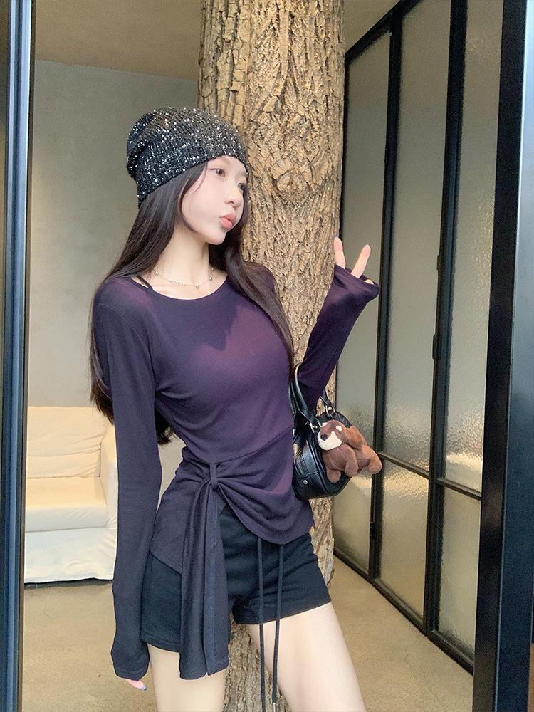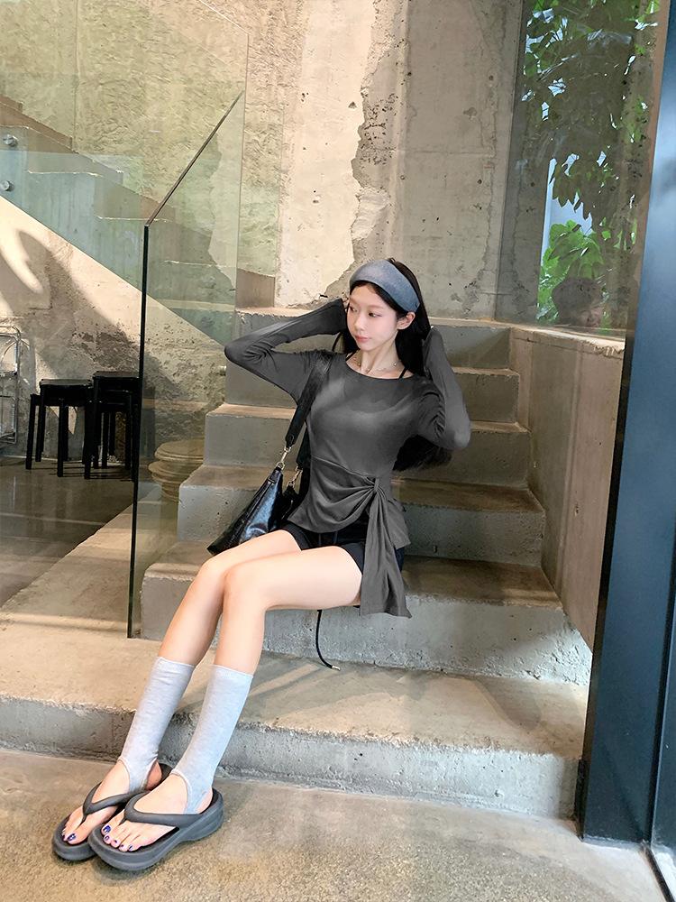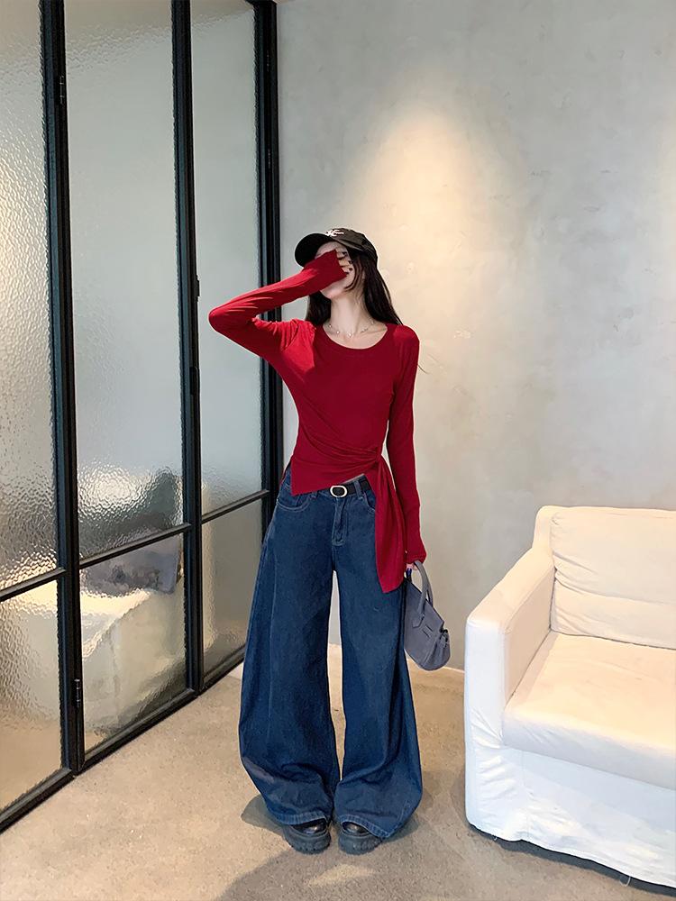 Transfronterizo Toma Real Estilo Coreano Sentido del Diseño Top Otoño 2025 Nuevo Camisa Irregular de Manga Larga Mujer Suelta Adelgazante Camiseta
