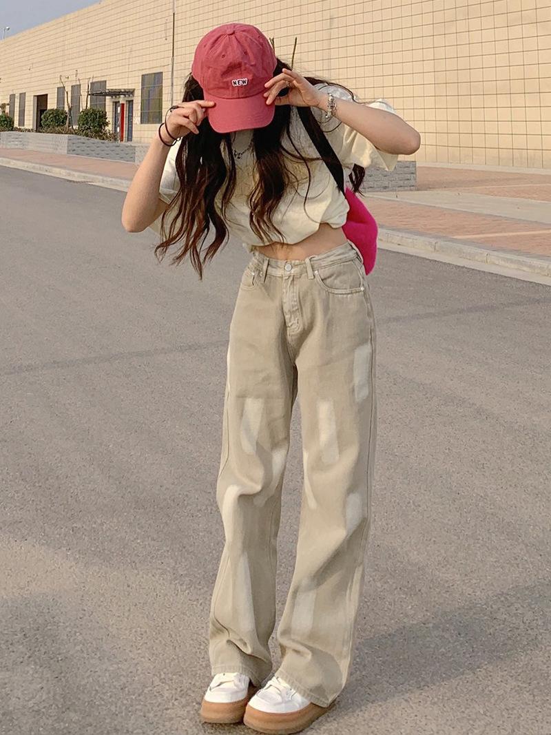 Comercio transfronterizo del Sudeste Asiático, jeans de graffiti de cintura alta para mujer al por mayor, mujer sacude sonido, libro rojo pequeño, una generación de suministro