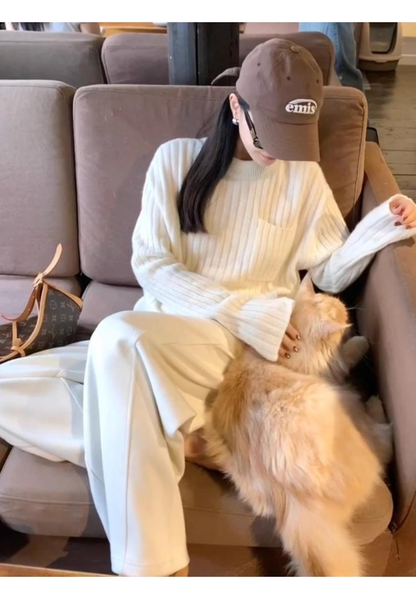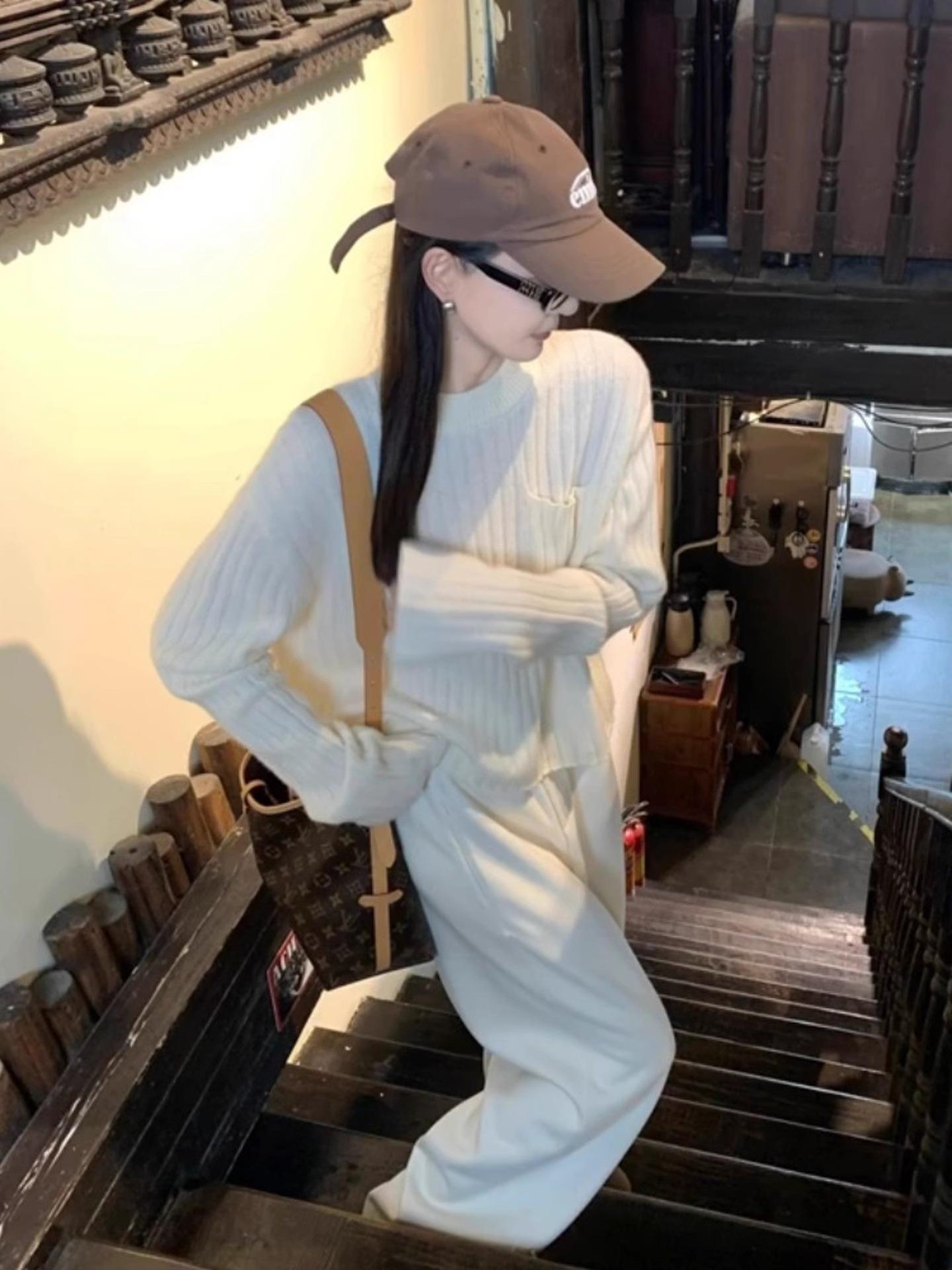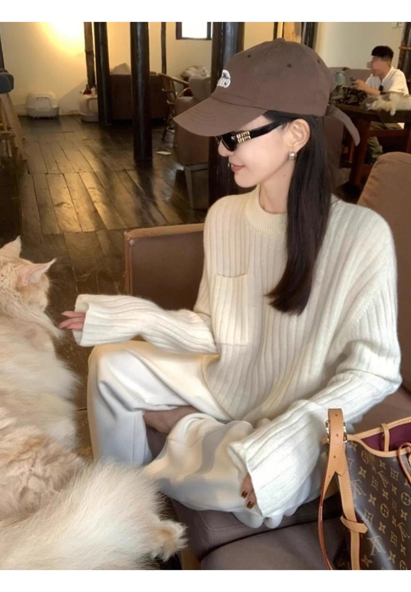 Nuevo Suéter de Punto de Lana Pura para Otoño Invierno 2025 para Mujer, Cuello Redondo, Holgado, Moda, Tejido, Base, Cálido, Temperamento, Top