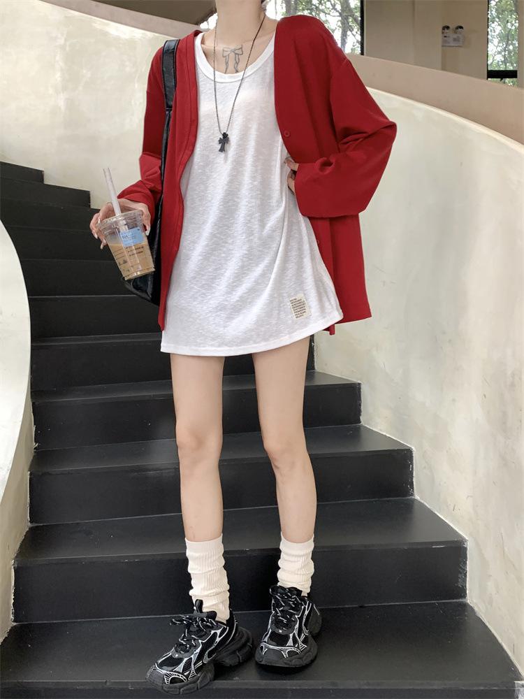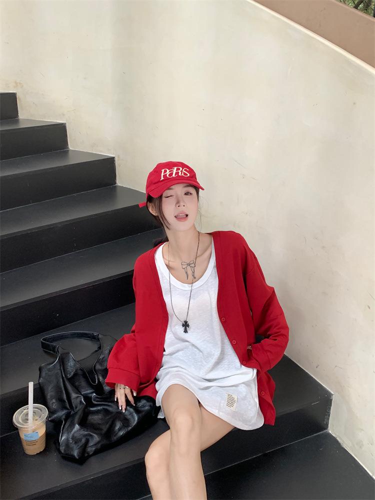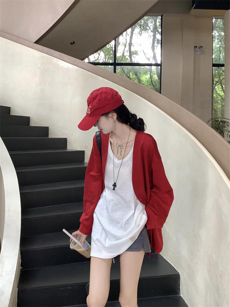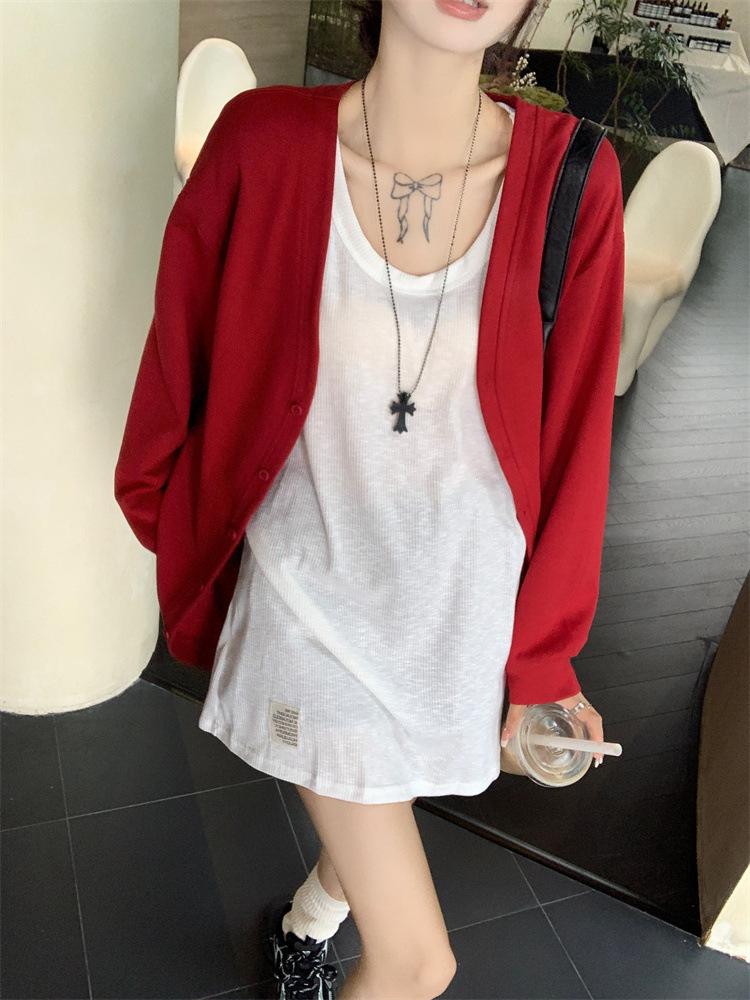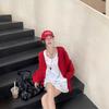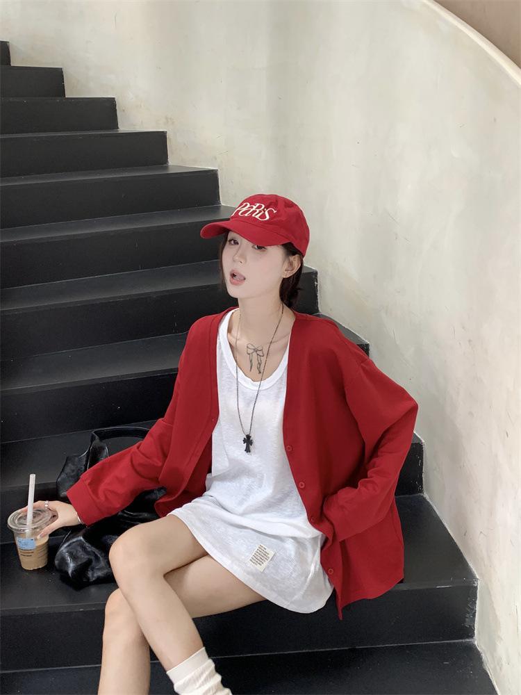 Foto Real Otoño/Invierno Nuevo Estilo Coreano Suelto Sencillo Color Sólido Chaqueta Cárdigan Casual Estilo Coreano Manga Larga Top Versátil