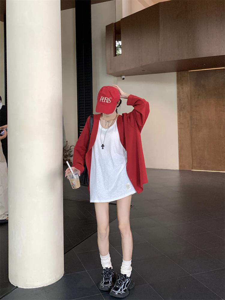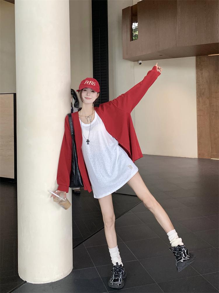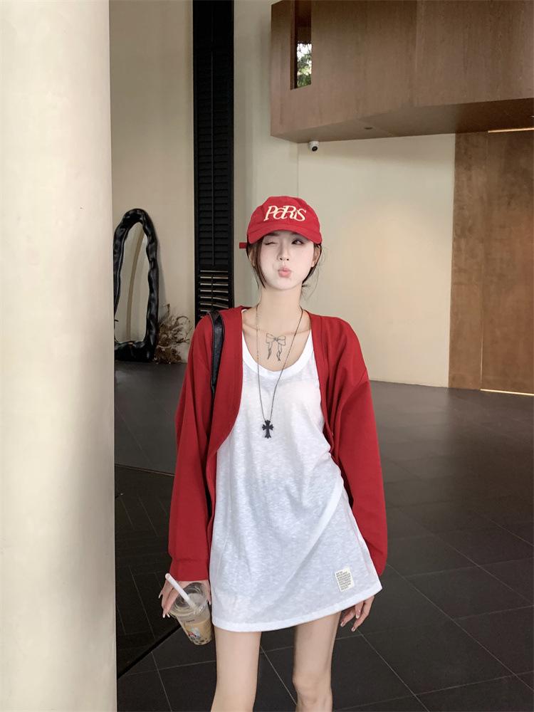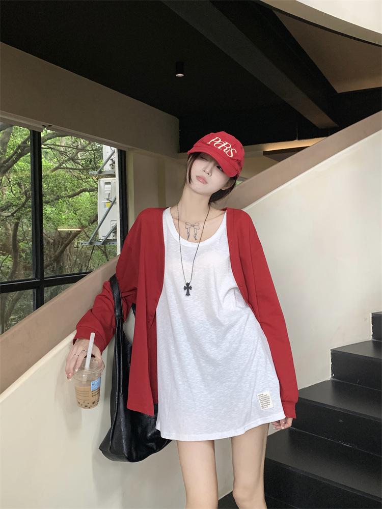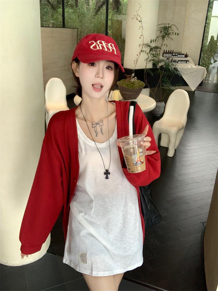 Foto Real Otoño/Invierno Nuevo Estilo Coreano Suelto Sencillo Color Sólido Chaqueta Cárdigan Casual Estilo Coreano Manga Larga Top Versátil