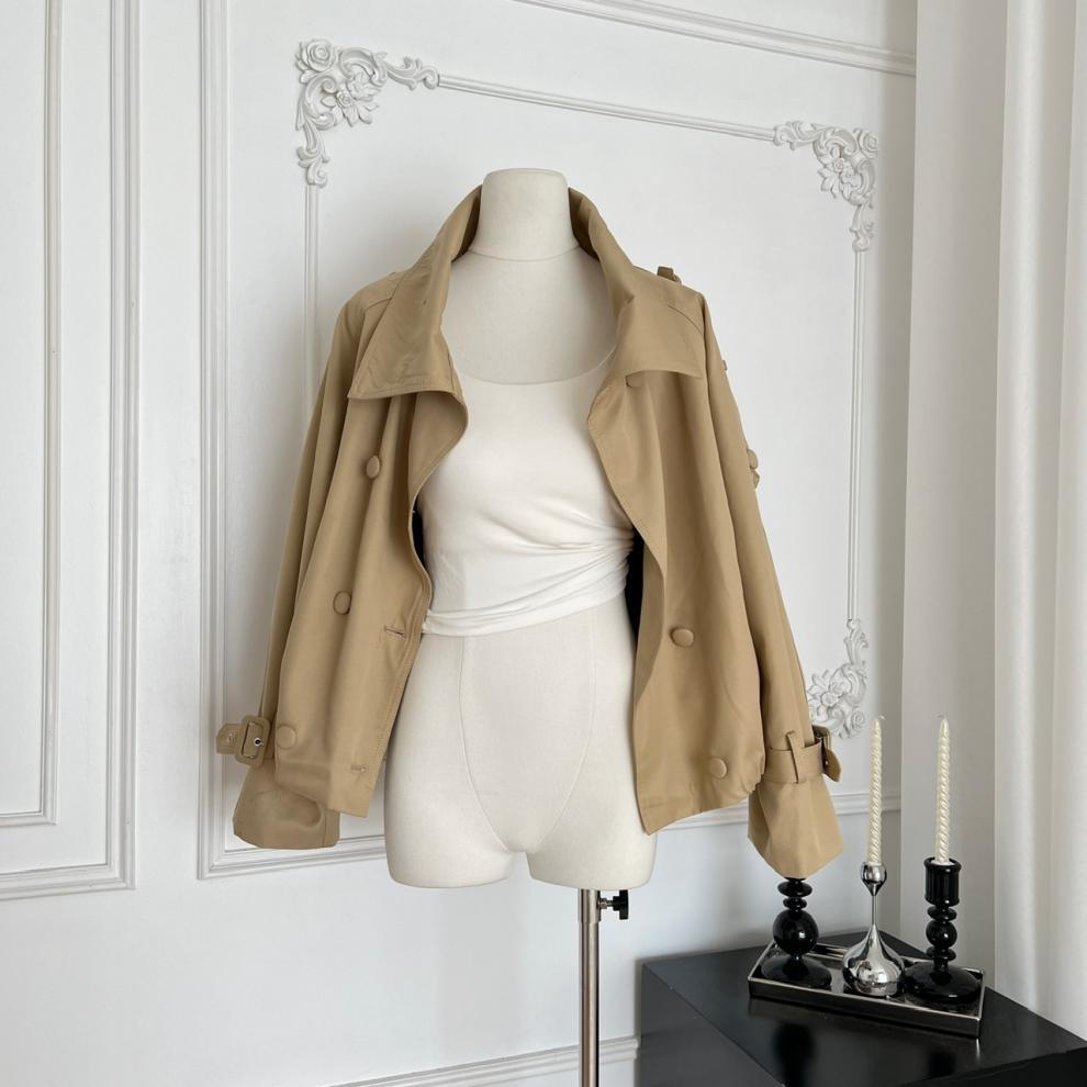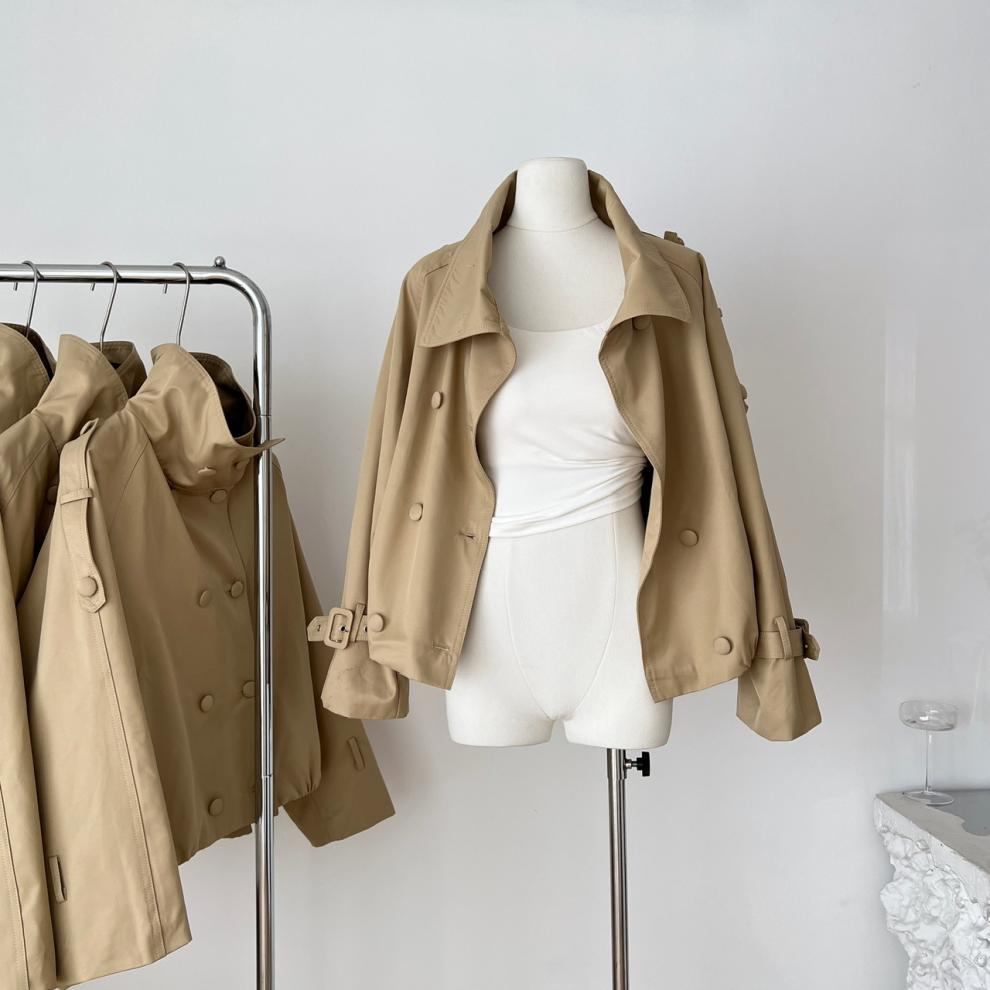 25 Otoño Nuevo Estilo Británico Sentido del Diseño Cuello Alto Corto Estilo Coreano Gabardina Chaqueta Mujer