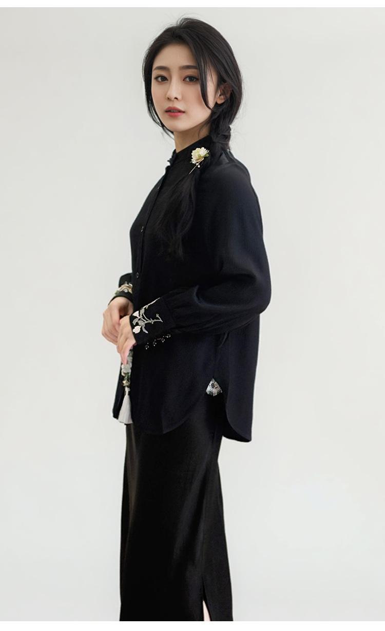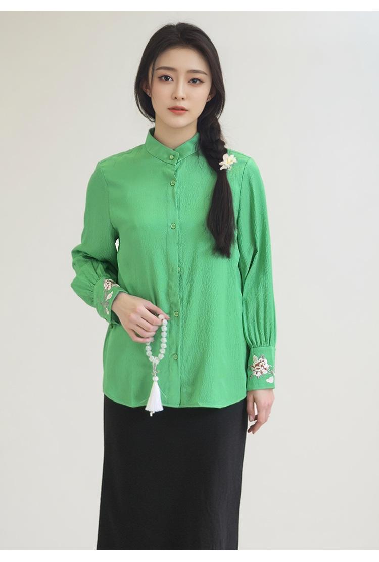 Primavera y Verano Nuevos Tops Retro Chinoiserie y Camisas Básicas para Mujer, Estilo Nacional 100% Gasa de Seda de Morera Nube Fragante Camisas Elegantes Versátiles