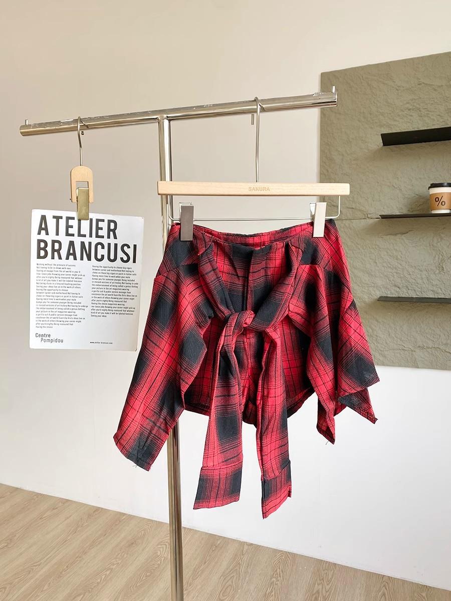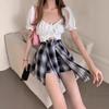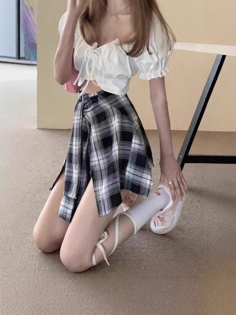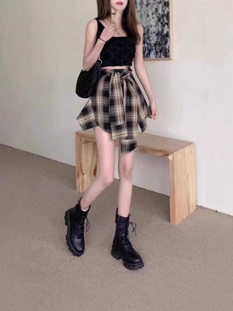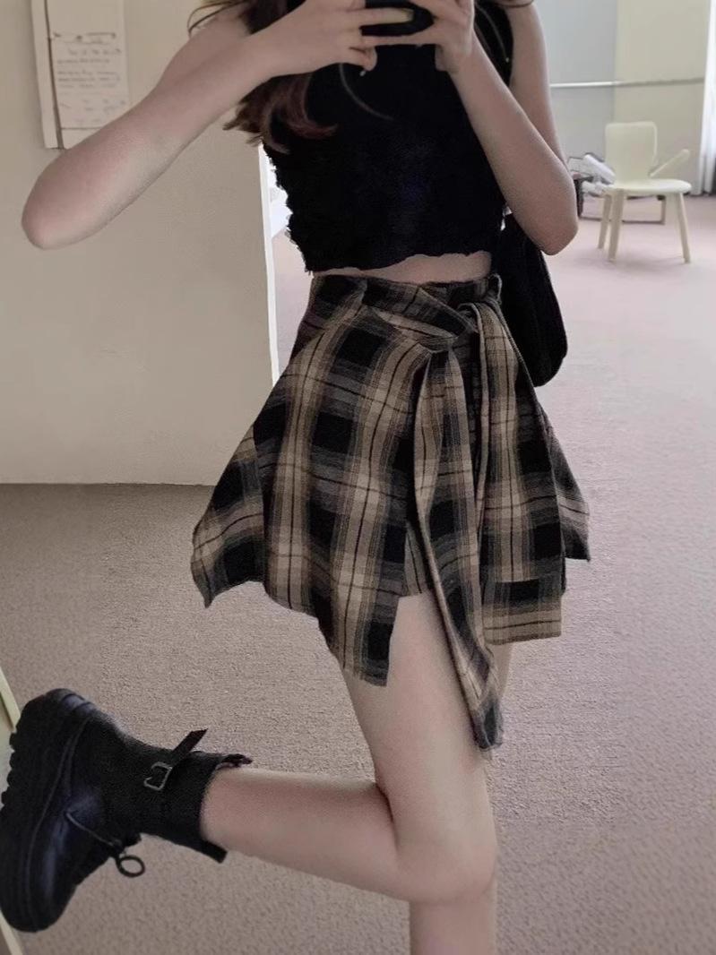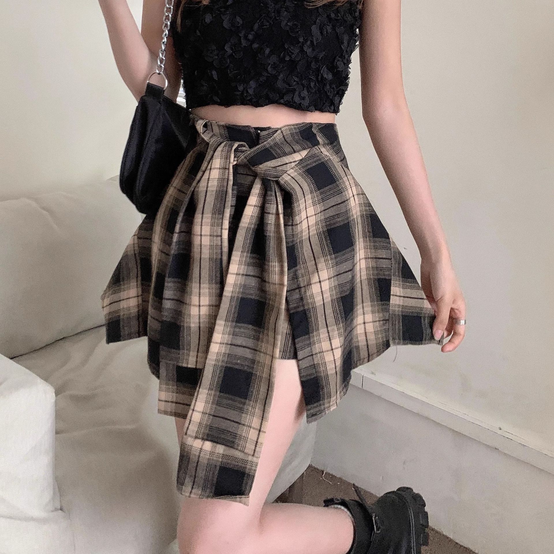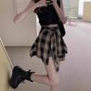 Verano de Chica Sexy de Cintura Alta 2025 Nueva Falda Corta Retro Falsa de Dos Piezas a Cuadros Irregular Casual para Mujer