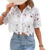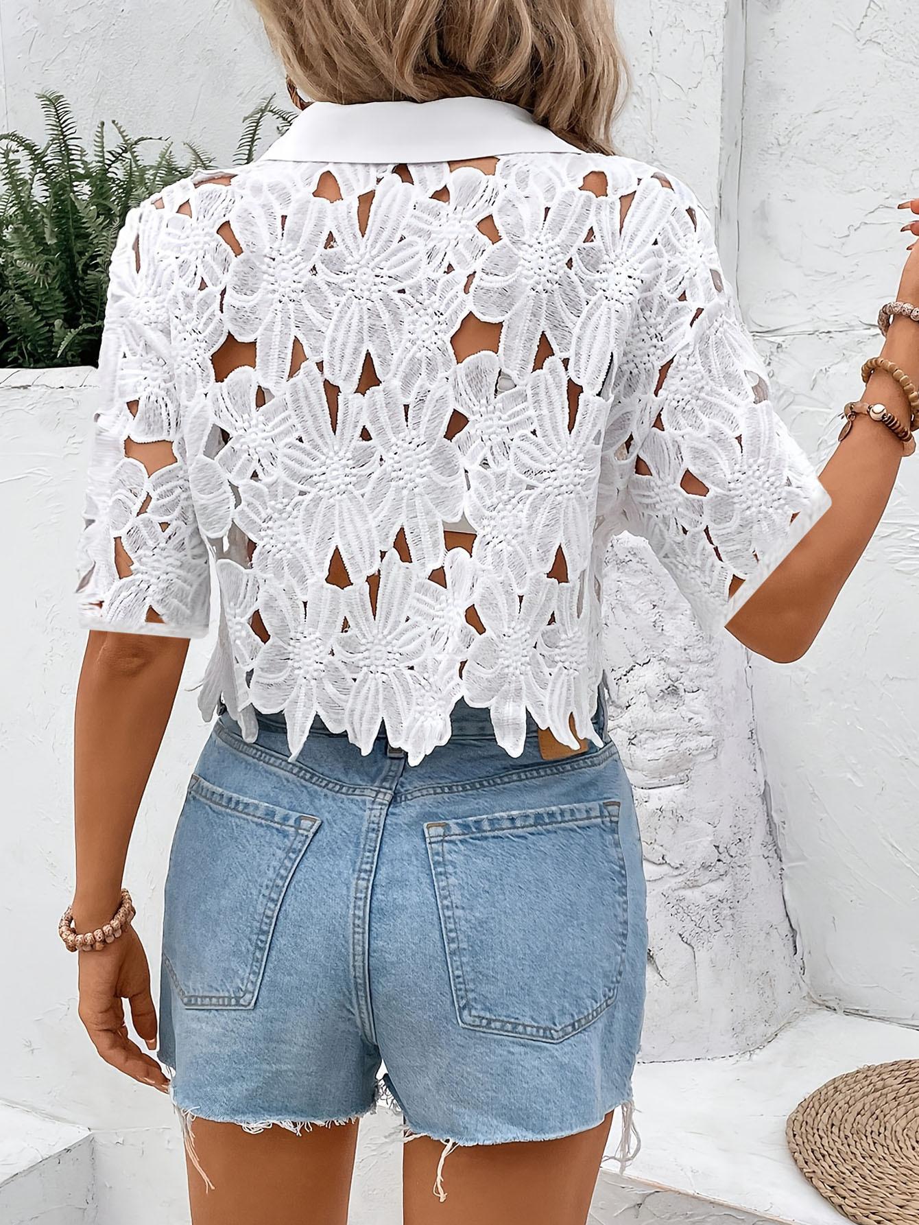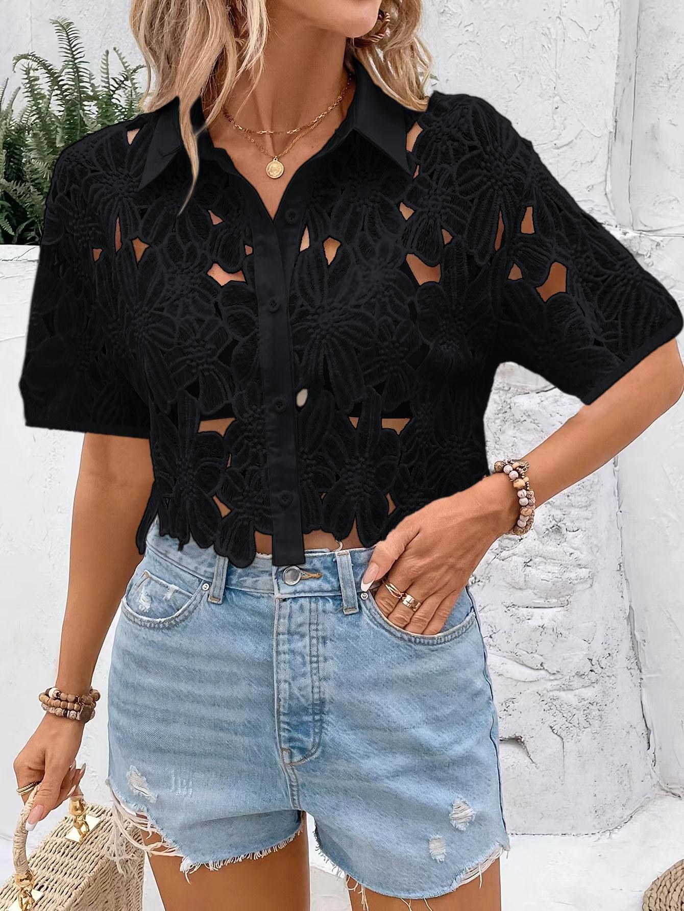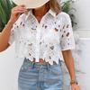 Moda de Encaje Transfronteriza para Mujeres Europeas y Americanas Versátil Elegante Camisa Tops Casual Vacaciones Fiesta Camisa Calada