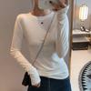 Camiseta americana blanca de hombro recto y corte ajustado para mujer, camiseta de otoño invierno primavera, capa interior, camiseta base, top de manga larga, nuevo 2025