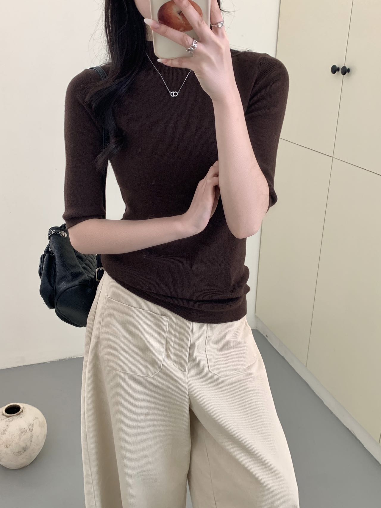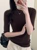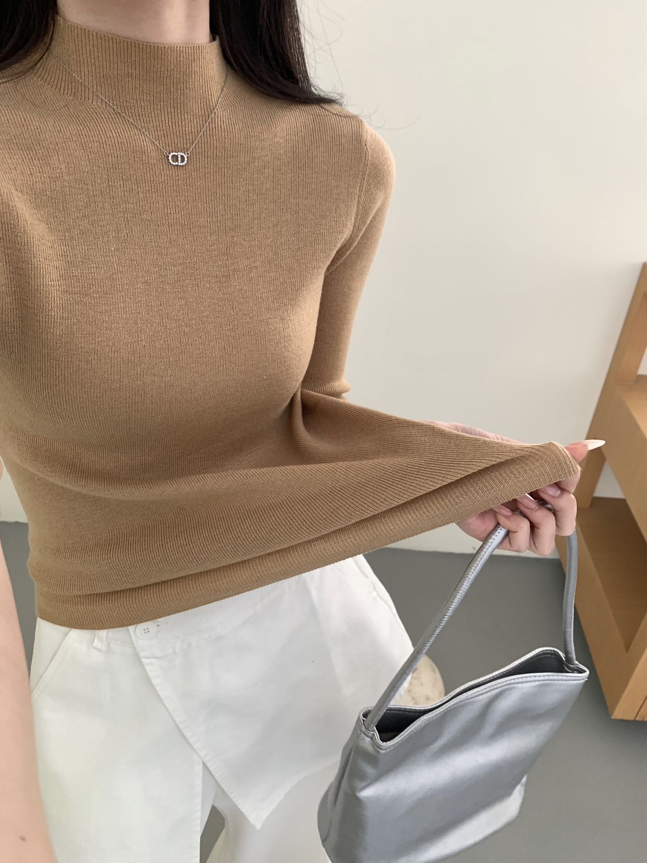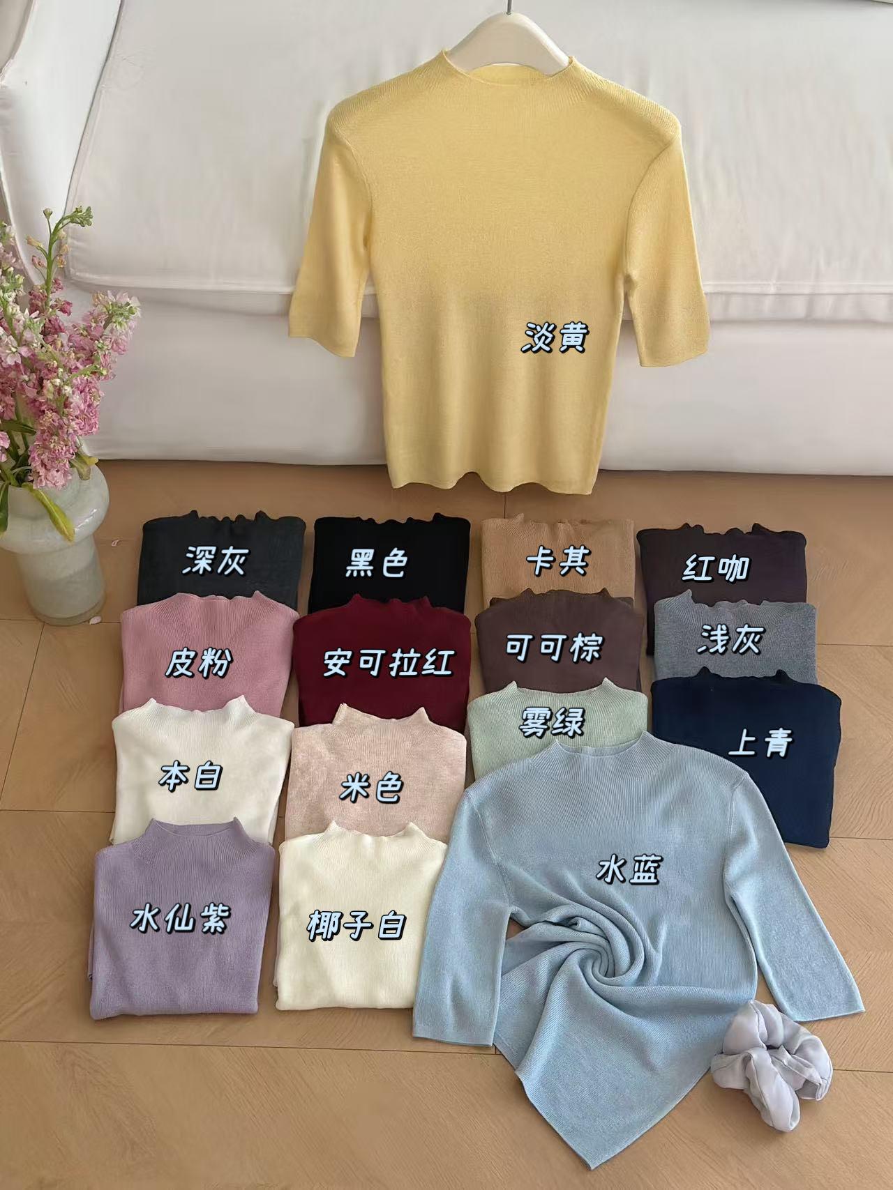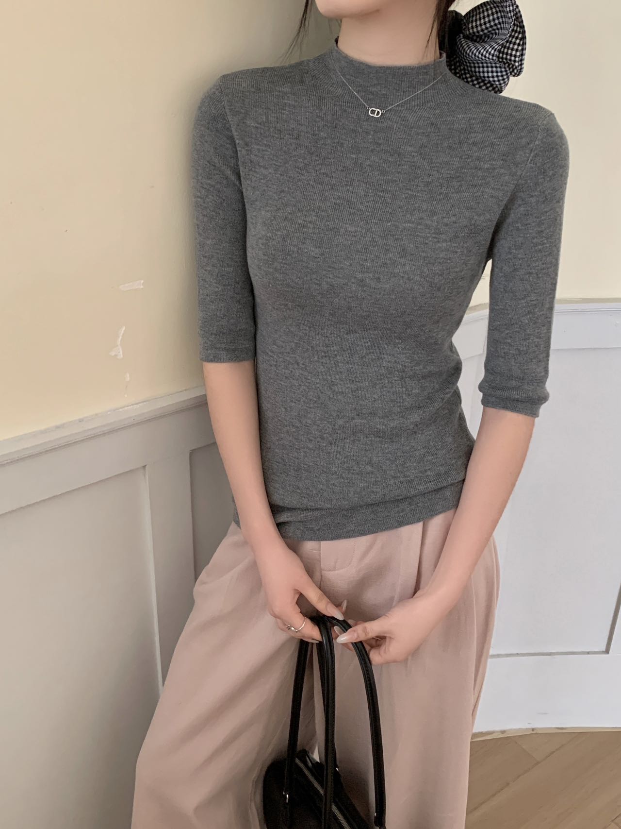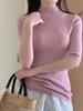 Suéter base de punto fino de lana de manga media y cuello medio alto para mujer, ropa interior nueva de primavera y otoño 2025, top ajustado