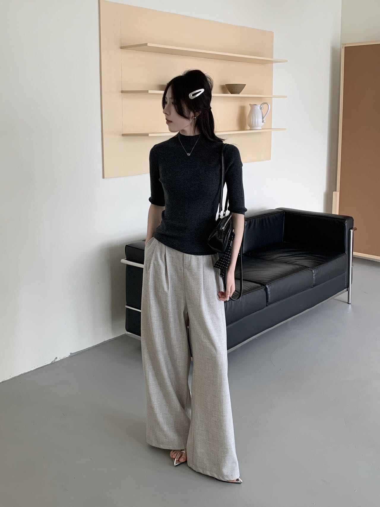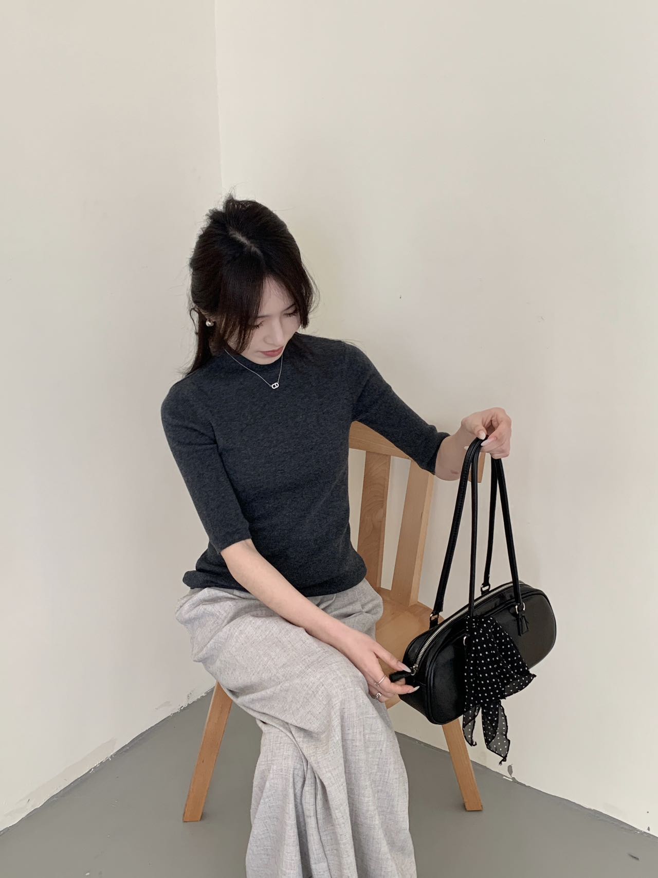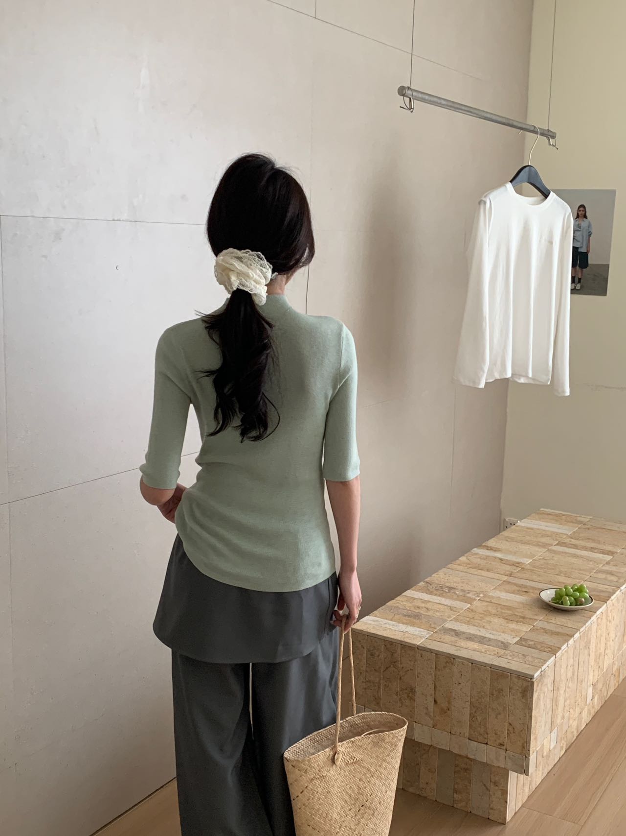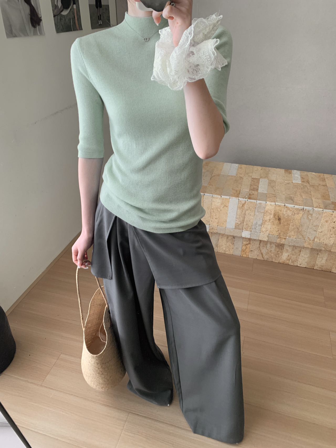 Suéter base de punto fino de lana de manga media y cuello medio alto para mujer, ropa interior nueva de primavera y otoño 2025, top ajustado