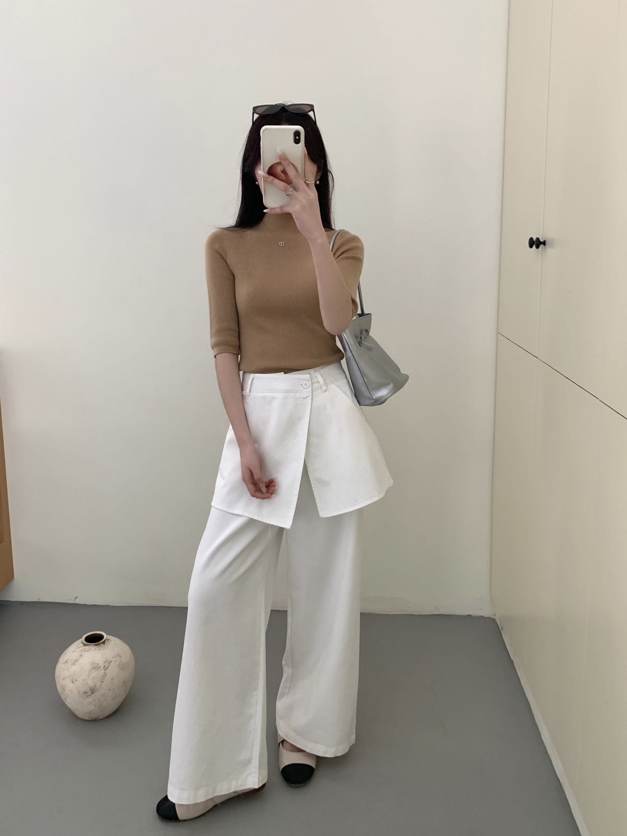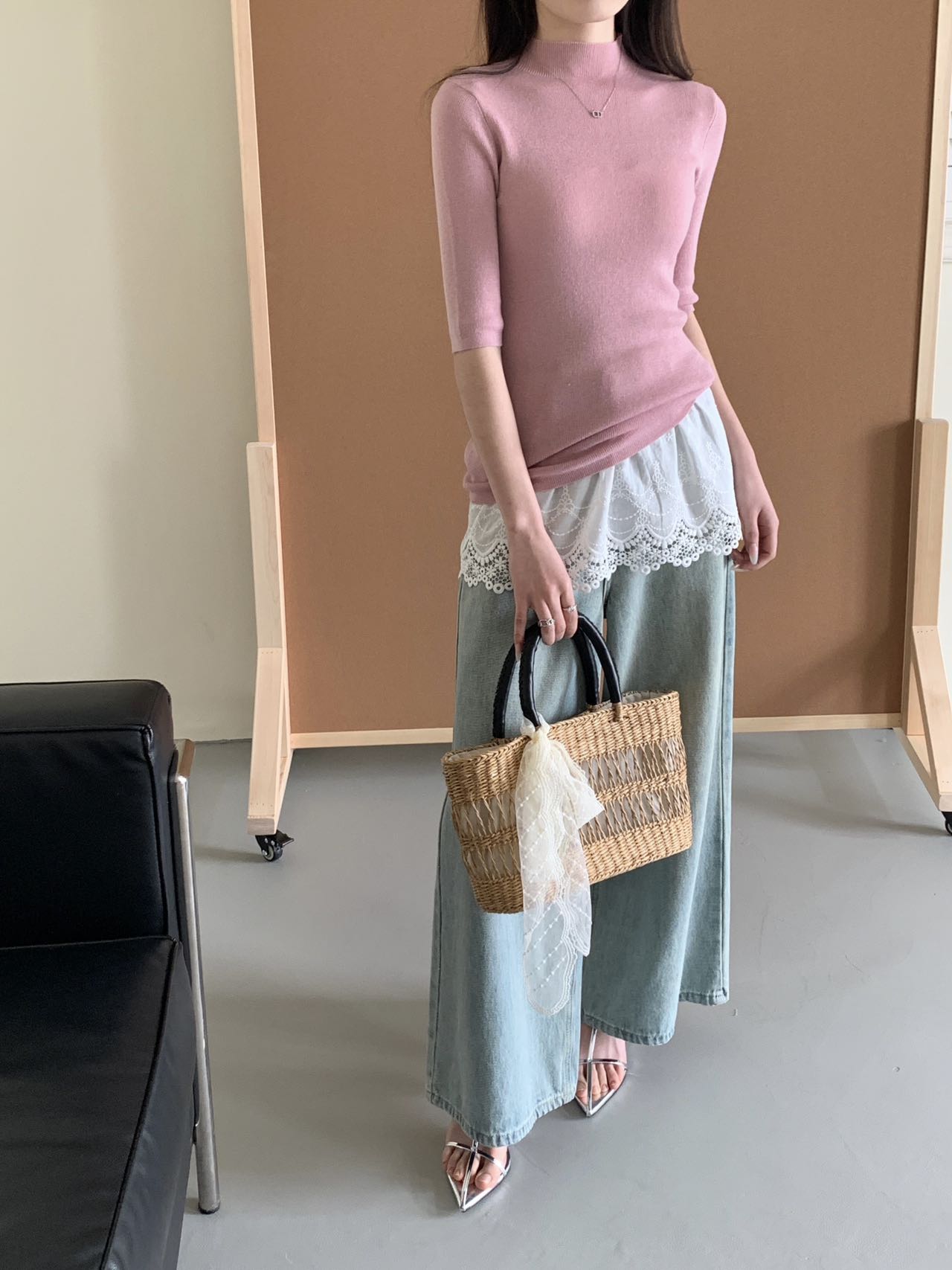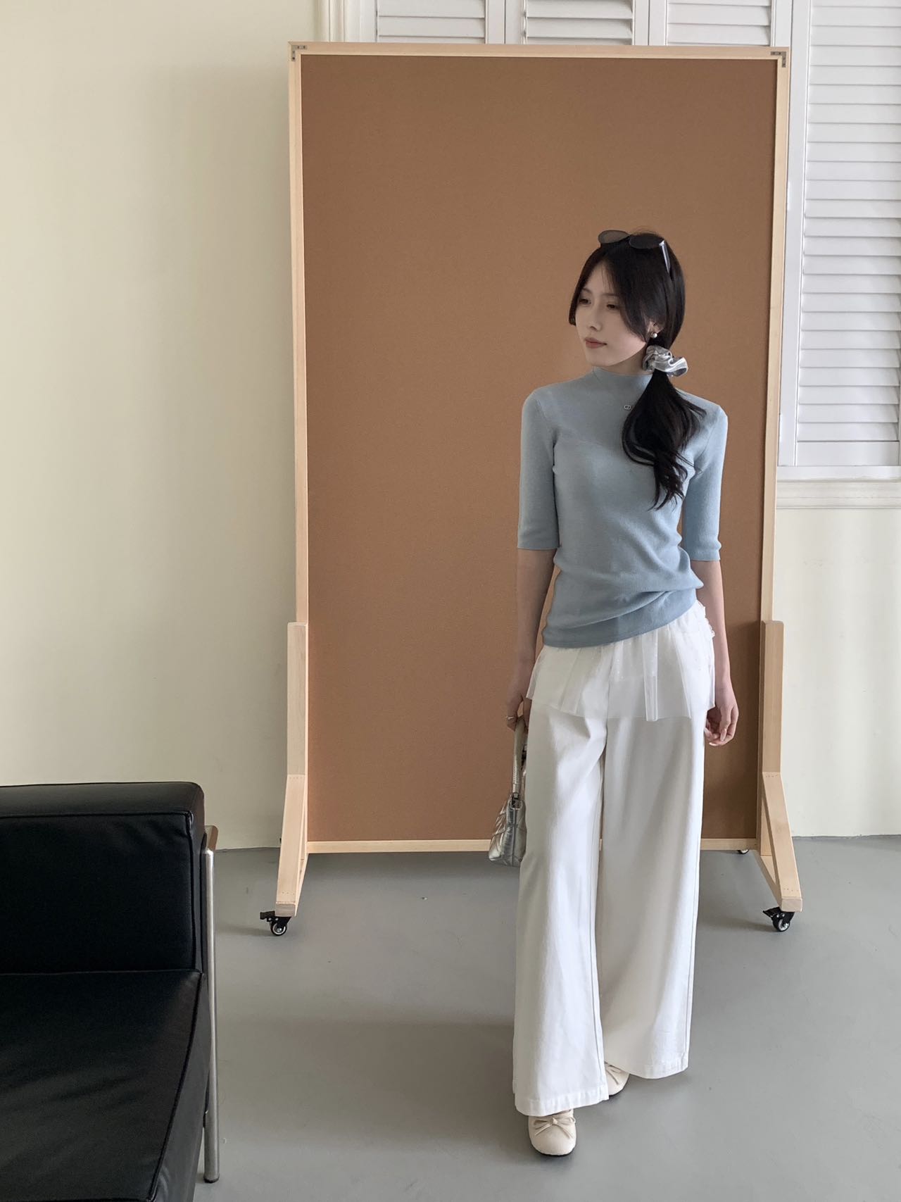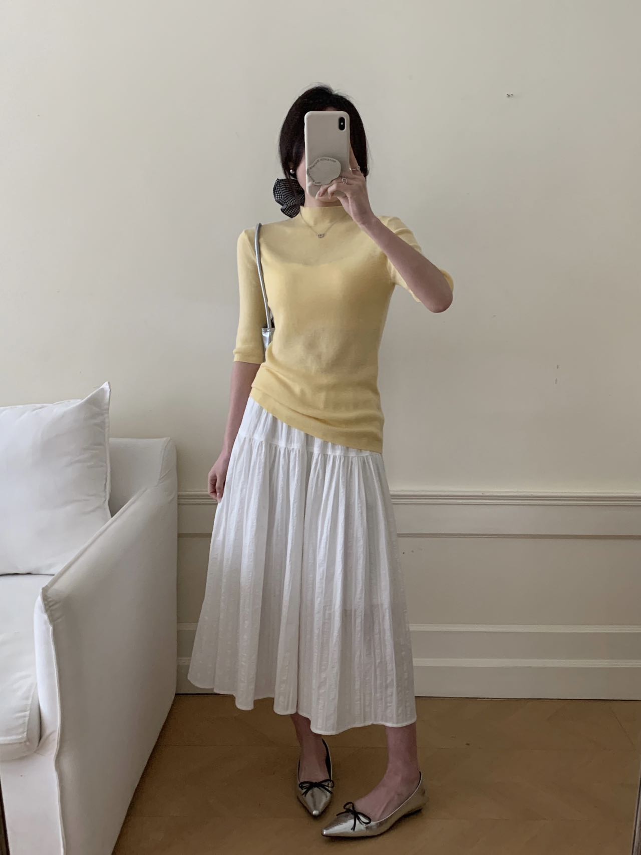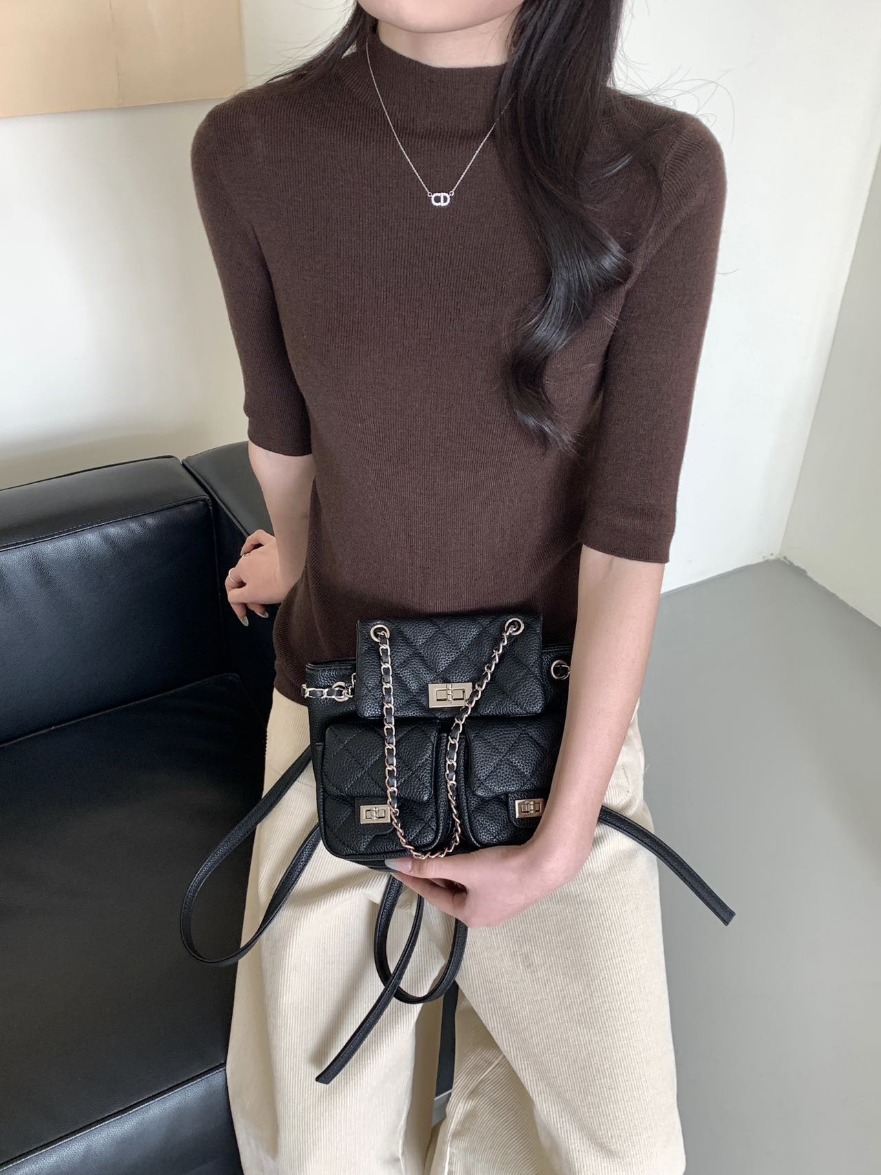 Suéter base de punto fino de lana de manga media y cuello medio alto para mujer, ropa interior nueva de primavera y otoño 2025, top ajustado