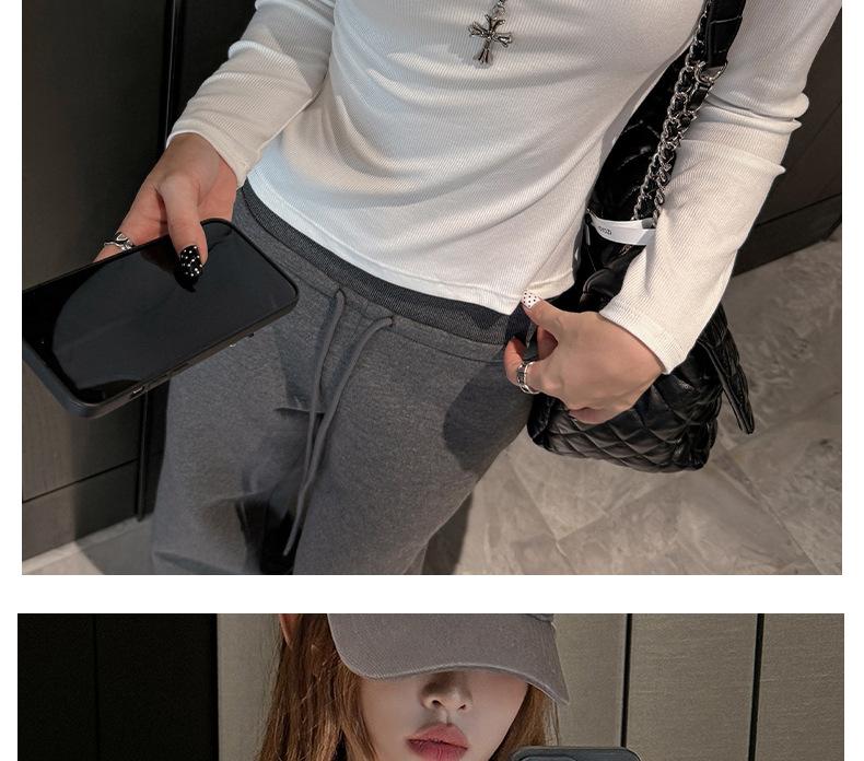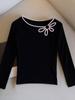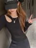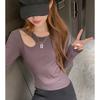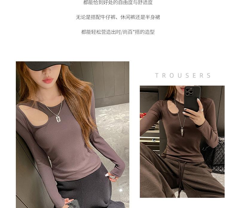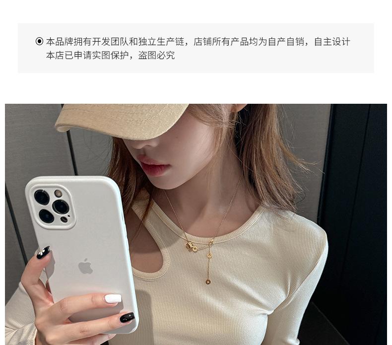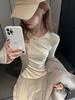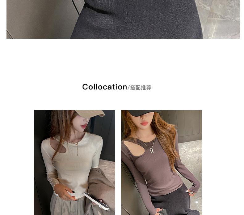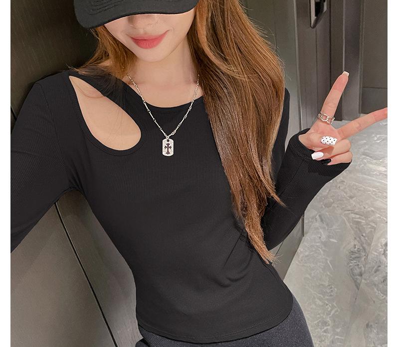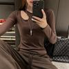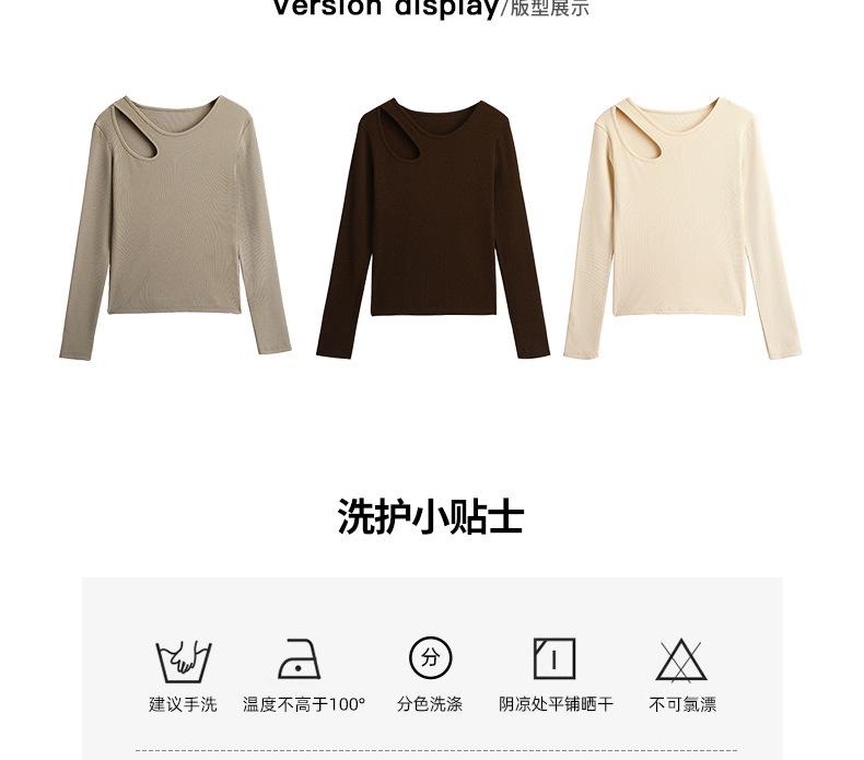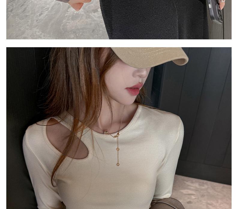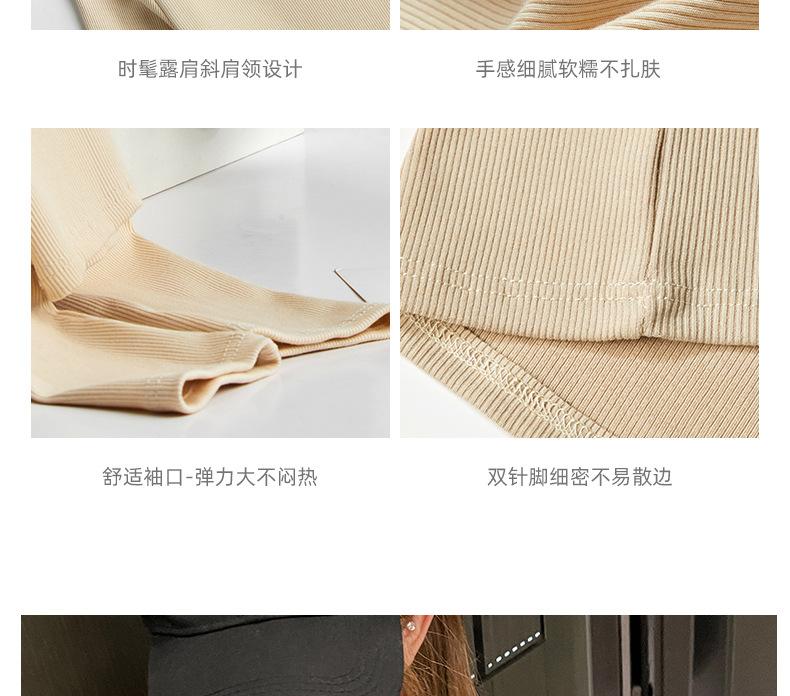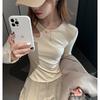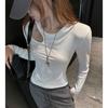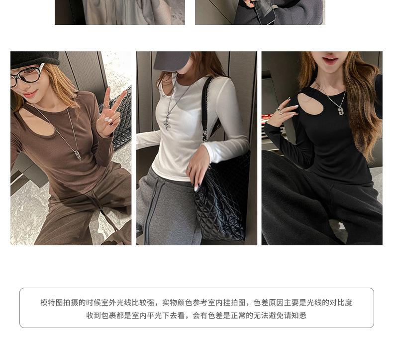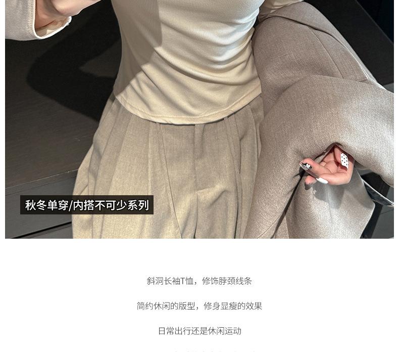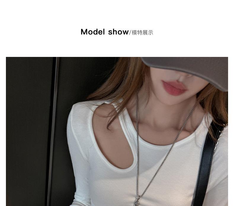 Camiseta Base Blanca Sexy Calada de Manga Larga para Mujer Principios de Otoño Ropa Interior Ropa Exterior Diseño de Hombro Recto Sentido Cuello Redondo Top de Modal