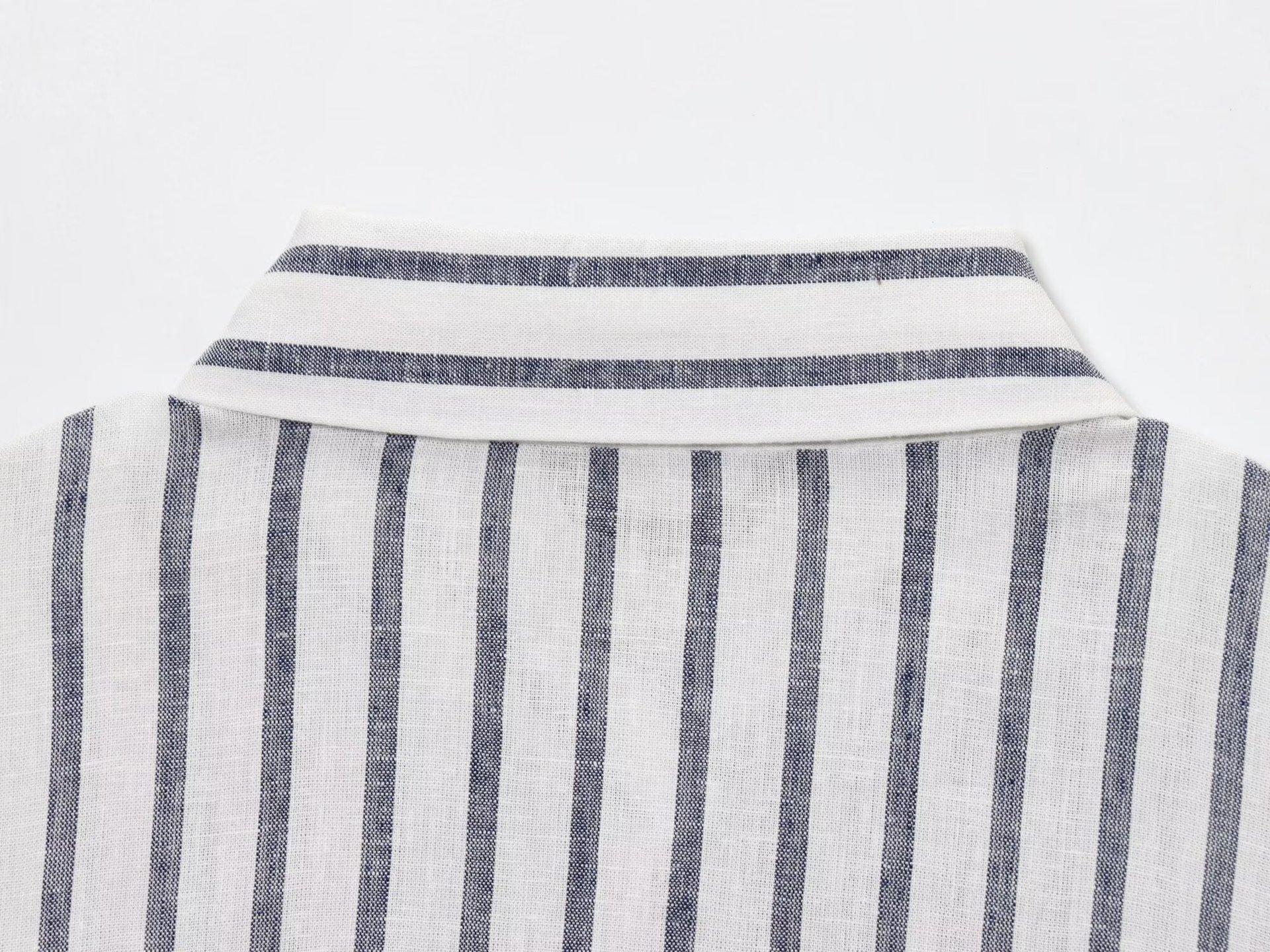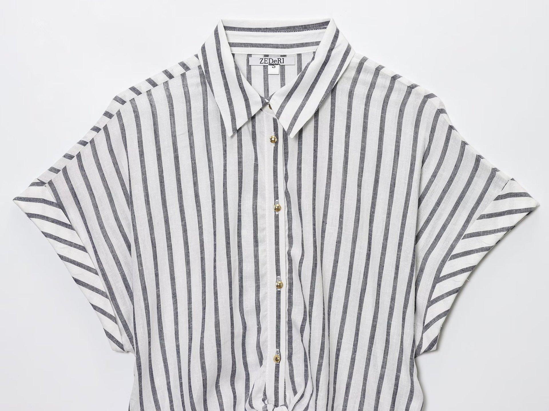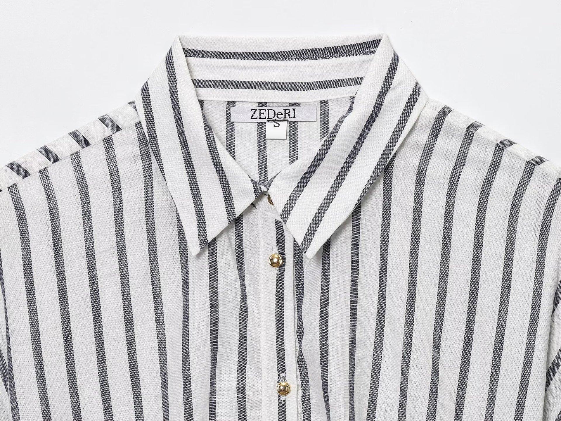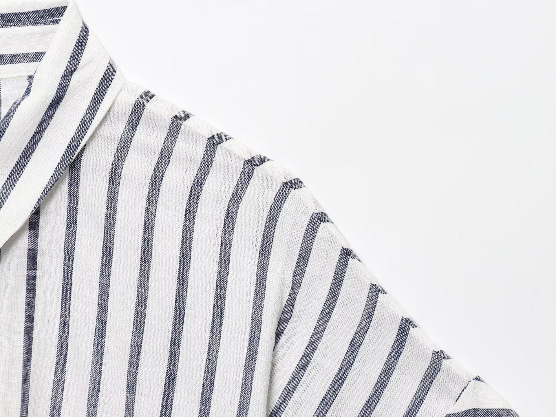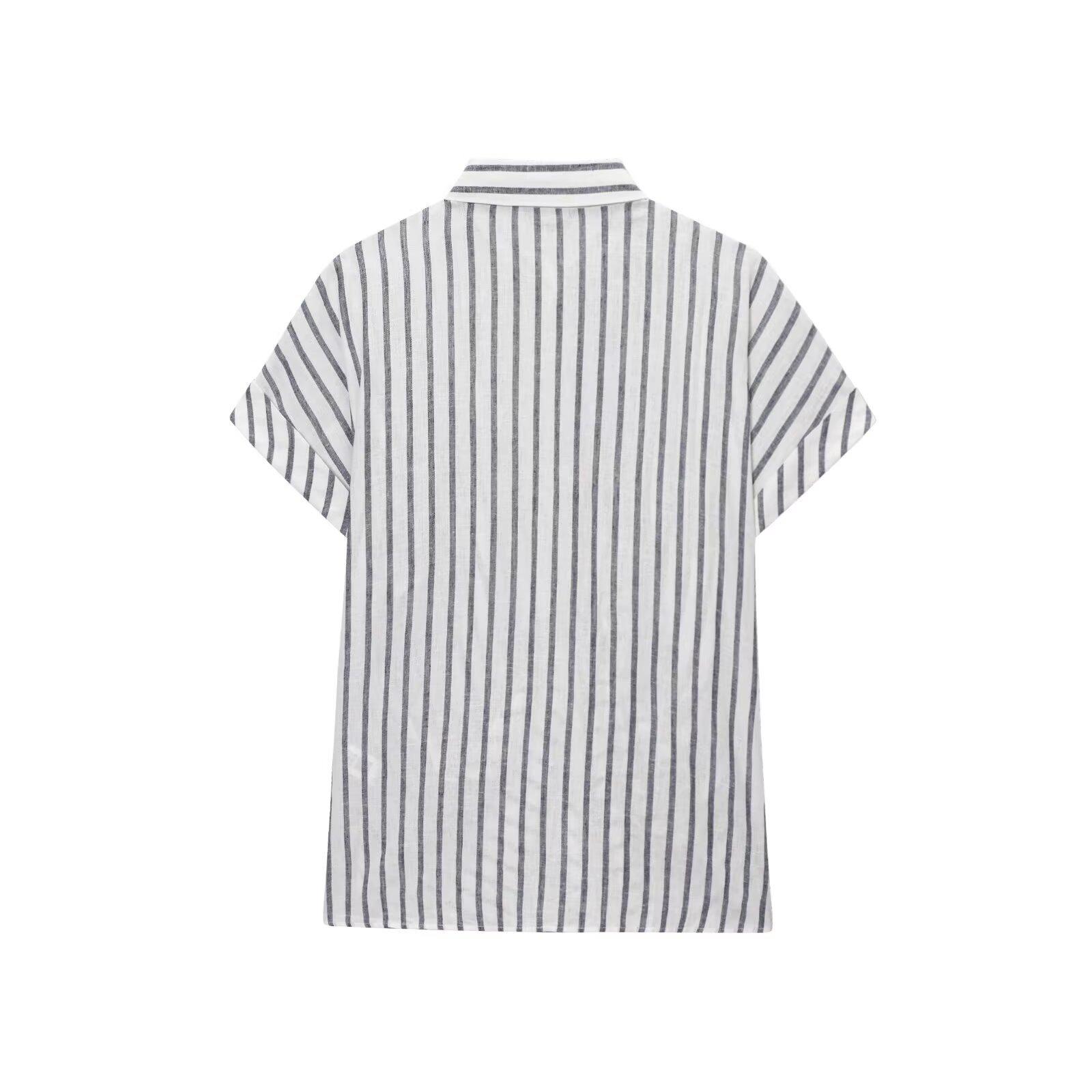 Transfronterizo Nuevo 2025 Estilo Europeo y Americano Ropa de Mujer Venta al por Mayor de Comercio Exterior ZR Mezcla de Lino Detalle de Lazo Camisa Rayada