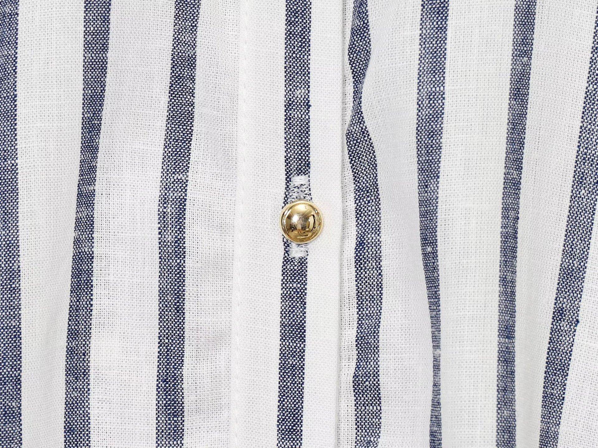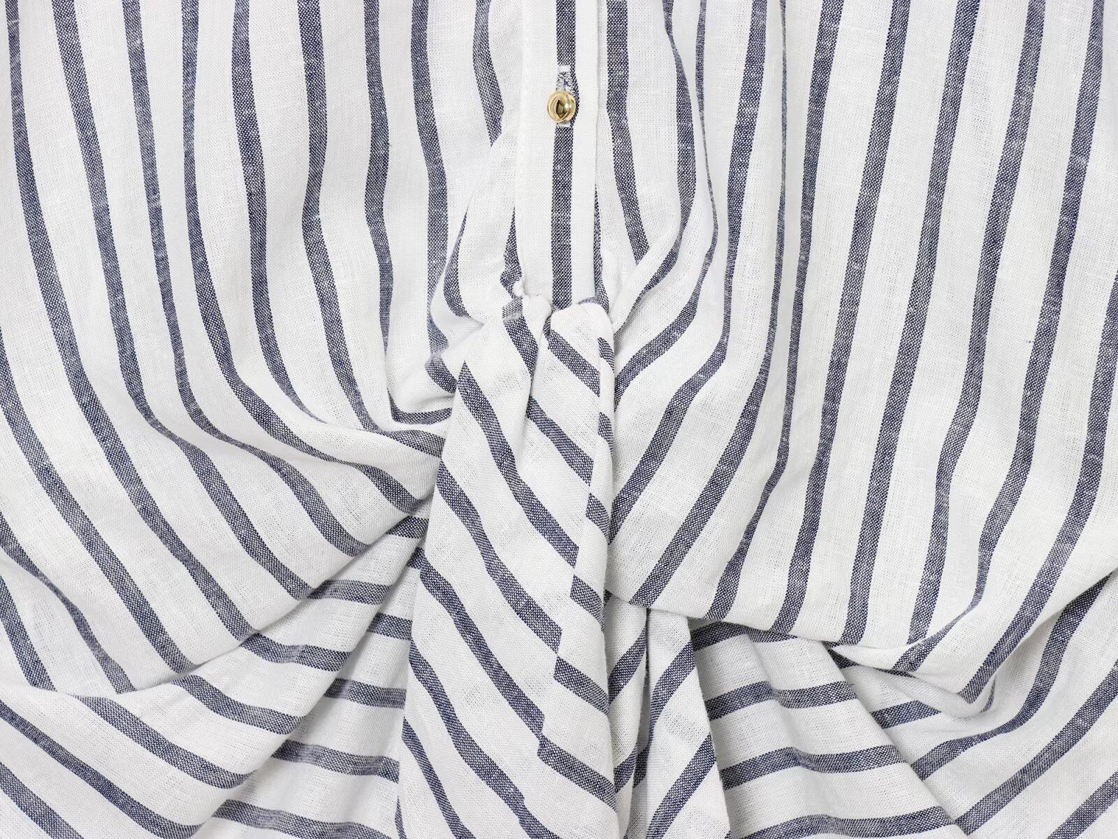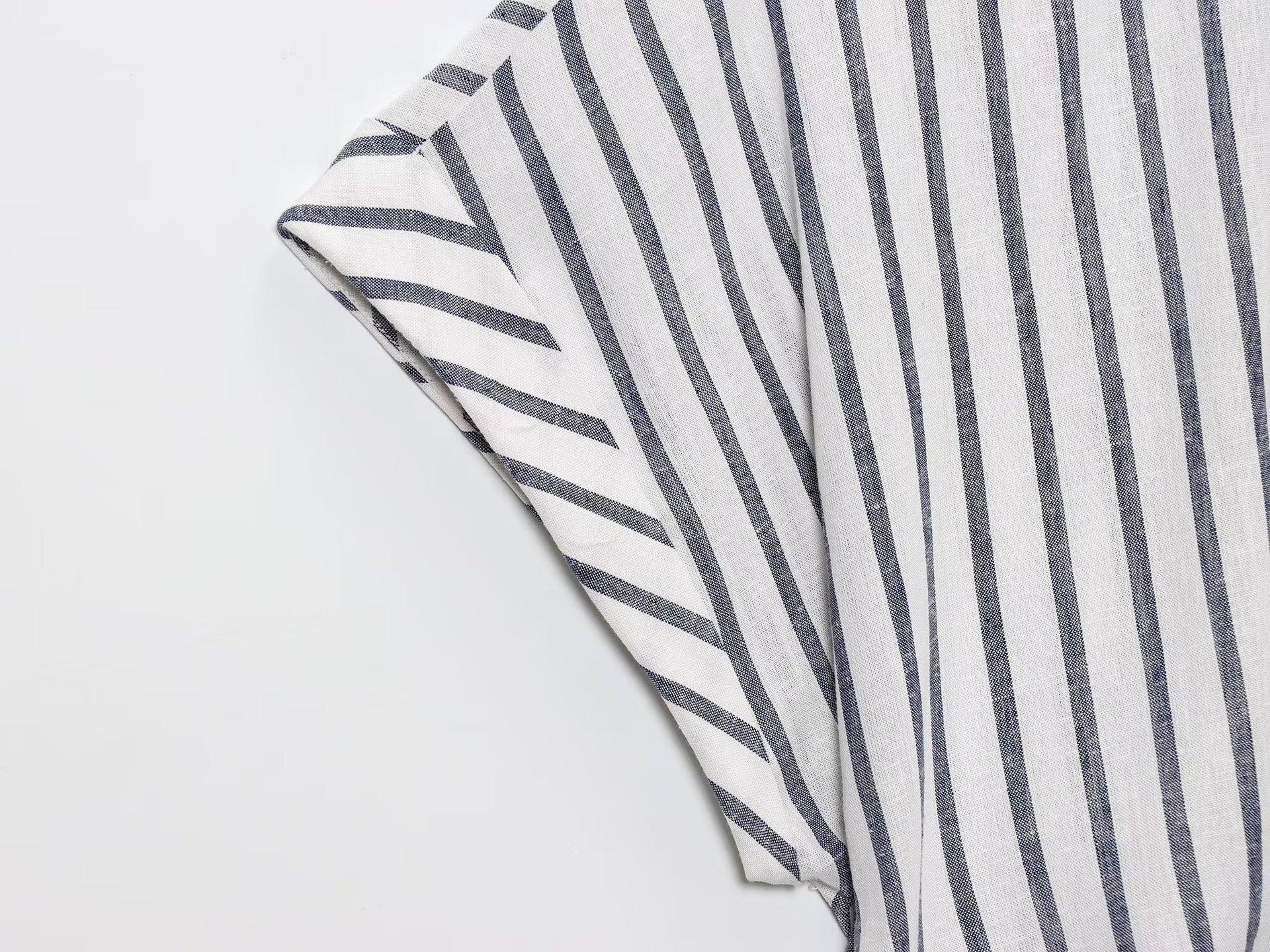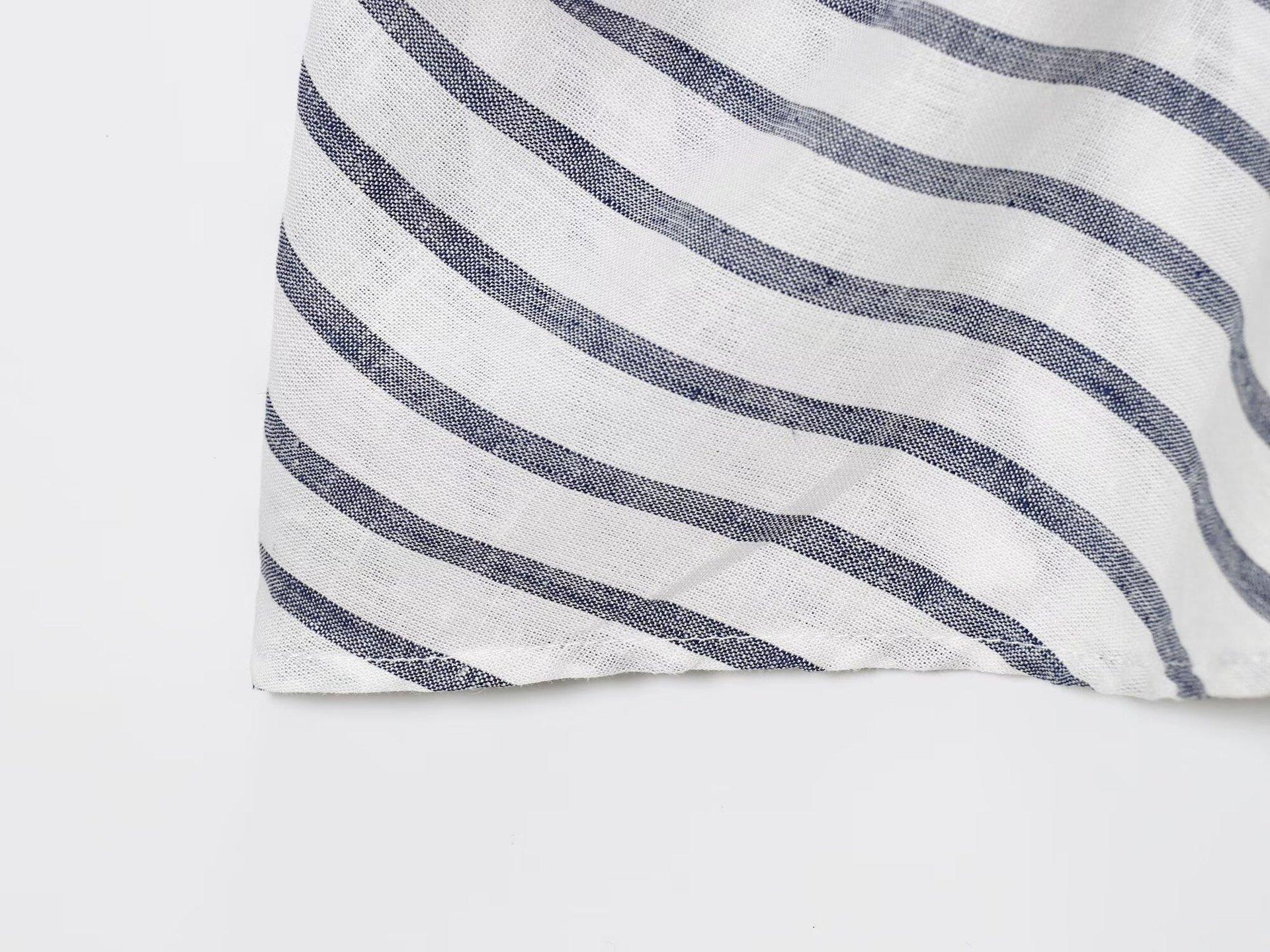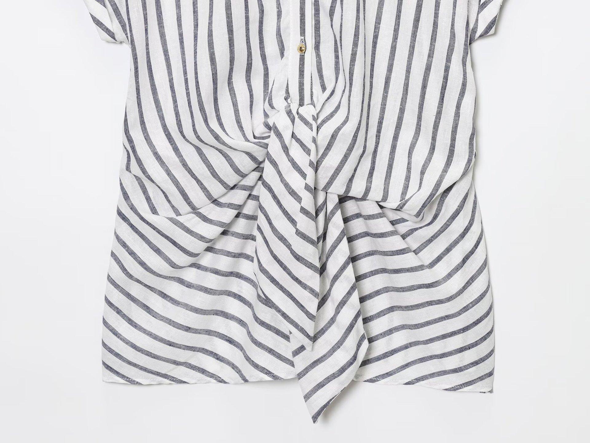 Transfronterizo Nuevo 2025 Estilo Europeo y Americano Ropa de Mujer Venta al por Mayor de Comercio Exterior ZR Mezcla de Lino Detalle de Lazo Camisa Rayada