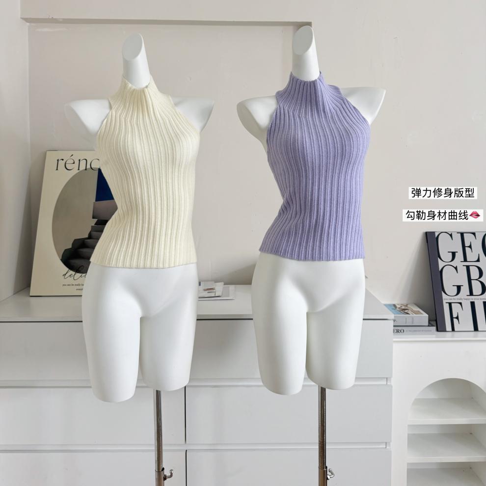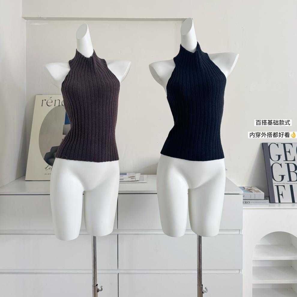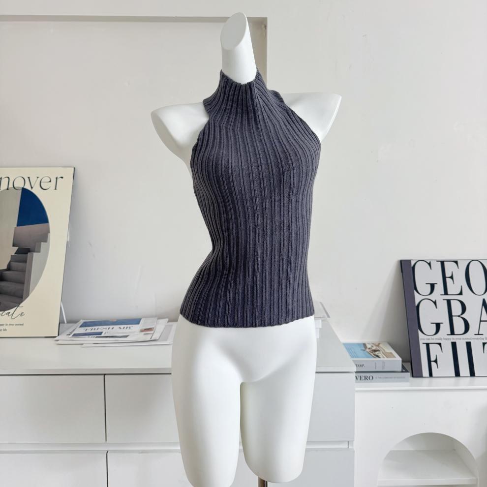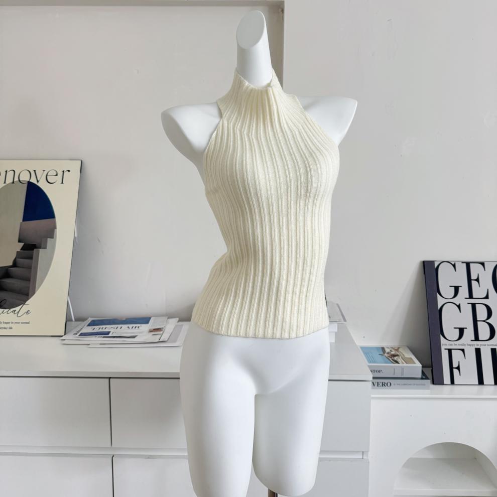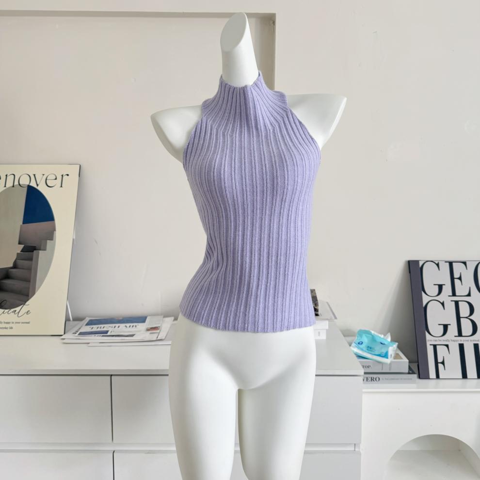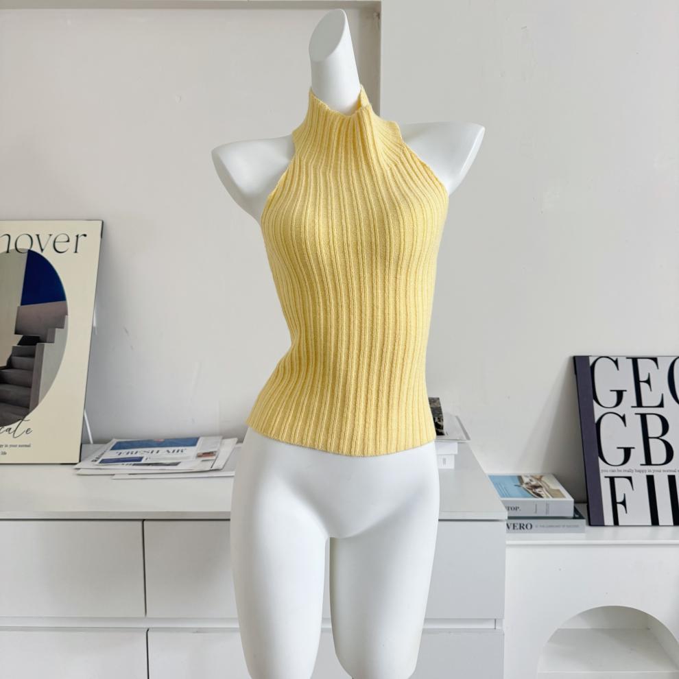 Otoño Temprano 2025 Nuevo Sentido del Diseño Coreano Nicho Cuello Alto Halter Chaleco de Punto Temperamento Top