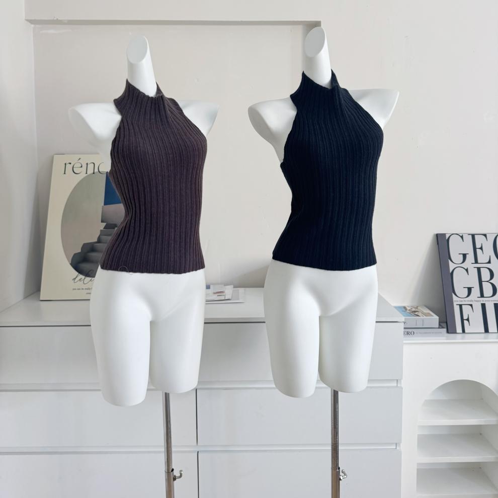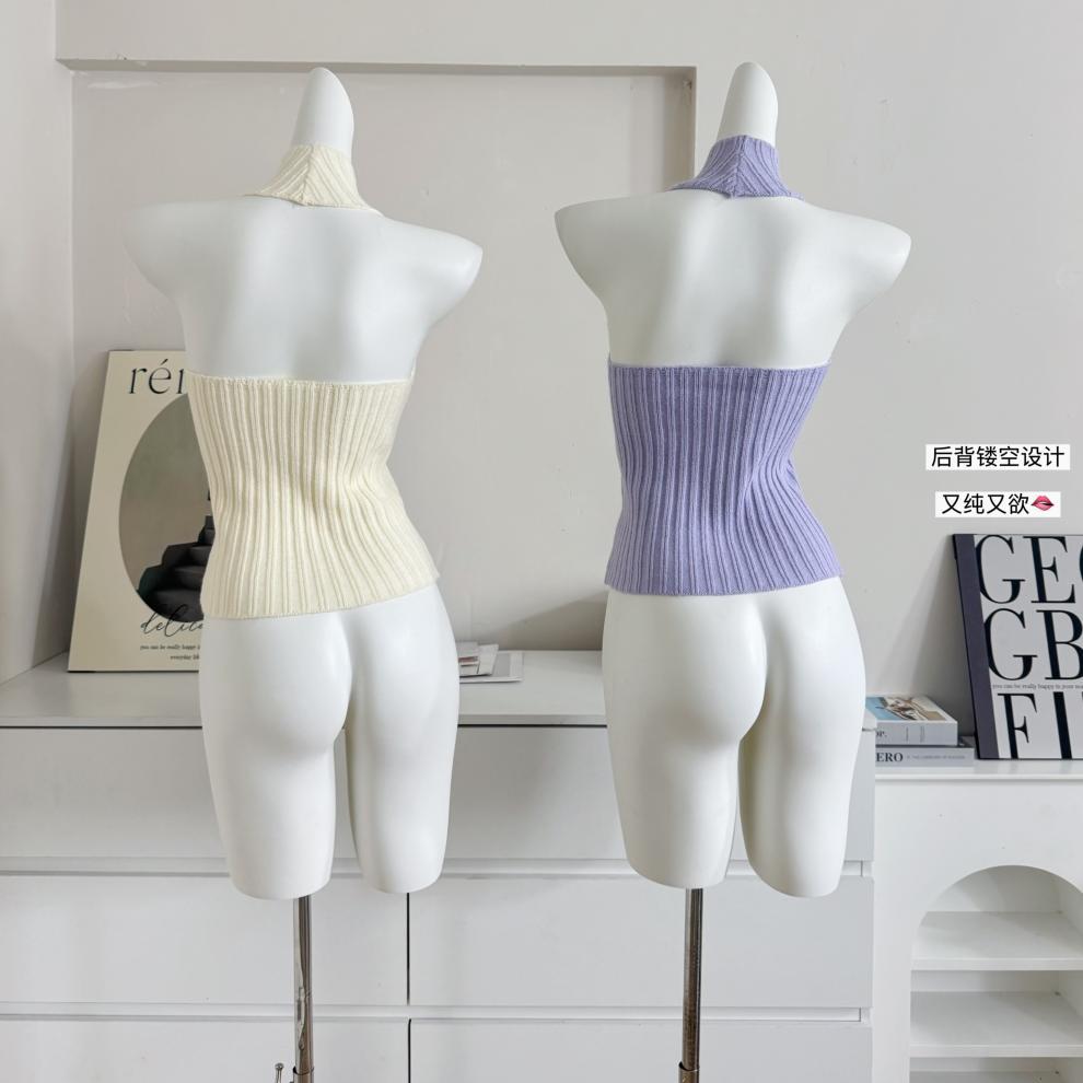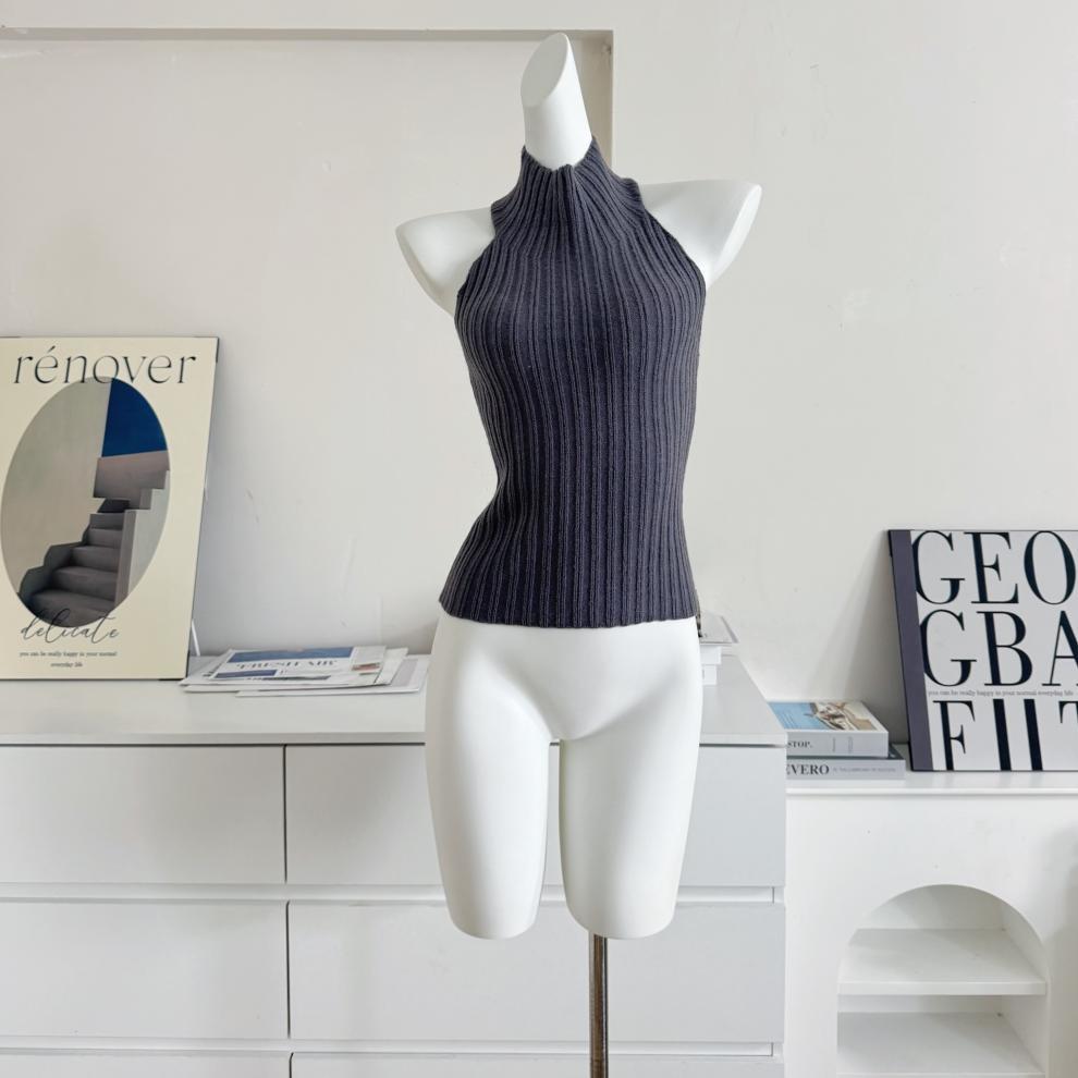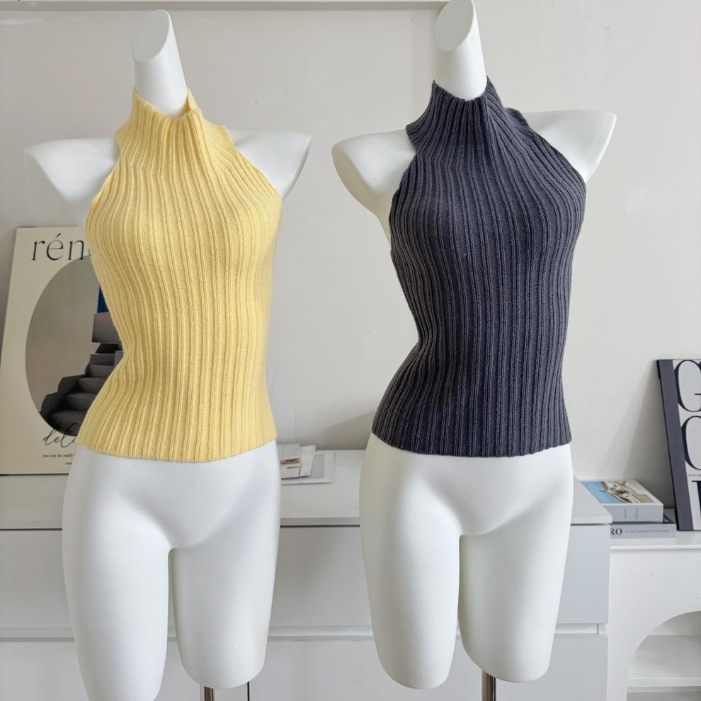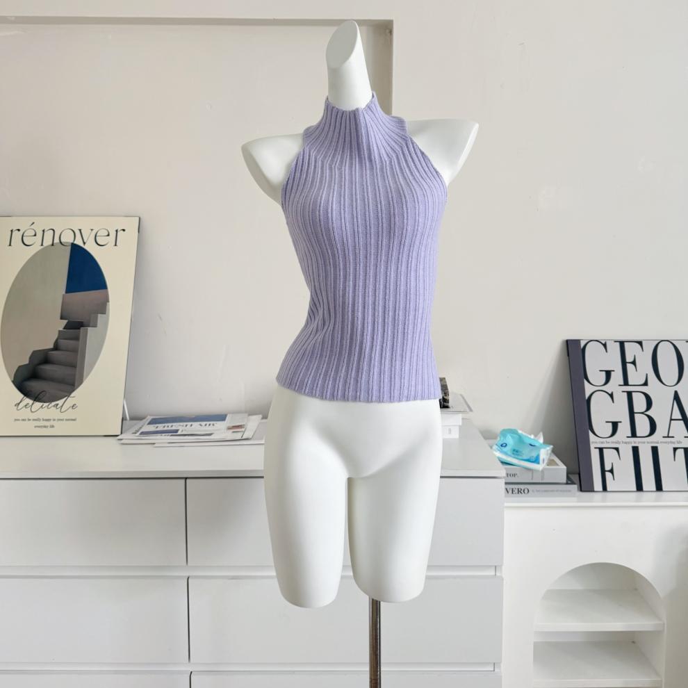 Otoño Temprano 2025 Nuevo Sentido del Diseño Coreano Nicho Cuello Alto Halter Chaleco de Punto Temperamento Top