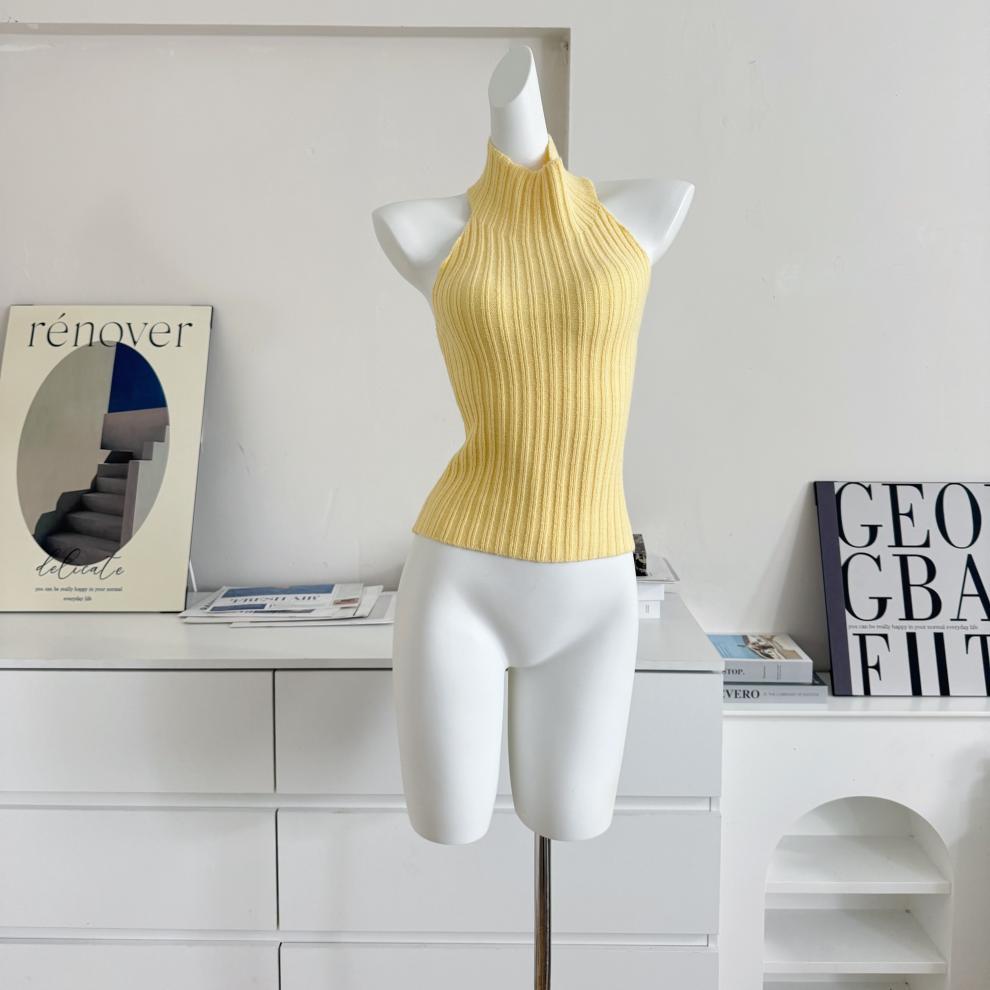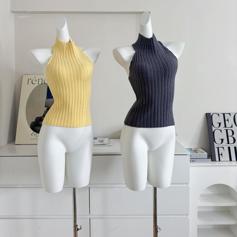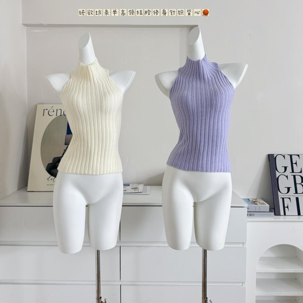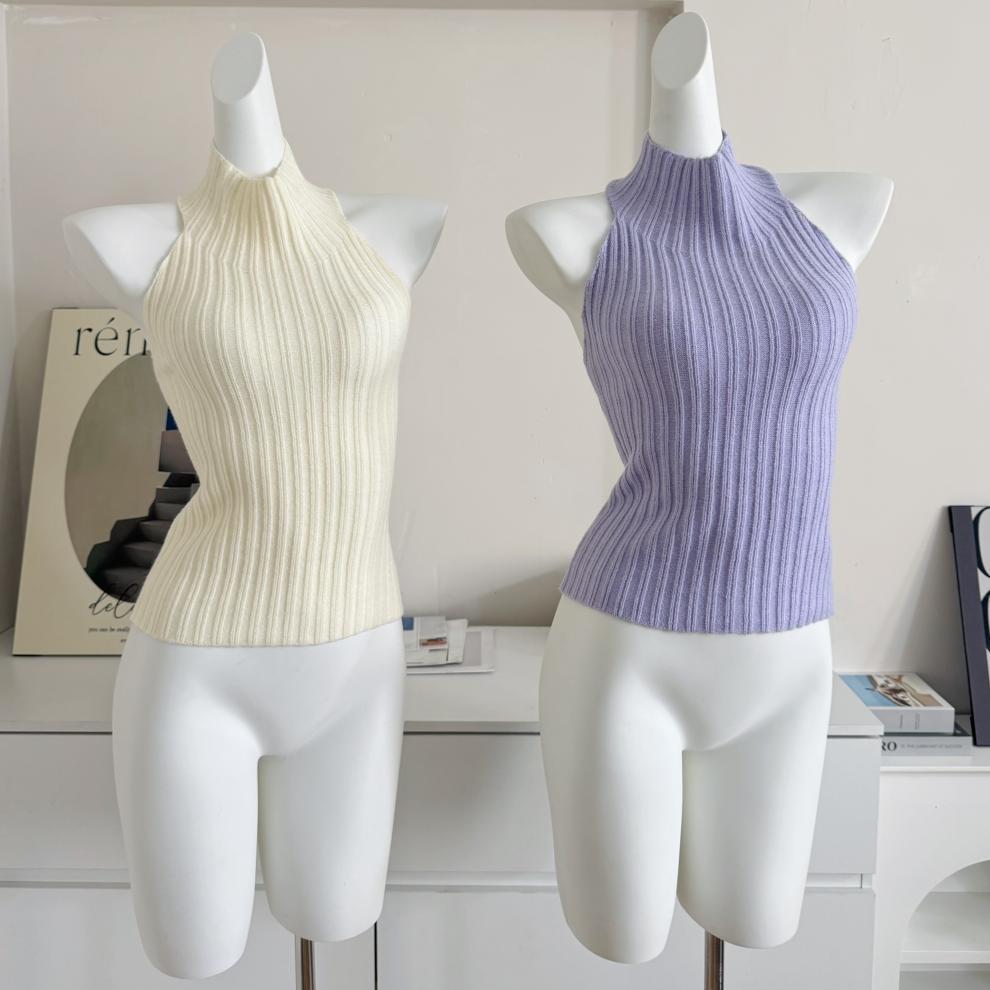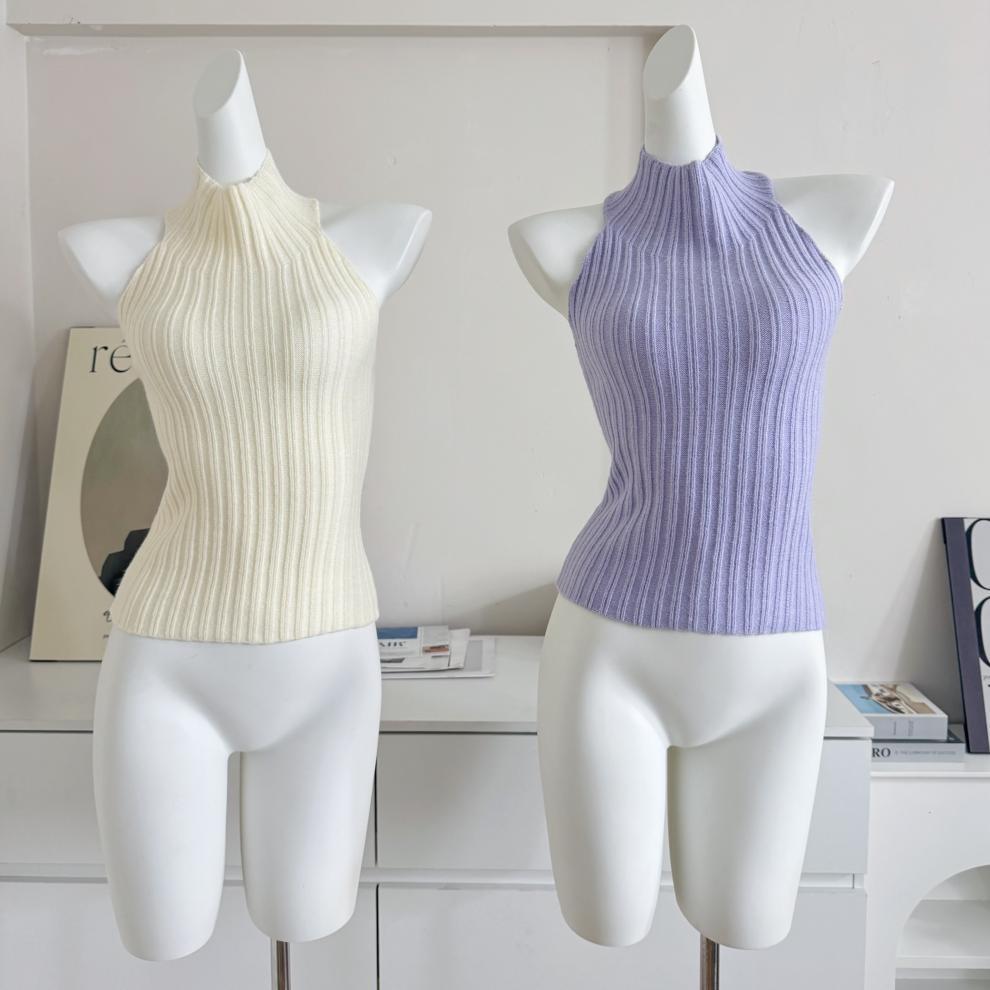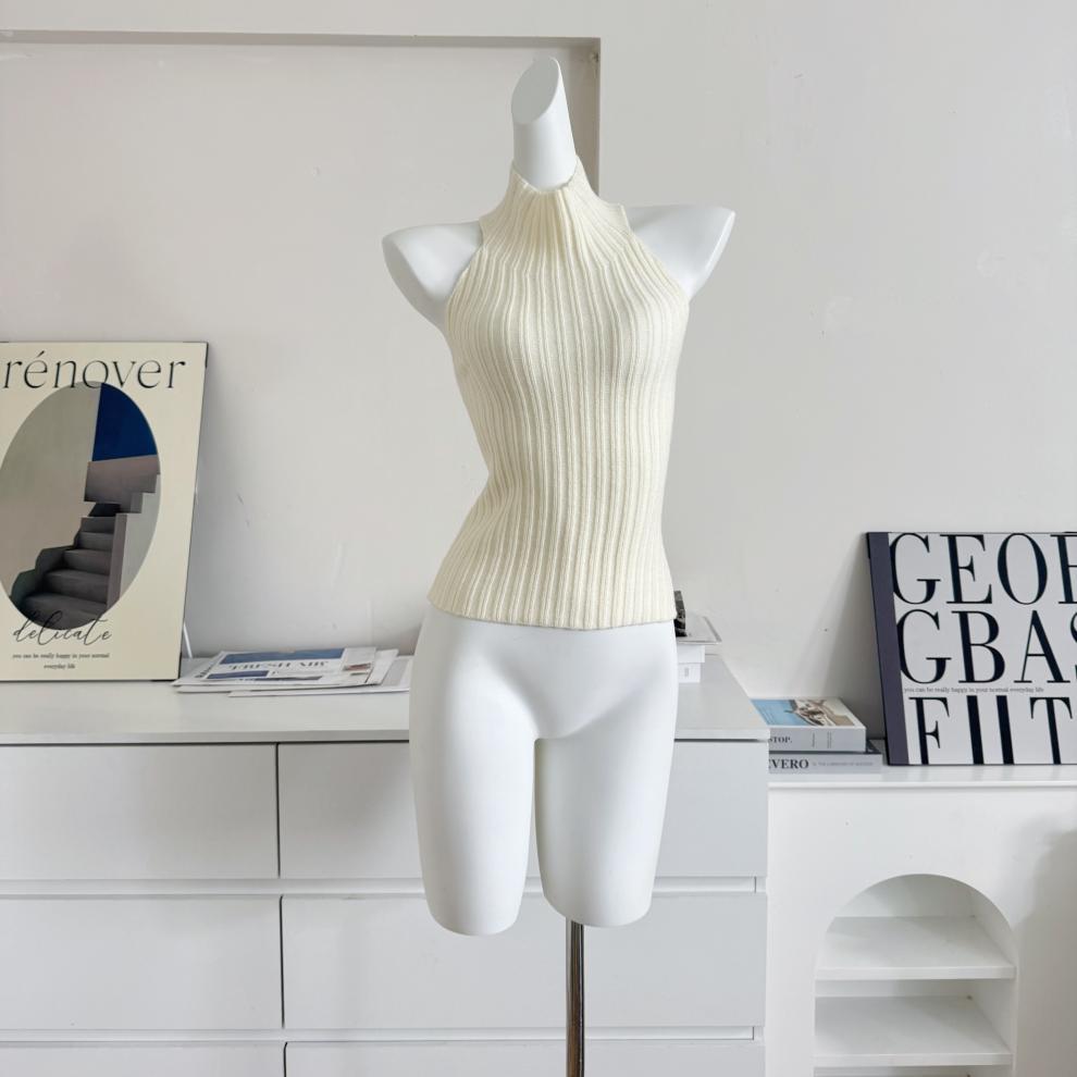 Otoño Temprano 2025 Nuevo Sentido del Diseño Coreano Nicho Cuello Alto Halter Chaleco de Punto Temperamento Top
