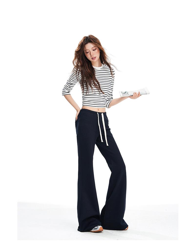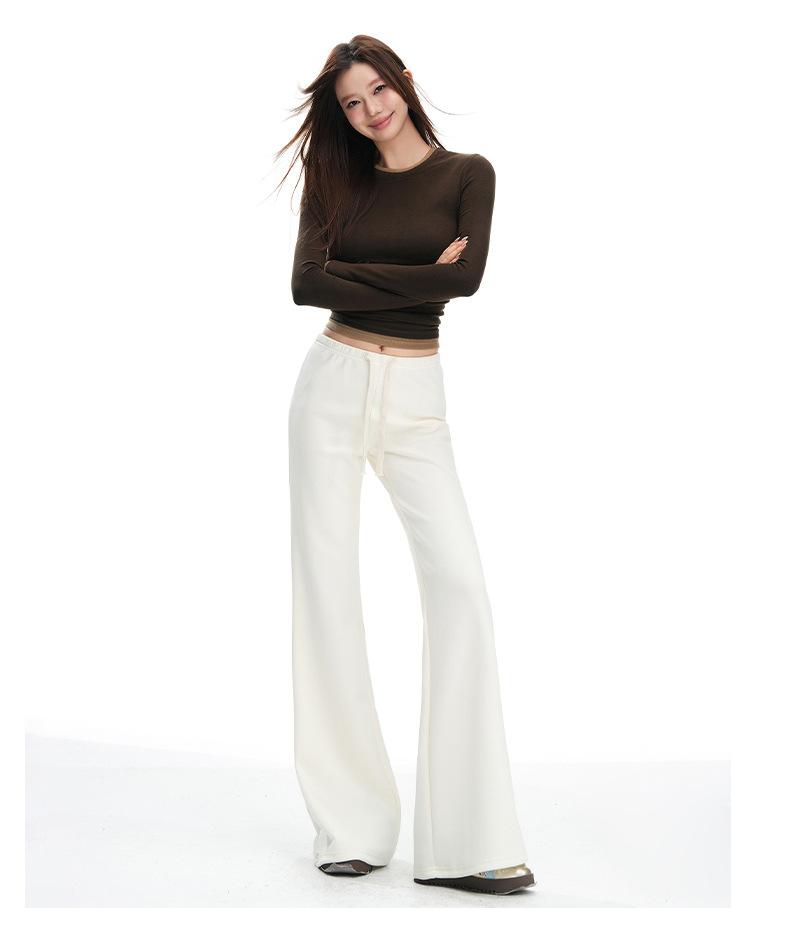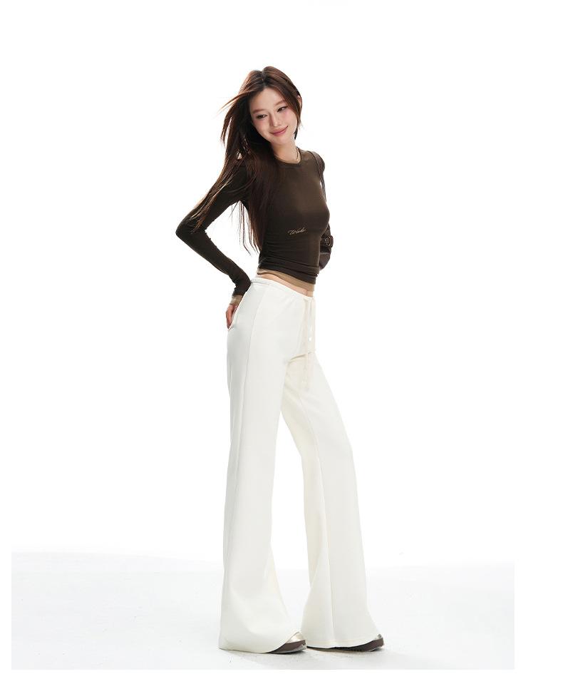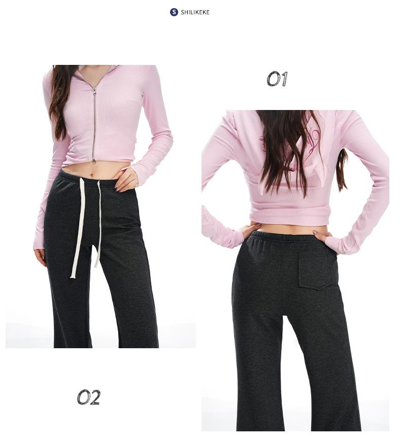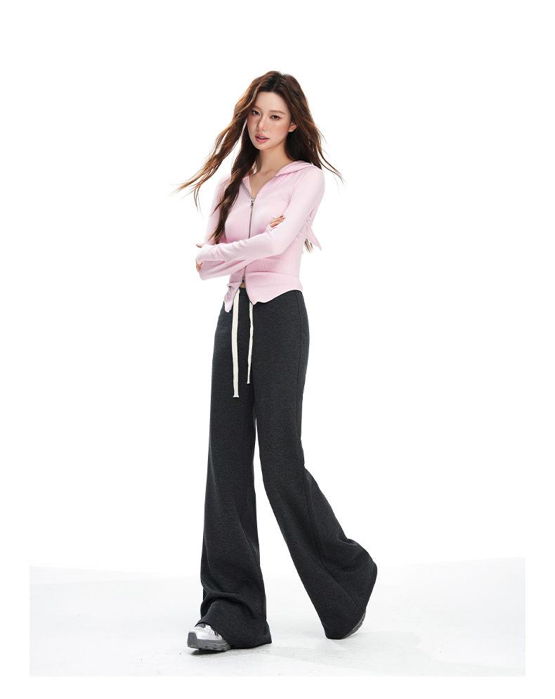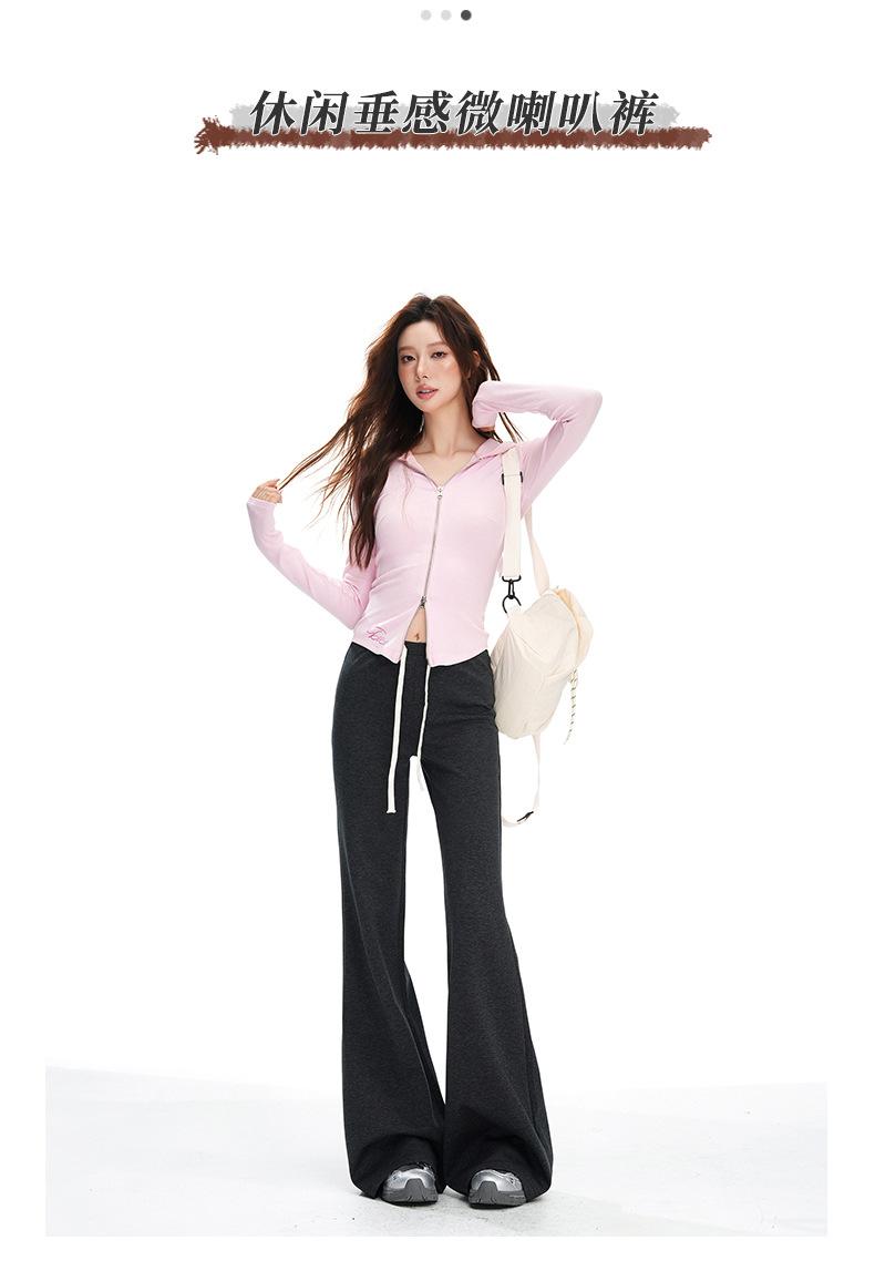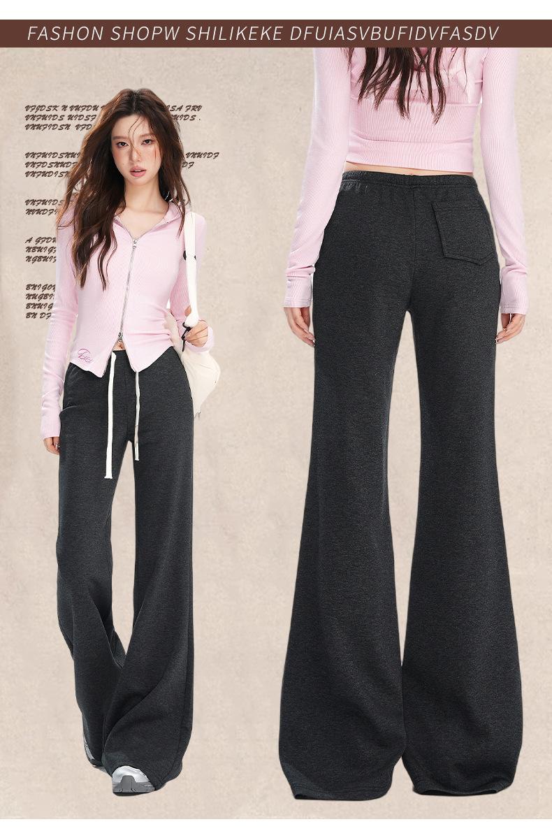 25 Otoño/Invierno Nuevo Suave y Caído Americano Cordón Cintura Media-Baja Ligeramente Suelto Acampanado Casual Deportivo Pantalón de Sudor para Mujer