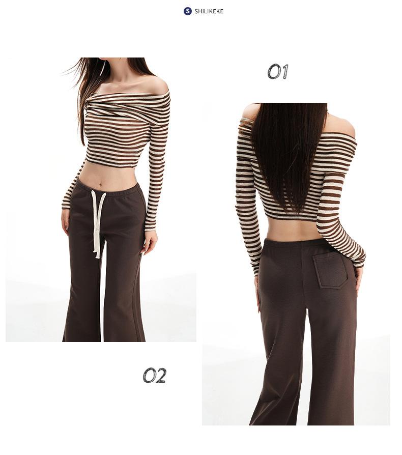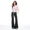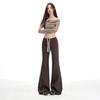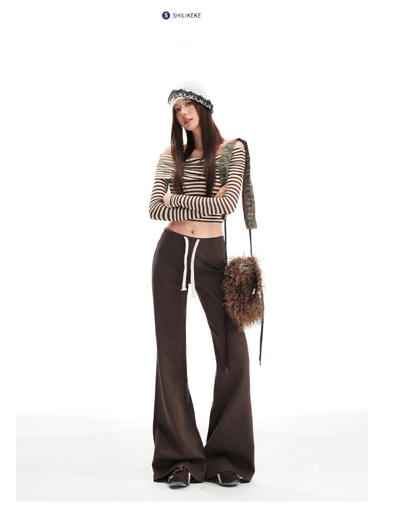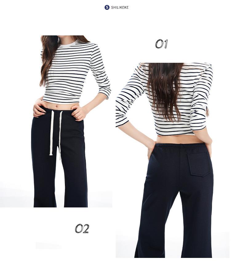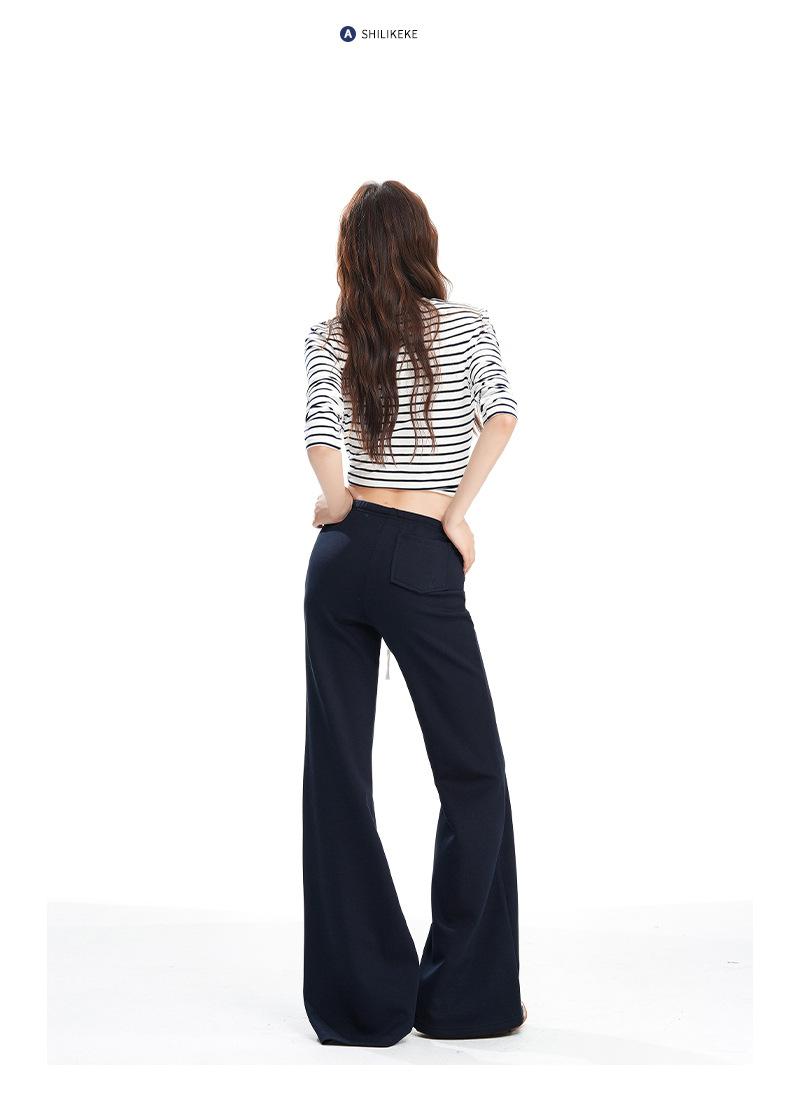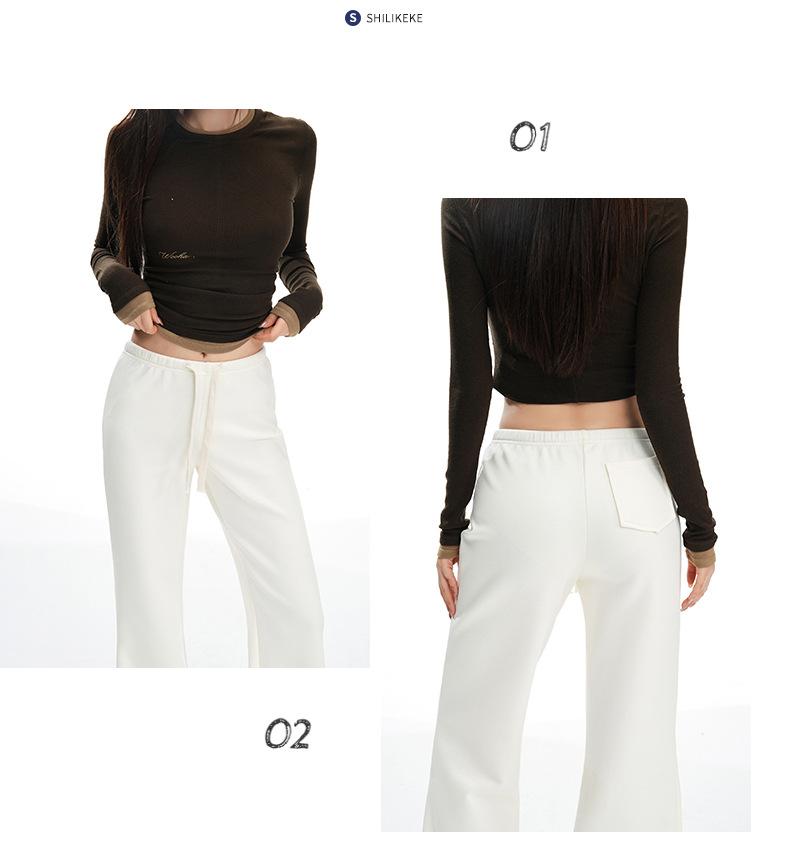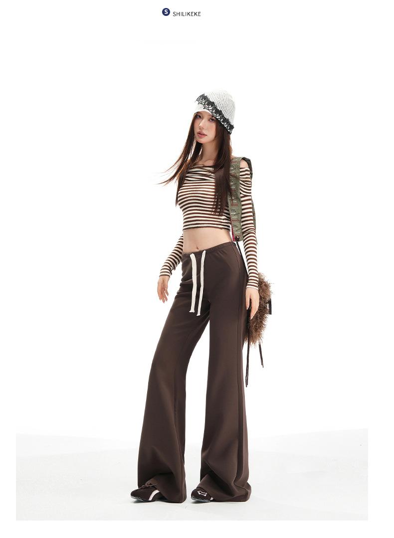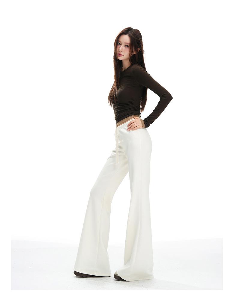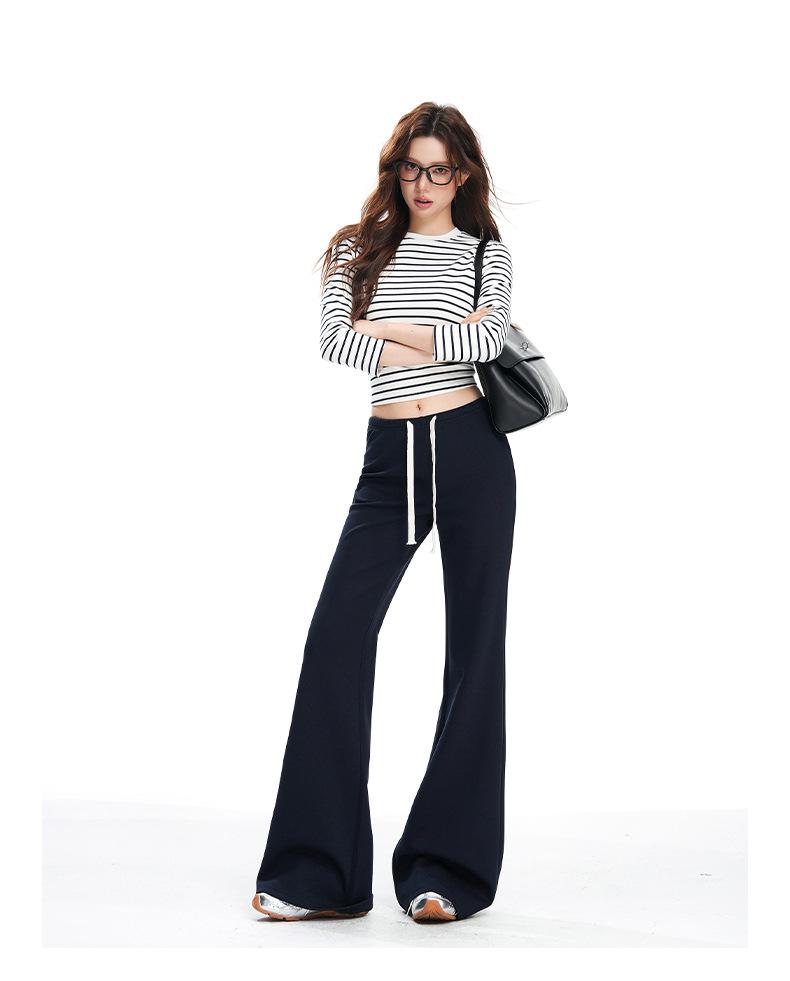 25 Otoño/Invierno Nuevo Suave y Caído Americano Cordón Cintura Media-Baja Ligeramente Suelto Acampanado Casual Deportivo Pantalón de Sudor para Mujer