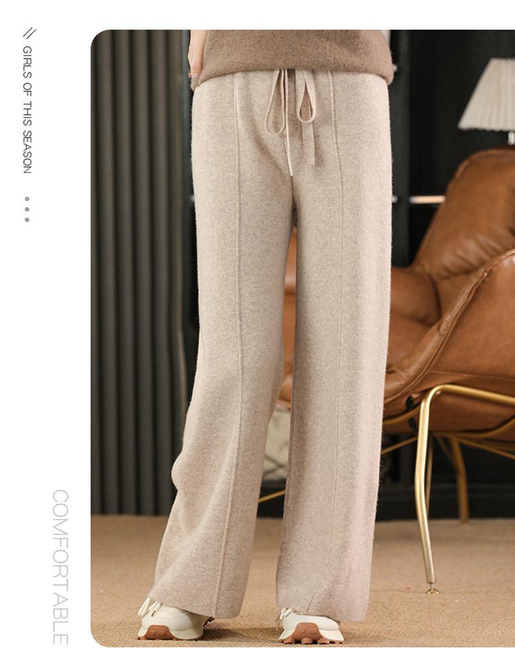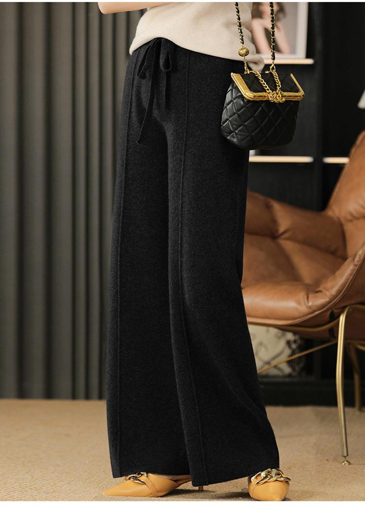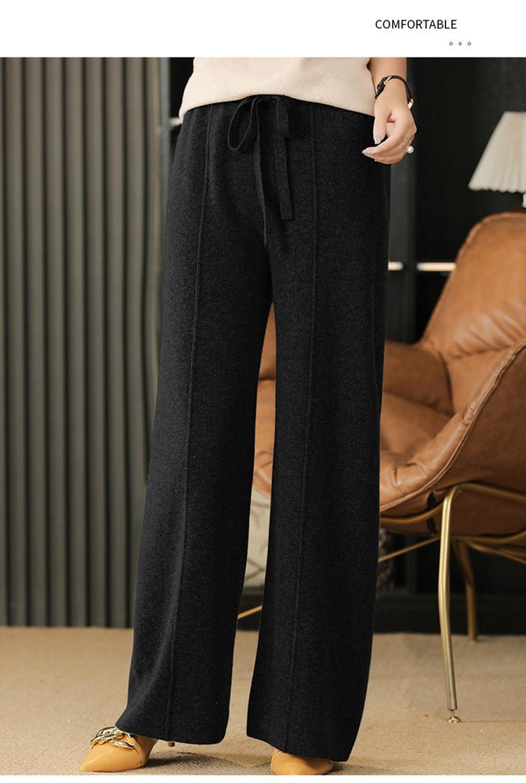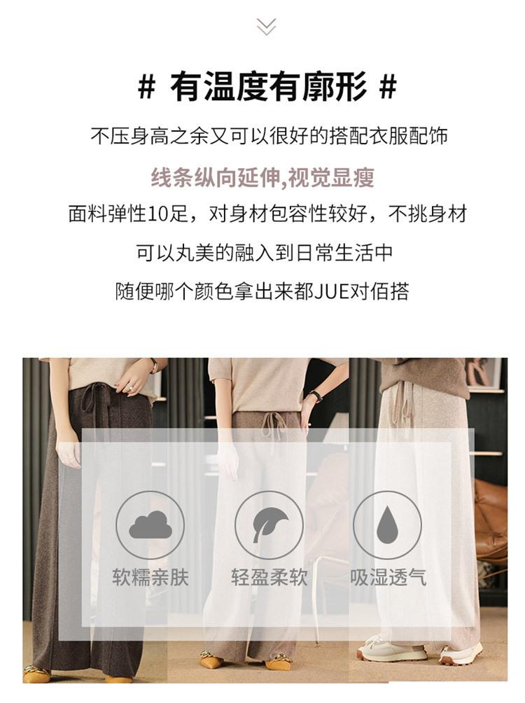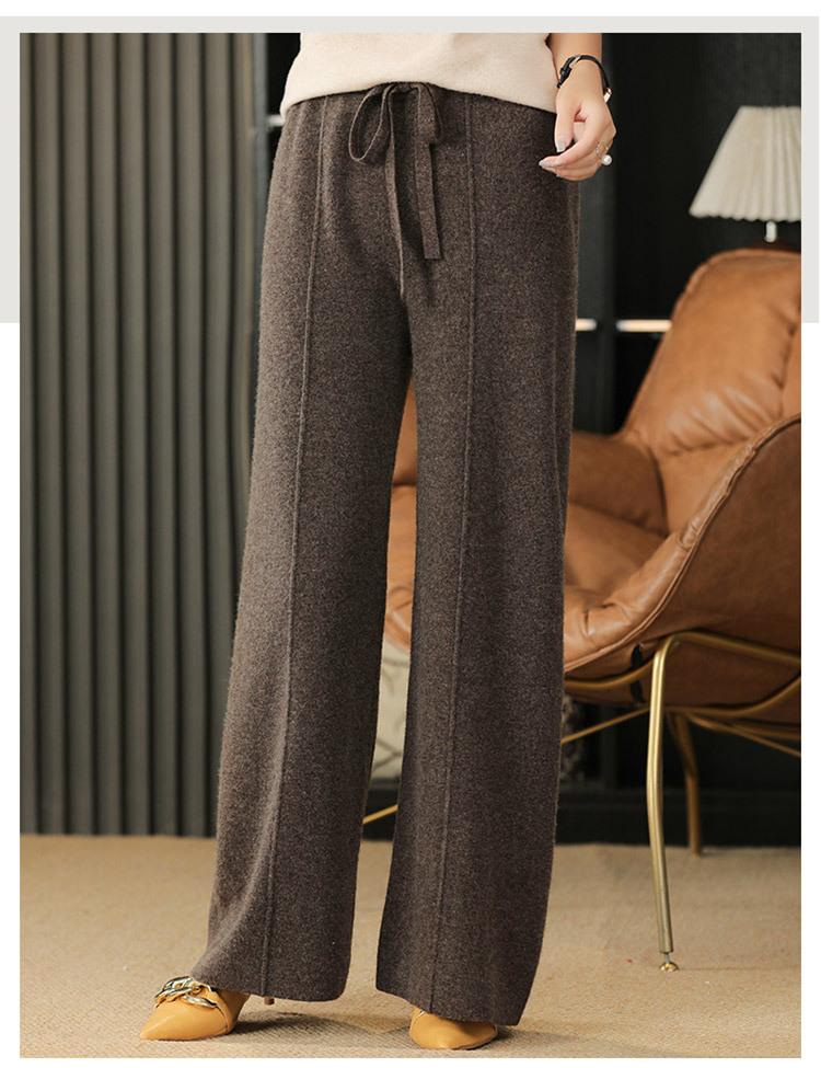 Pantalones de Lana Holgados de Caída Ancha para Mujer Otoño e Invierno Nuevos Pantalones Tejidos de Cintura Alta Adelgazantes Pantalones Largos Pantalones Sueltos hasta el Piso Modernos