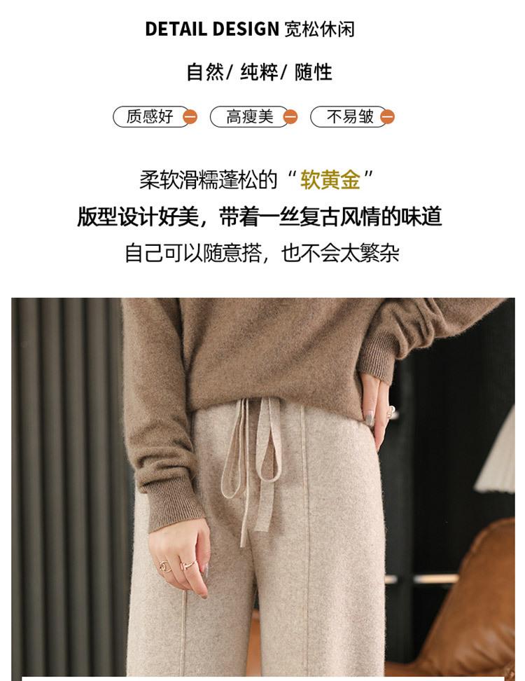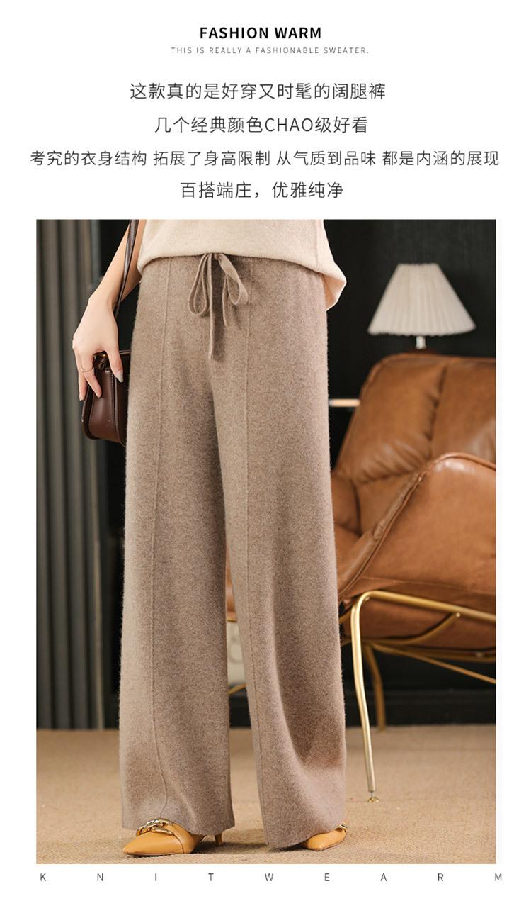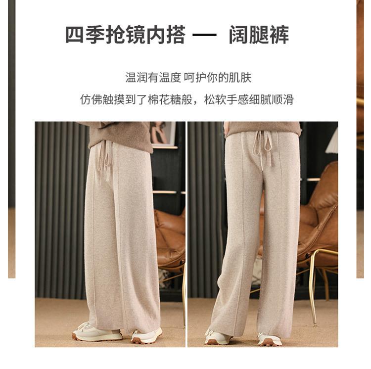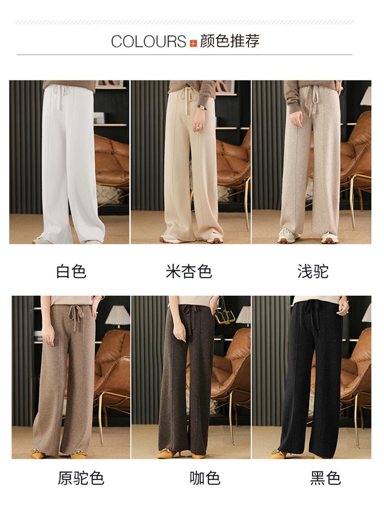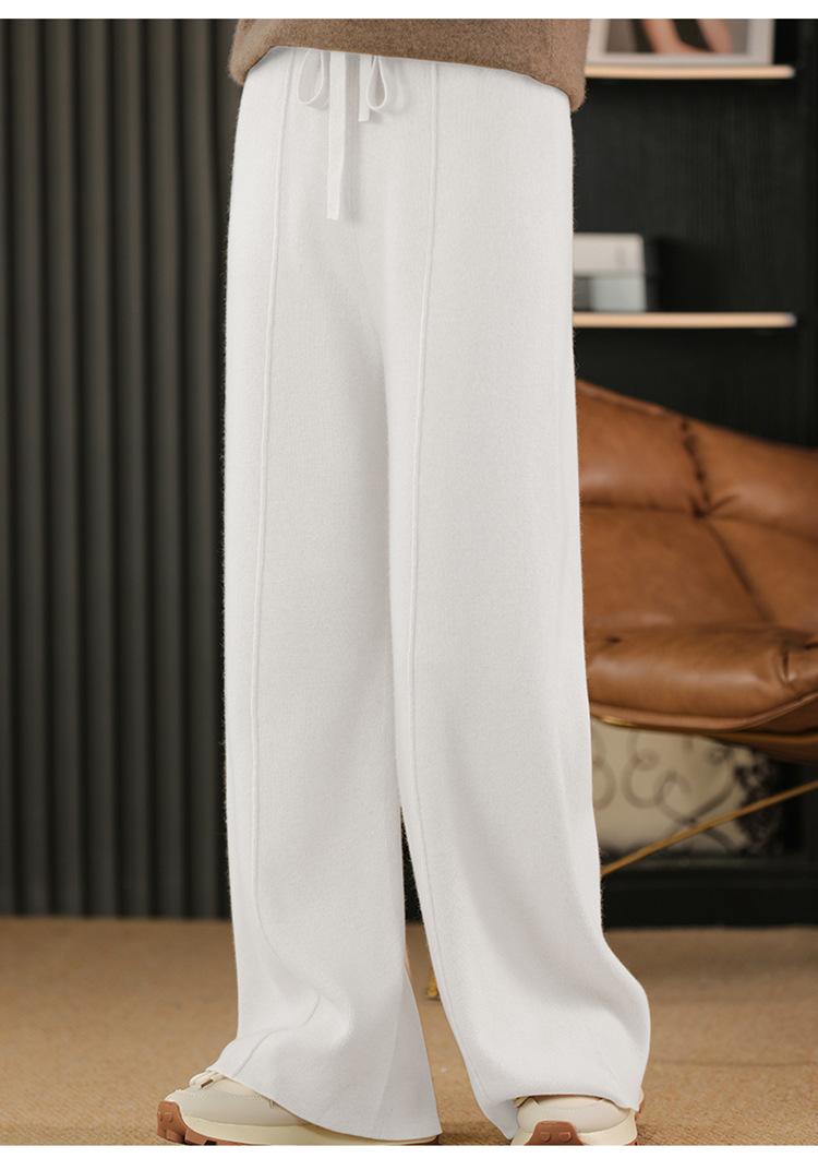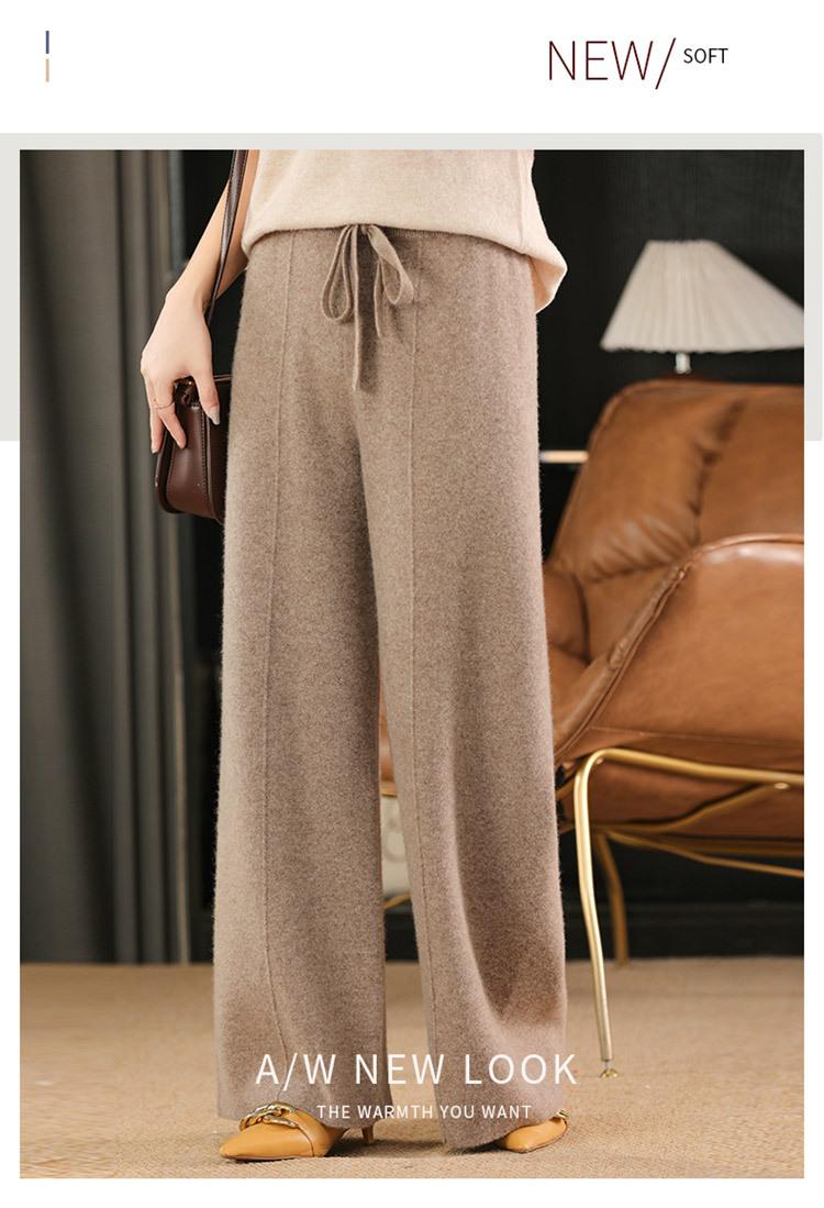 Pantalones de Lana Holgados de Caída Ancha para Mujer Otoño e Invierno Nuevos Pantalones Tejidos de Cintura Alta Adelgazantes Pantalones Largos Pantalones Sueltos hasta el Piso Modernos