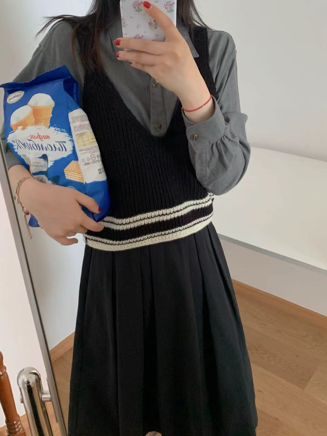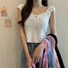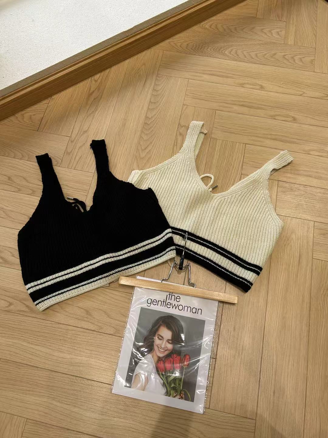 Tank Top de Punto Corto con Raya de Contraste para Mujer Otoño Nuevo Diseño Sentido Sin Mangas Espalda Descubierta Atar Chaleco Suéter