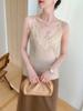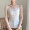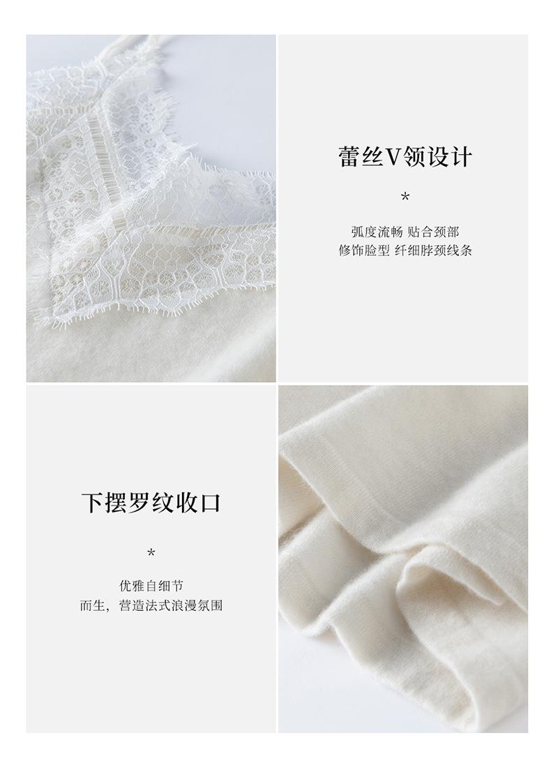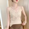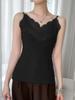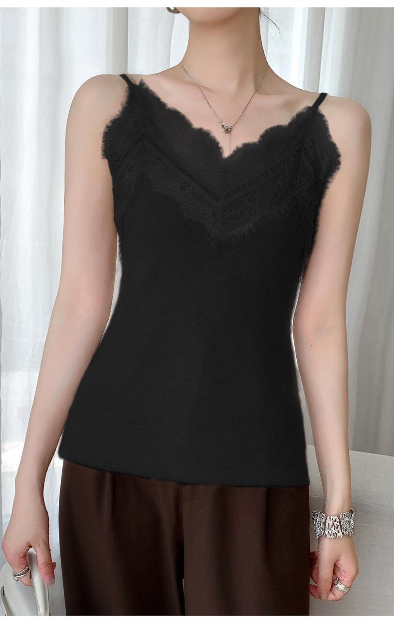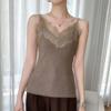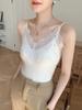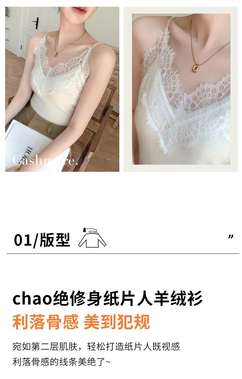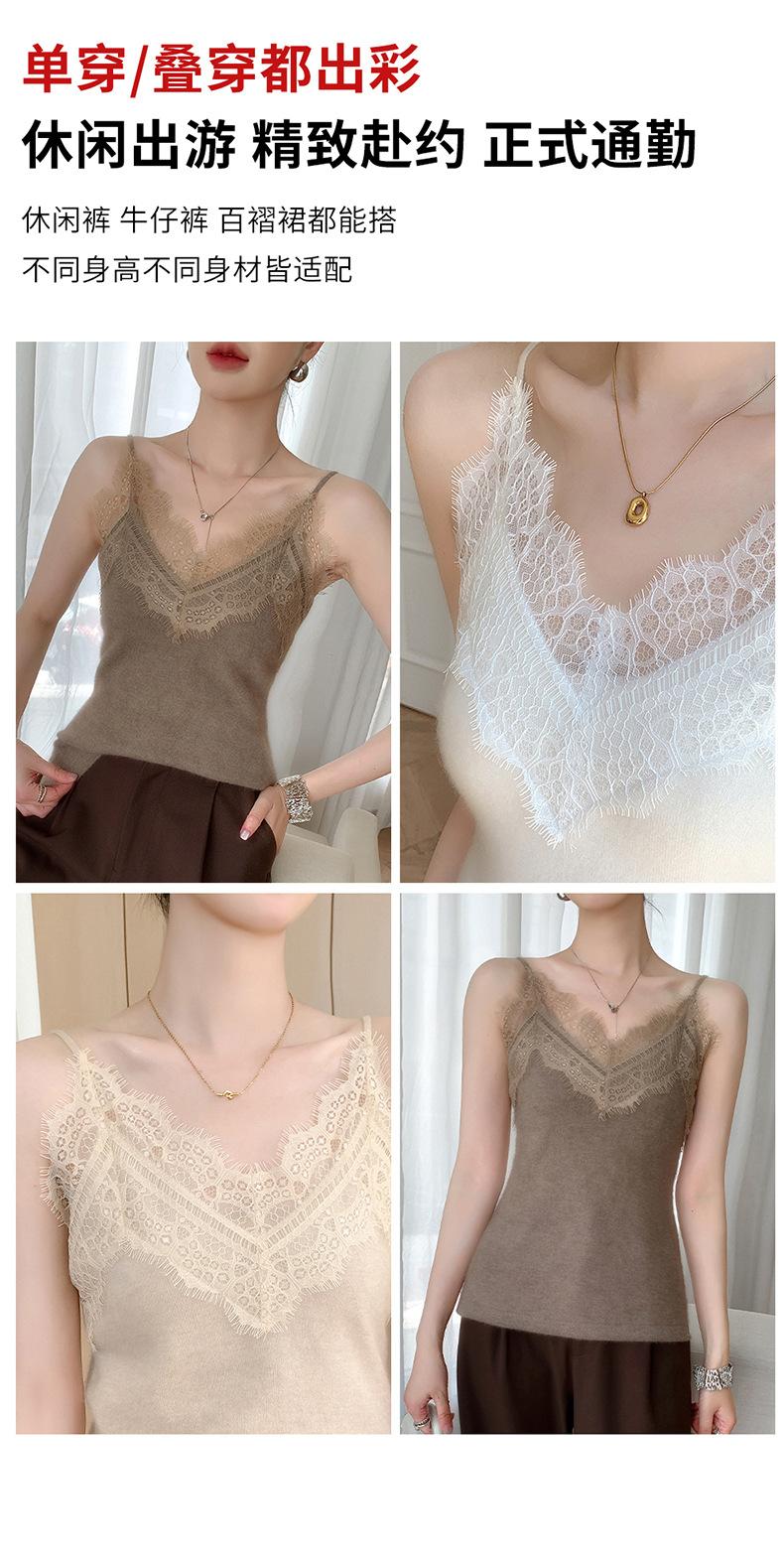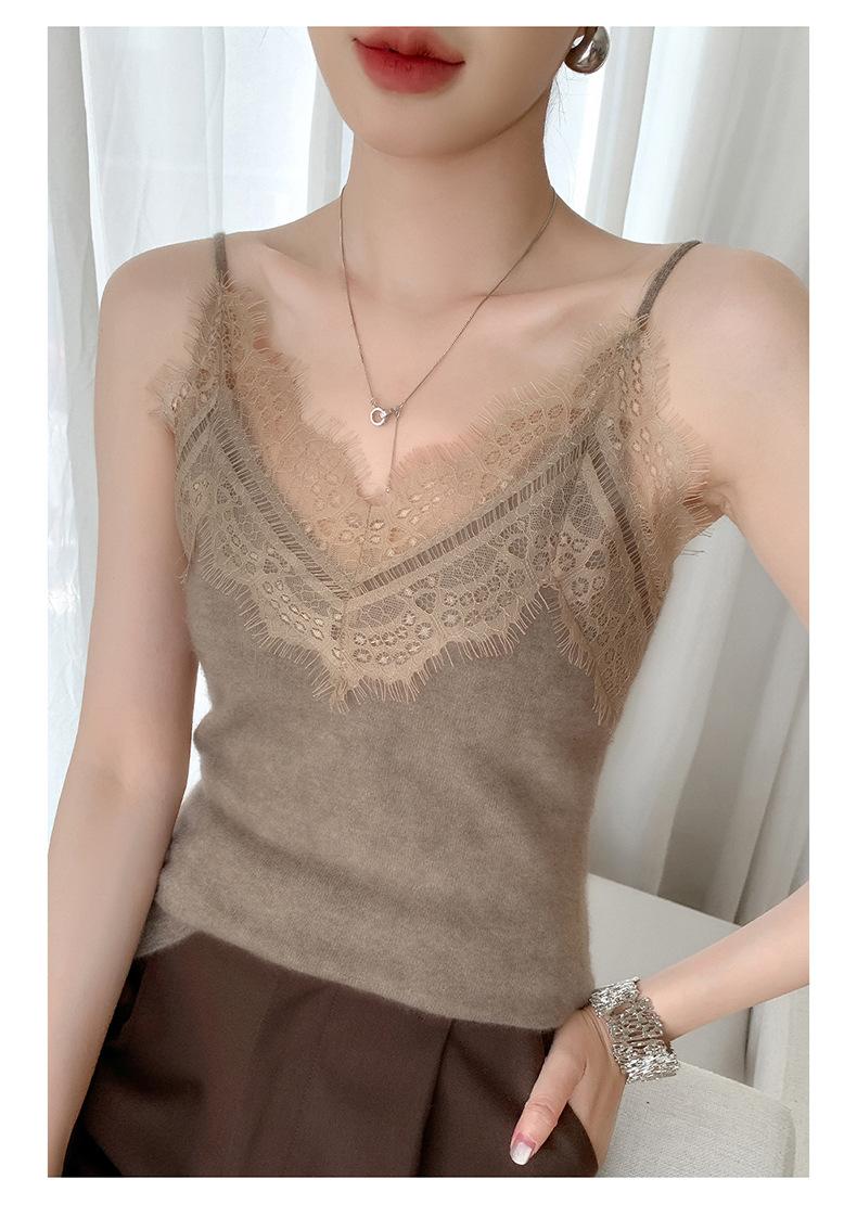 Francés Nuevo Suave y Agradable para la Piel Cuello en V Doble Tirante Diseño de Encaje Camisola de Punto de Cachemira Top para Mujer