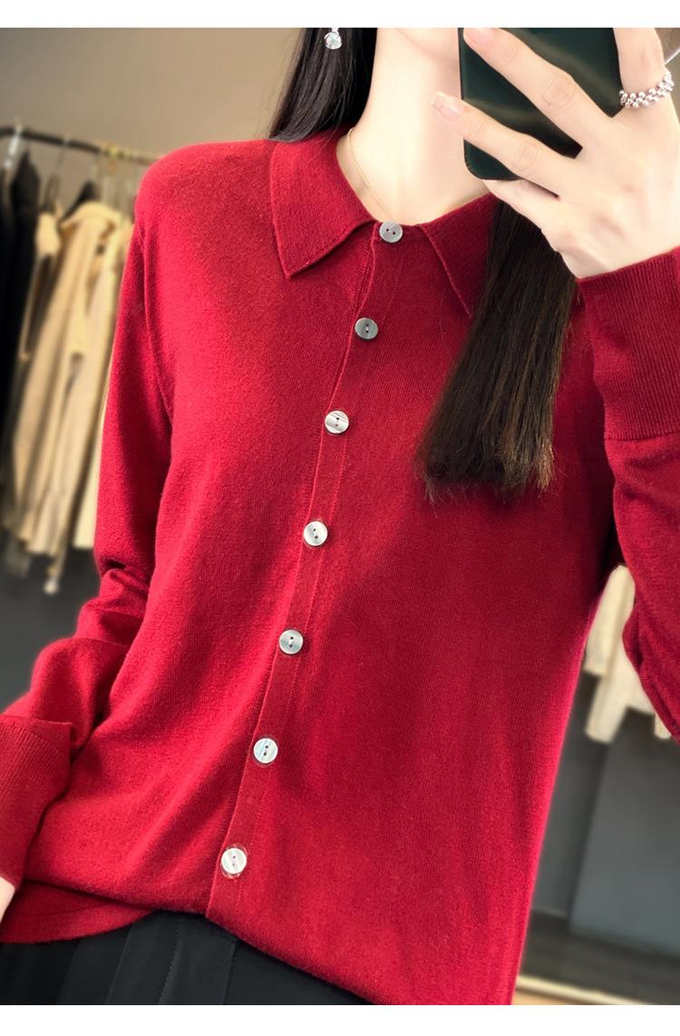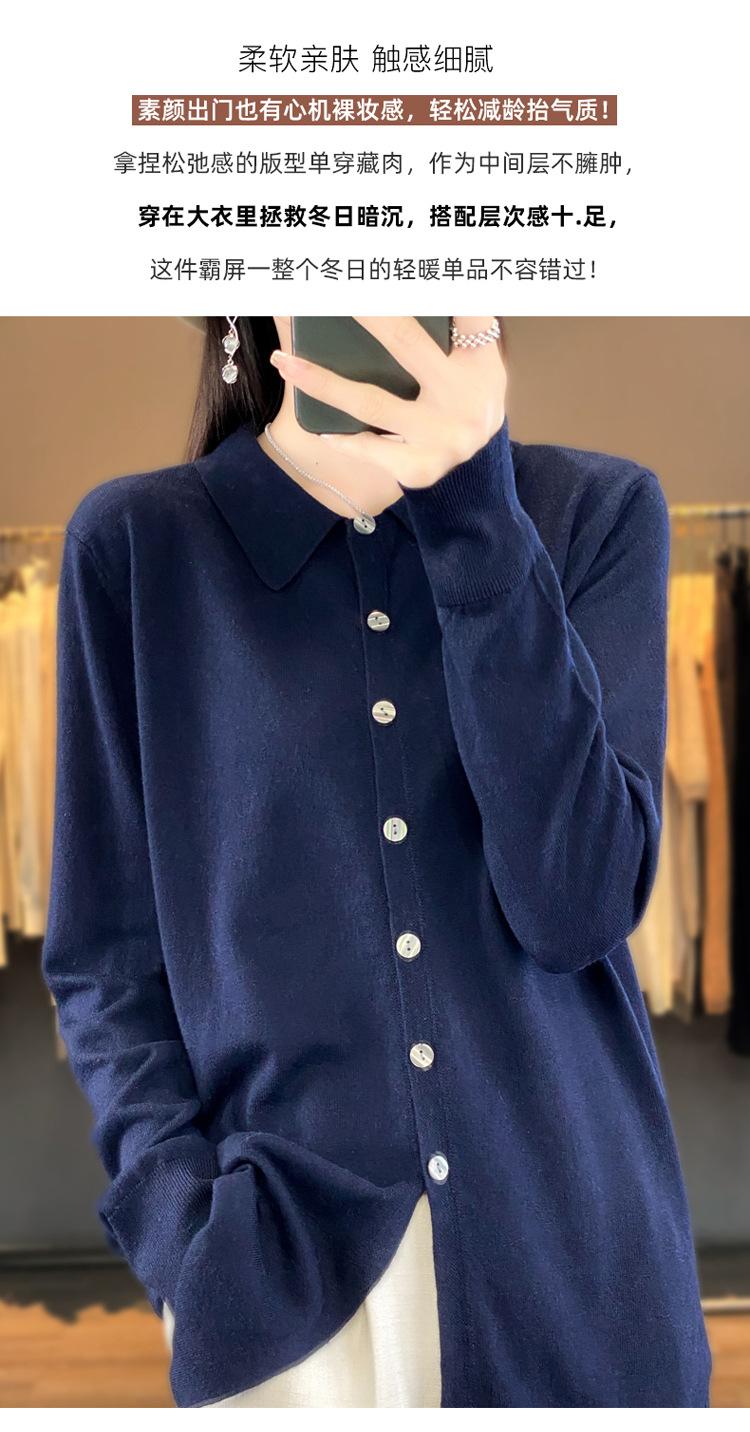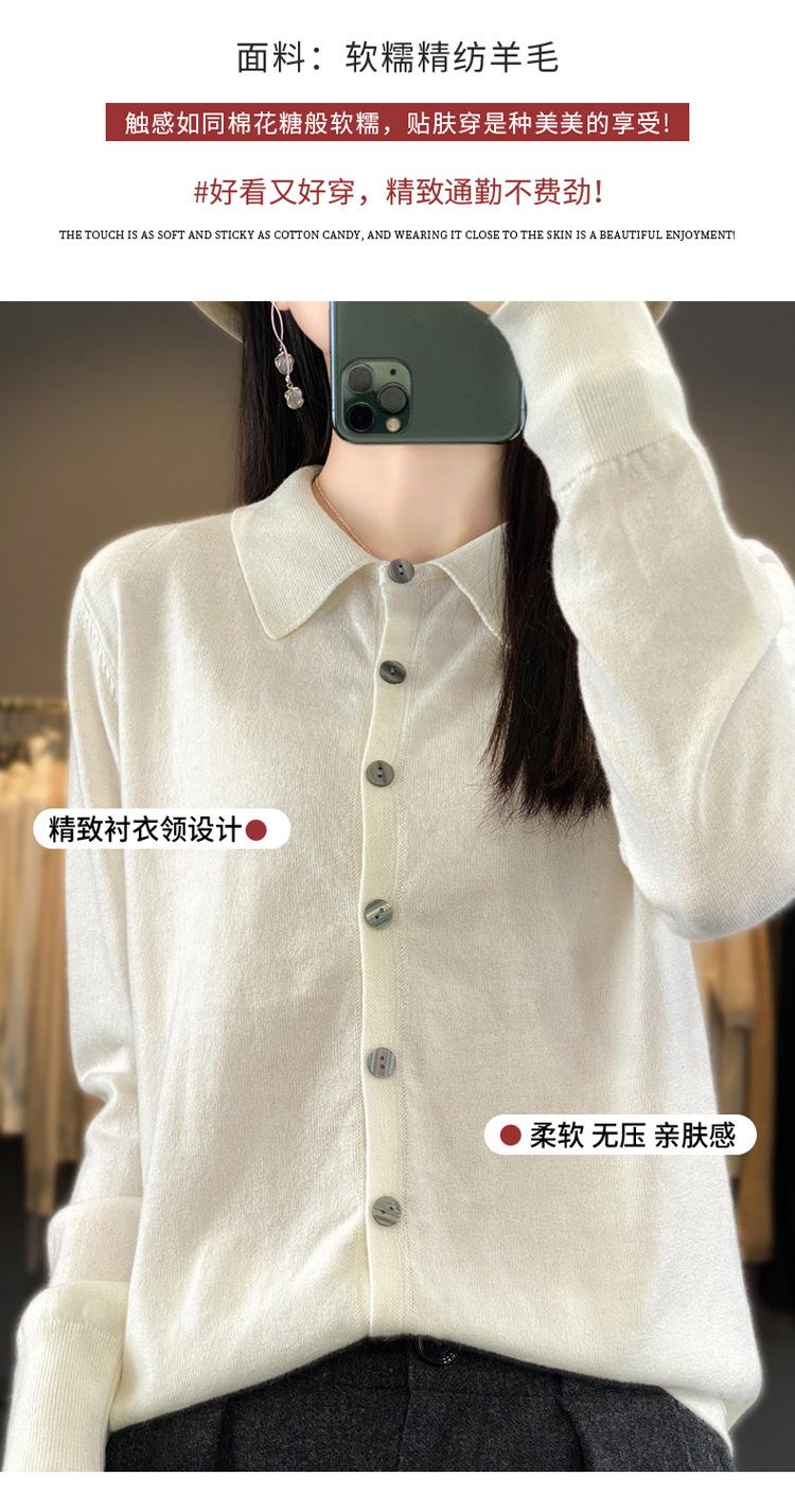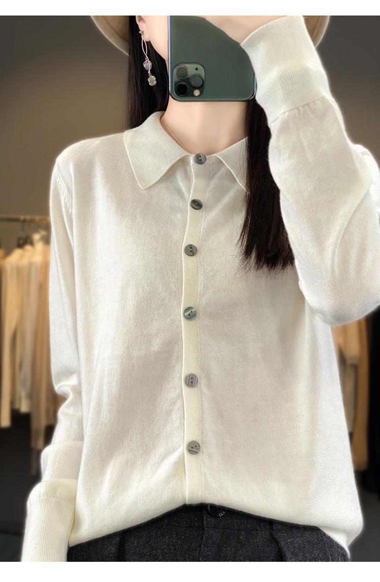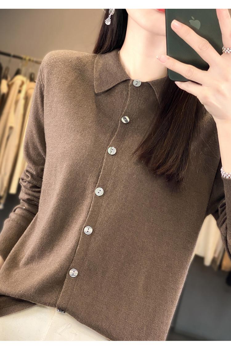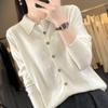 Cárdigan de punto versátil corto y holgado de lana merino fina transfronteriza para otoño e invierno 2025, nueva ropa de mujer con cuello POLO cálido