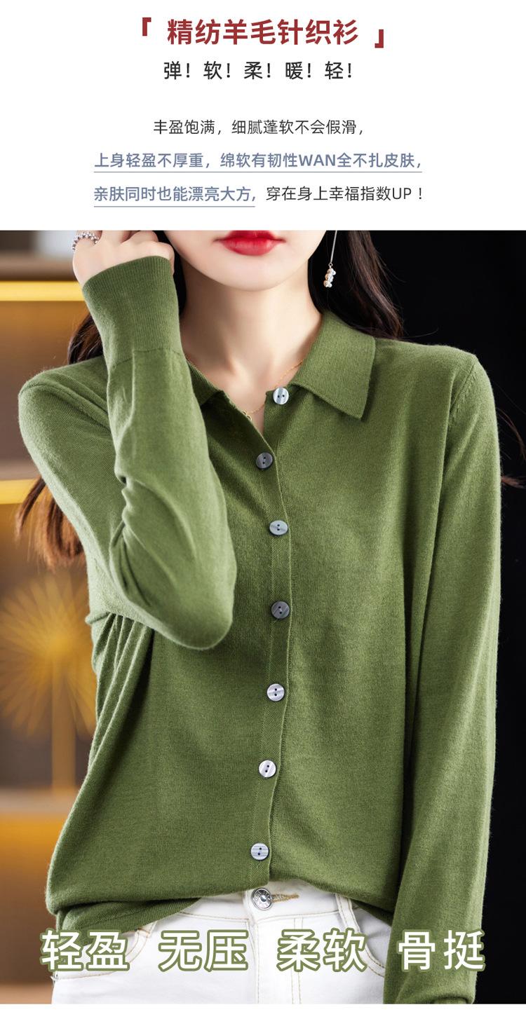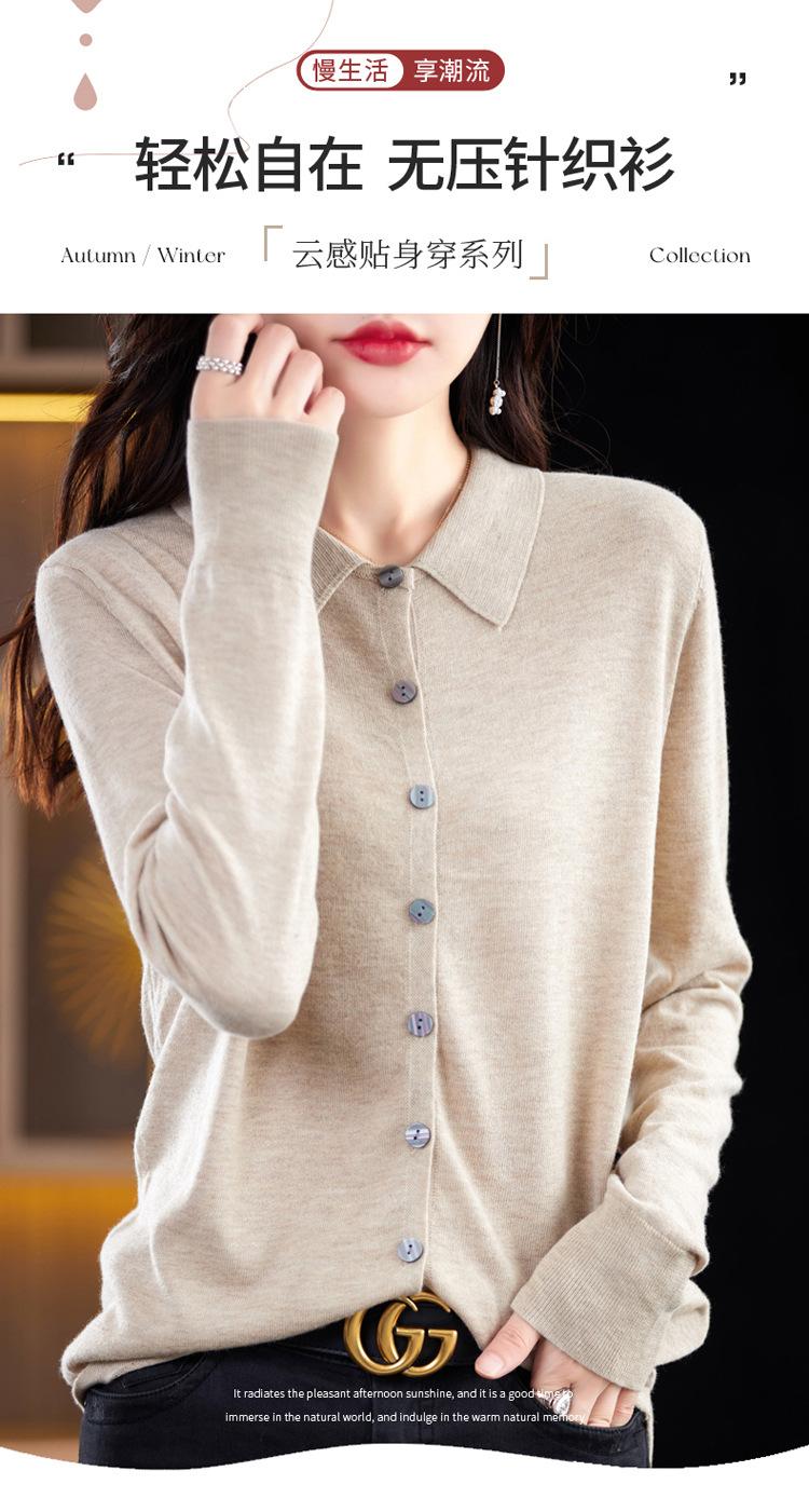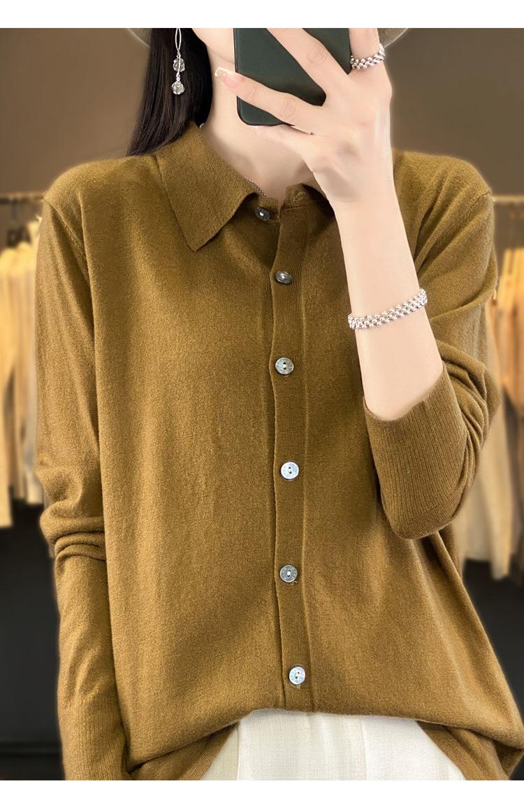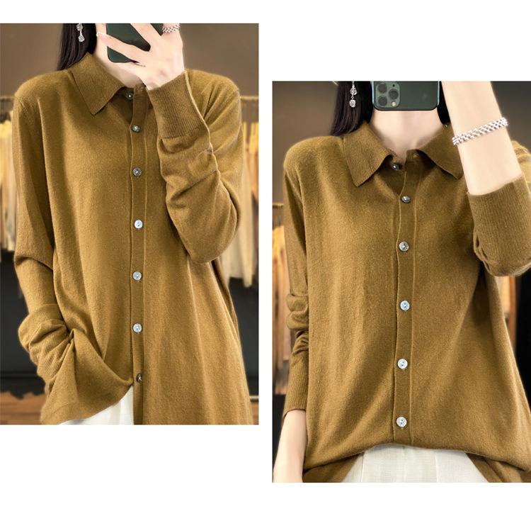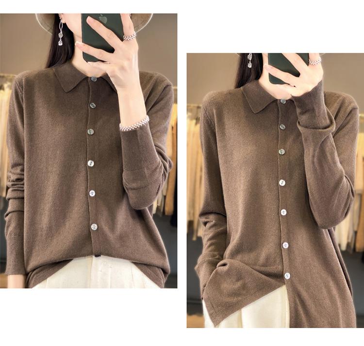 Cárdigan de punto versátil corto y holgado de lana merino fina transfronteriza para otoño e invierno 2025, nueva ropa de mujer con cuello POLO cálido