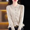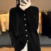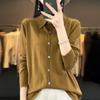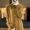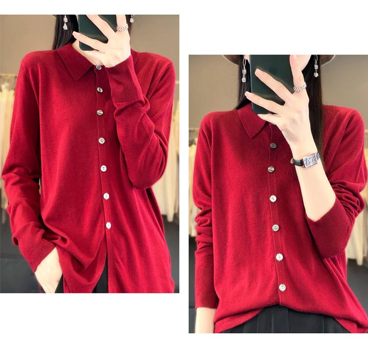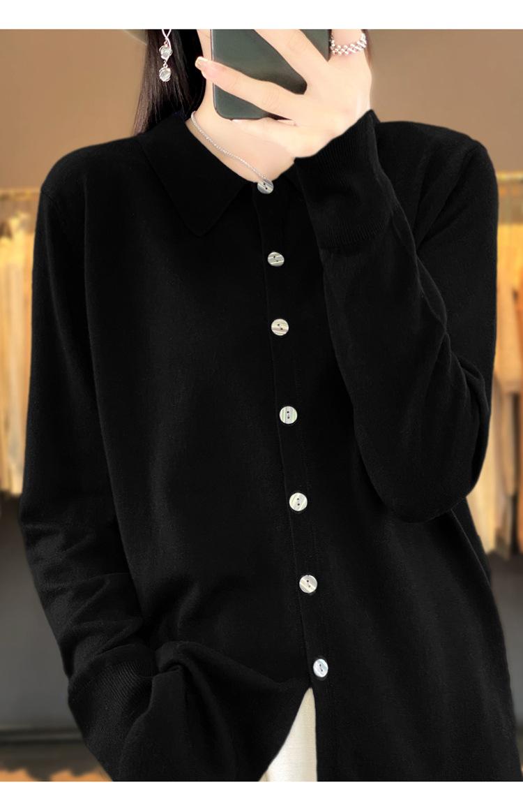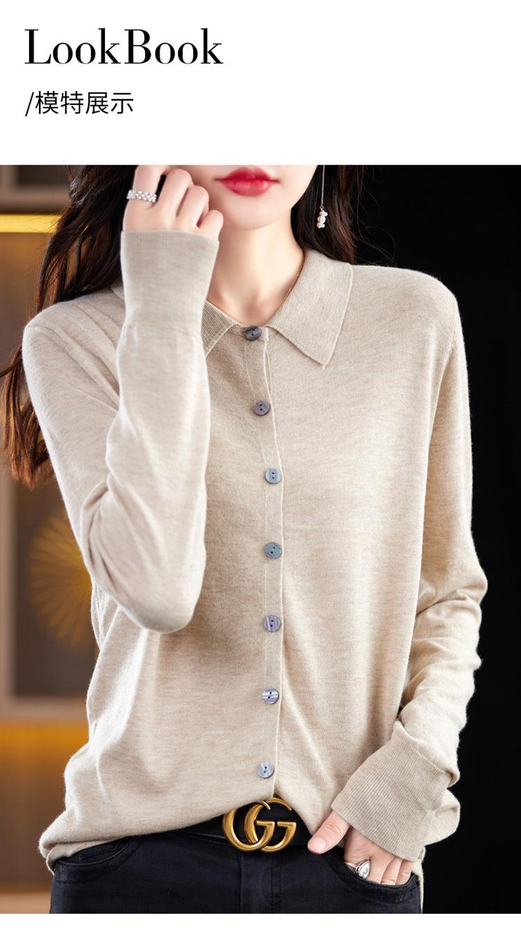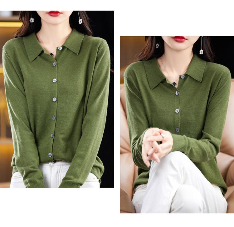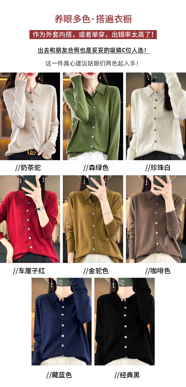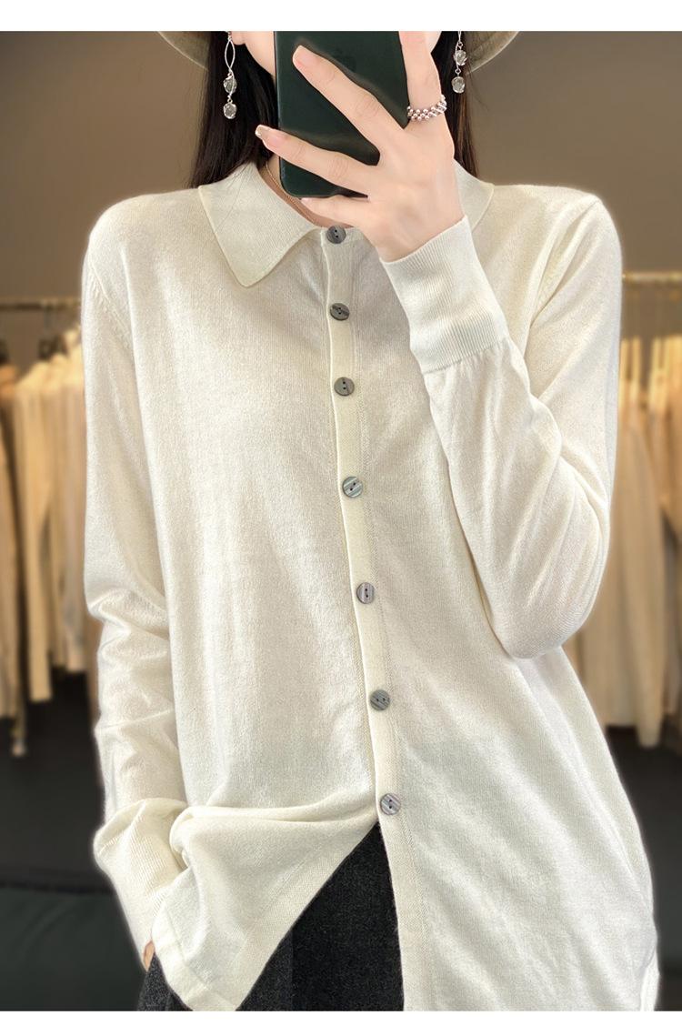 Cárdigan de punto versátil corto y holgado de lana merino fina transfronteriza para otoño e invierno 2025, nueva ropa de mujer con cuello POLO cálido