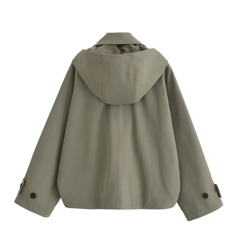 Otoño 2025 Nuevo Estilo Europeo y Americano Ropa de Trabajo Suelto Casual Capa Abrigo Trench con Capucha Prendas de Exterior Top 0518242