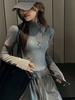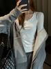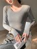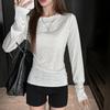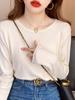 Camiseta básica de manga larga con cuello semiabierto de botón francés para mujer, diseño de otoño, sentido de la línea brillante, decoración, top holgado que se puede llevar por fuera