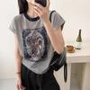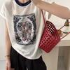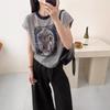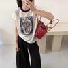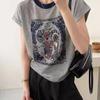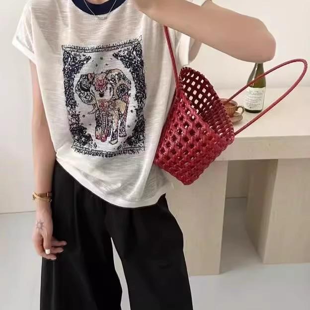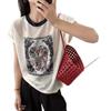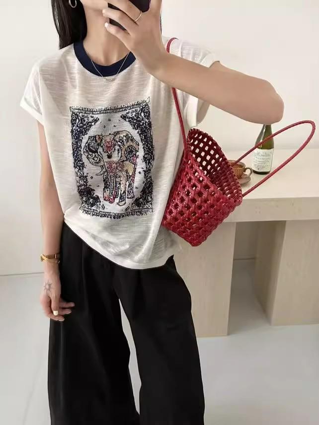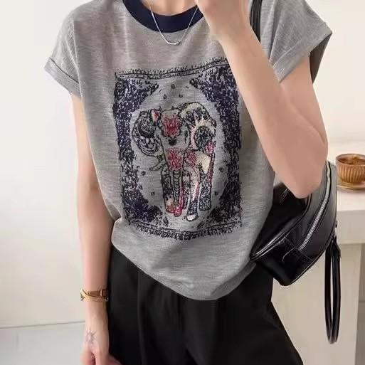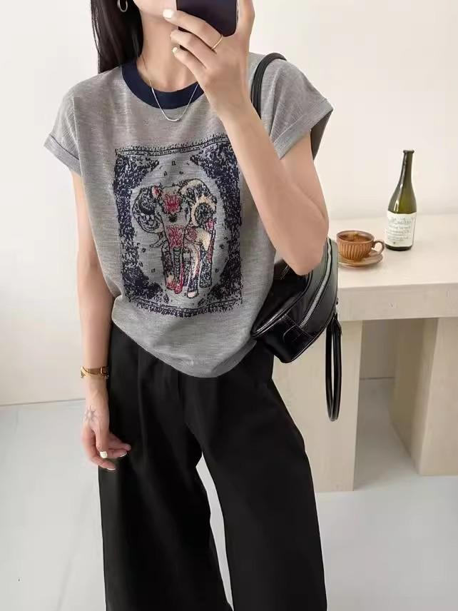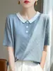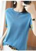 2025 Verano Nuevo Estilo Coreano Moda Cuello Redondo Combinación de Colores Manga Corta Camiseta de Punto para Mujer Delgada Suelta Adelgazante Combinable