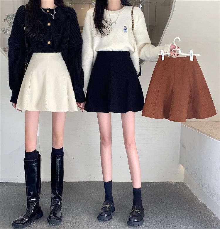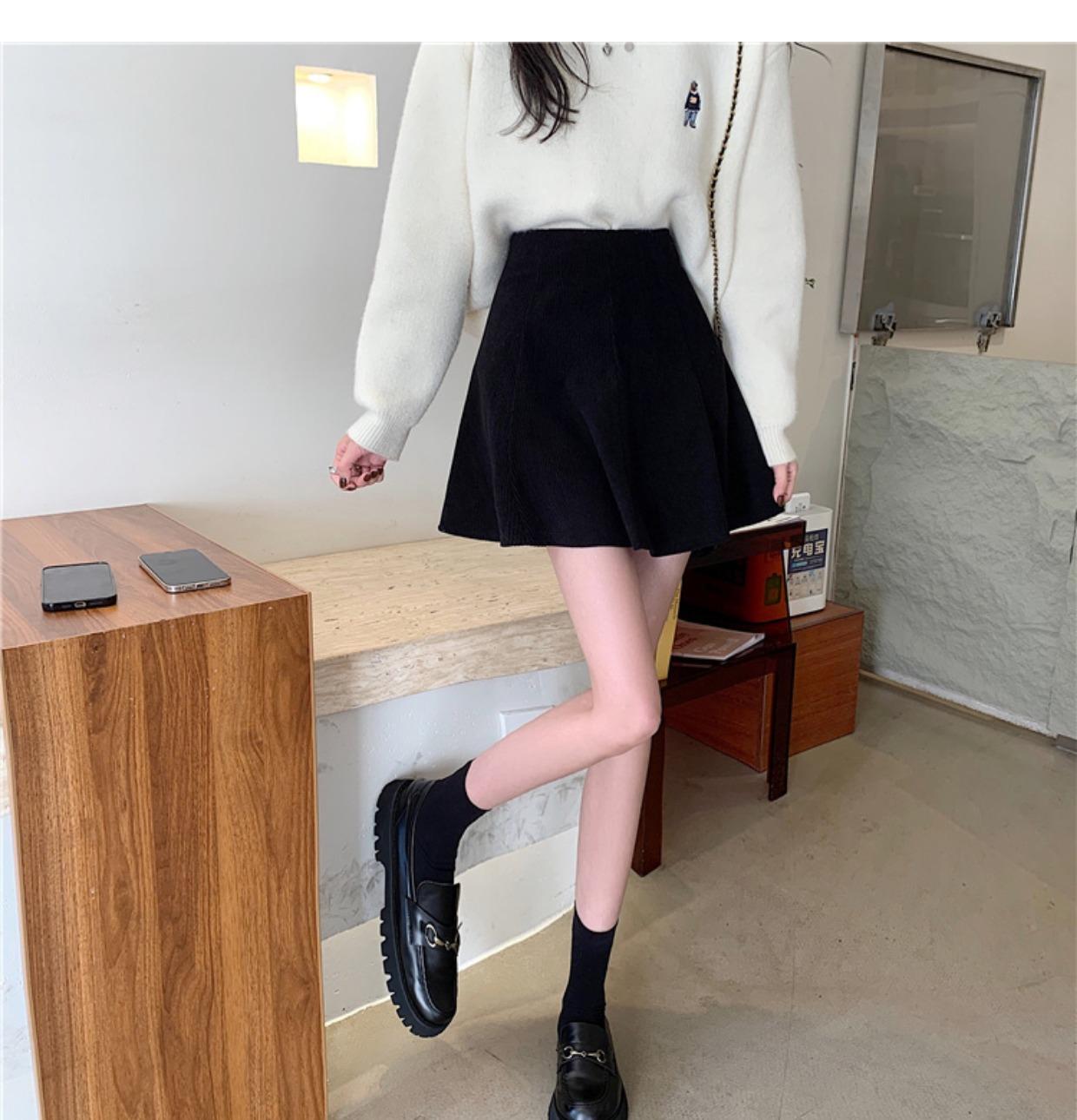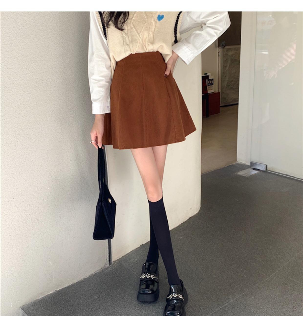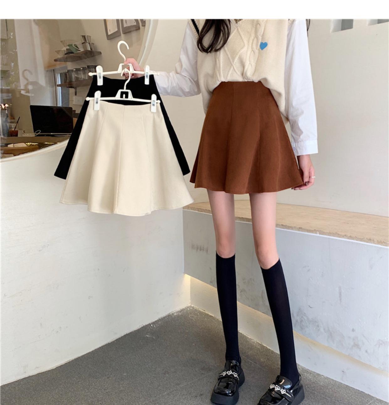 Nueva falda de pana adelgazante de cintura alta para mujer 2025 nuevo estilo falda paraguas a la moda falda corta acampanada antiexposición