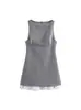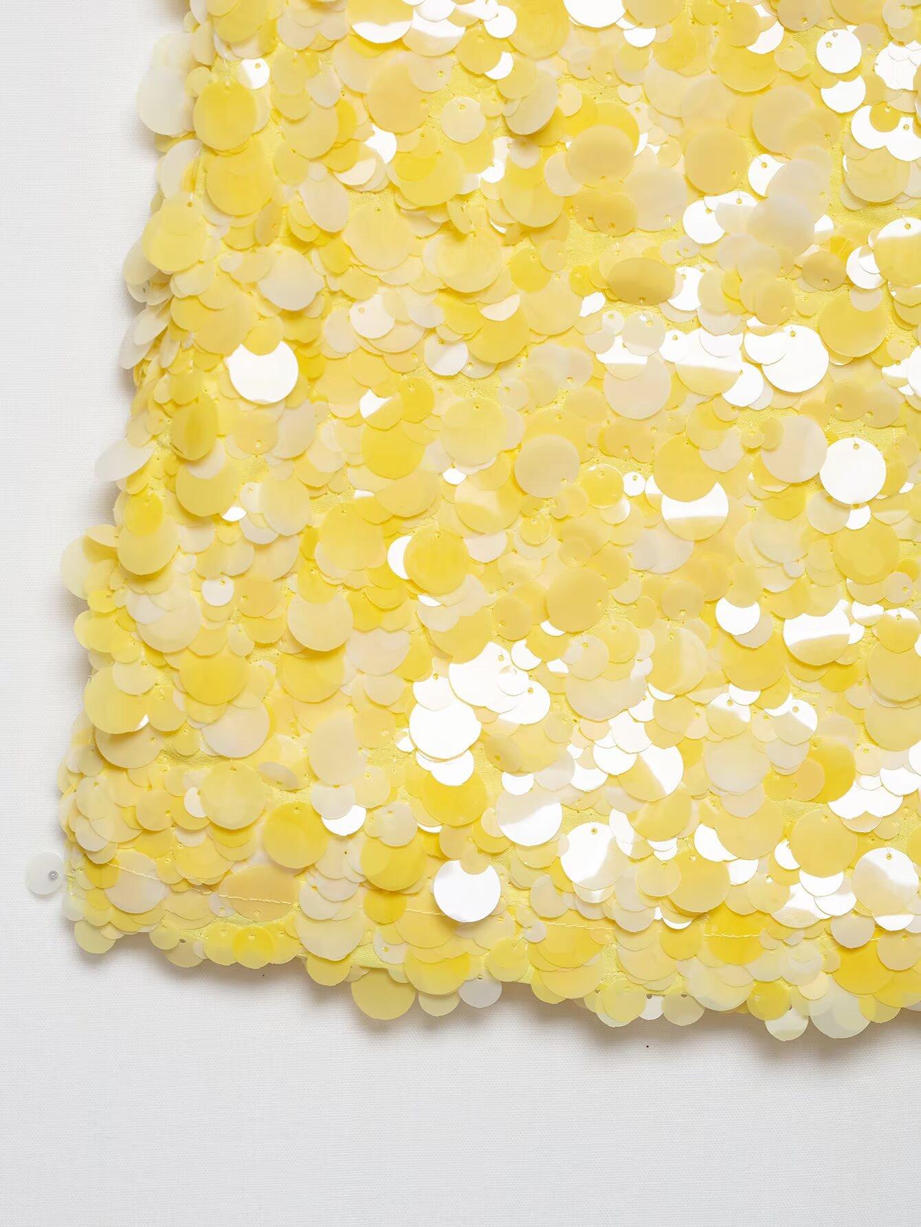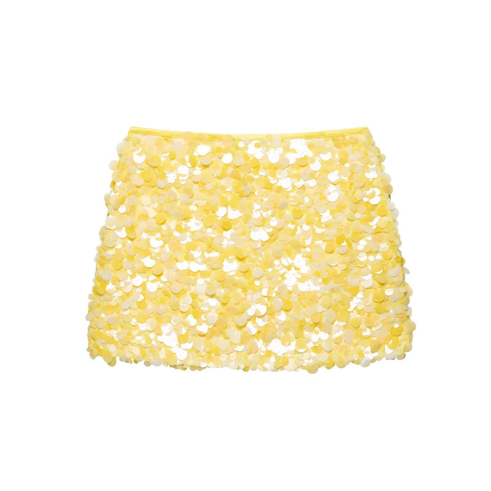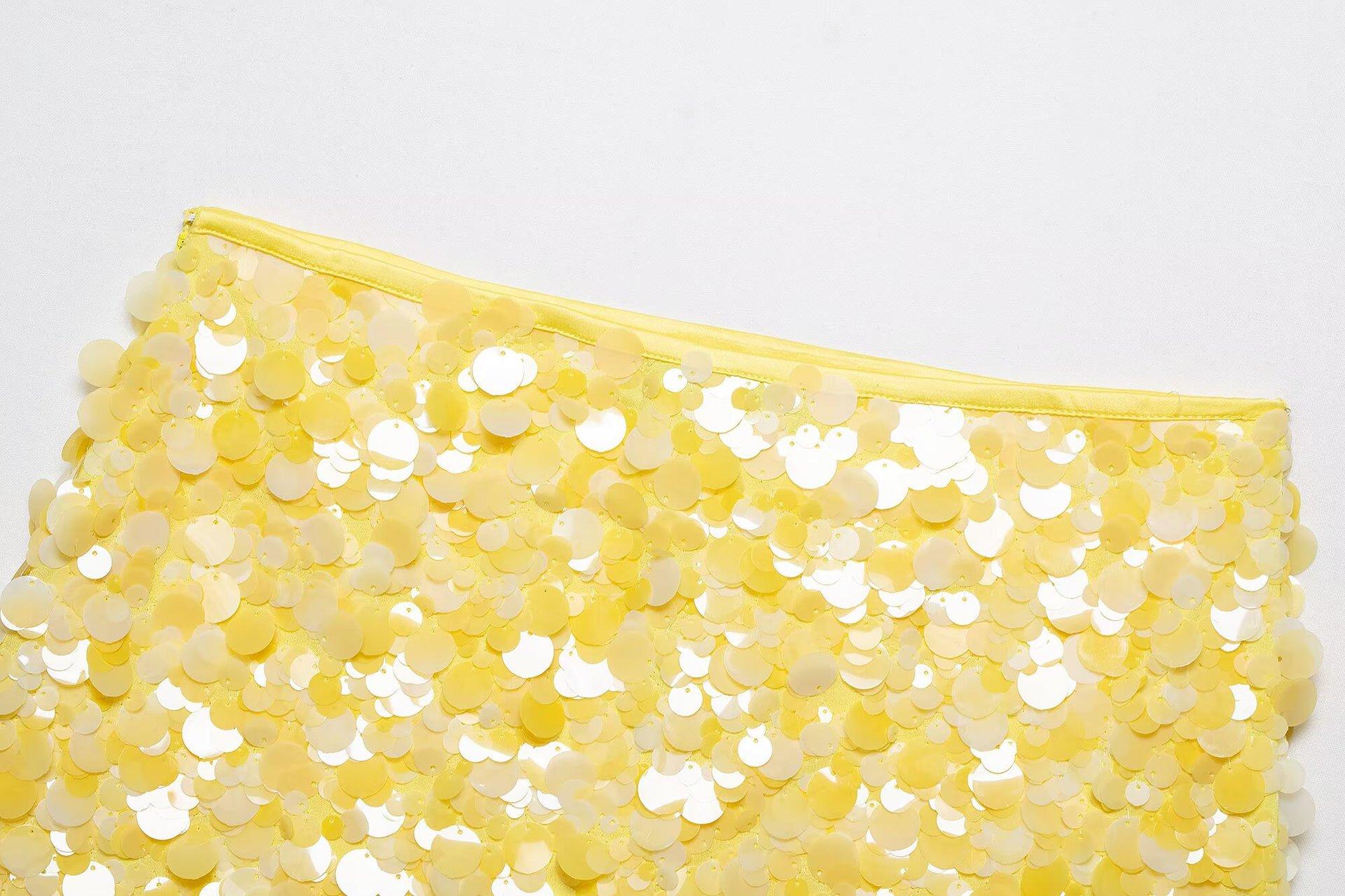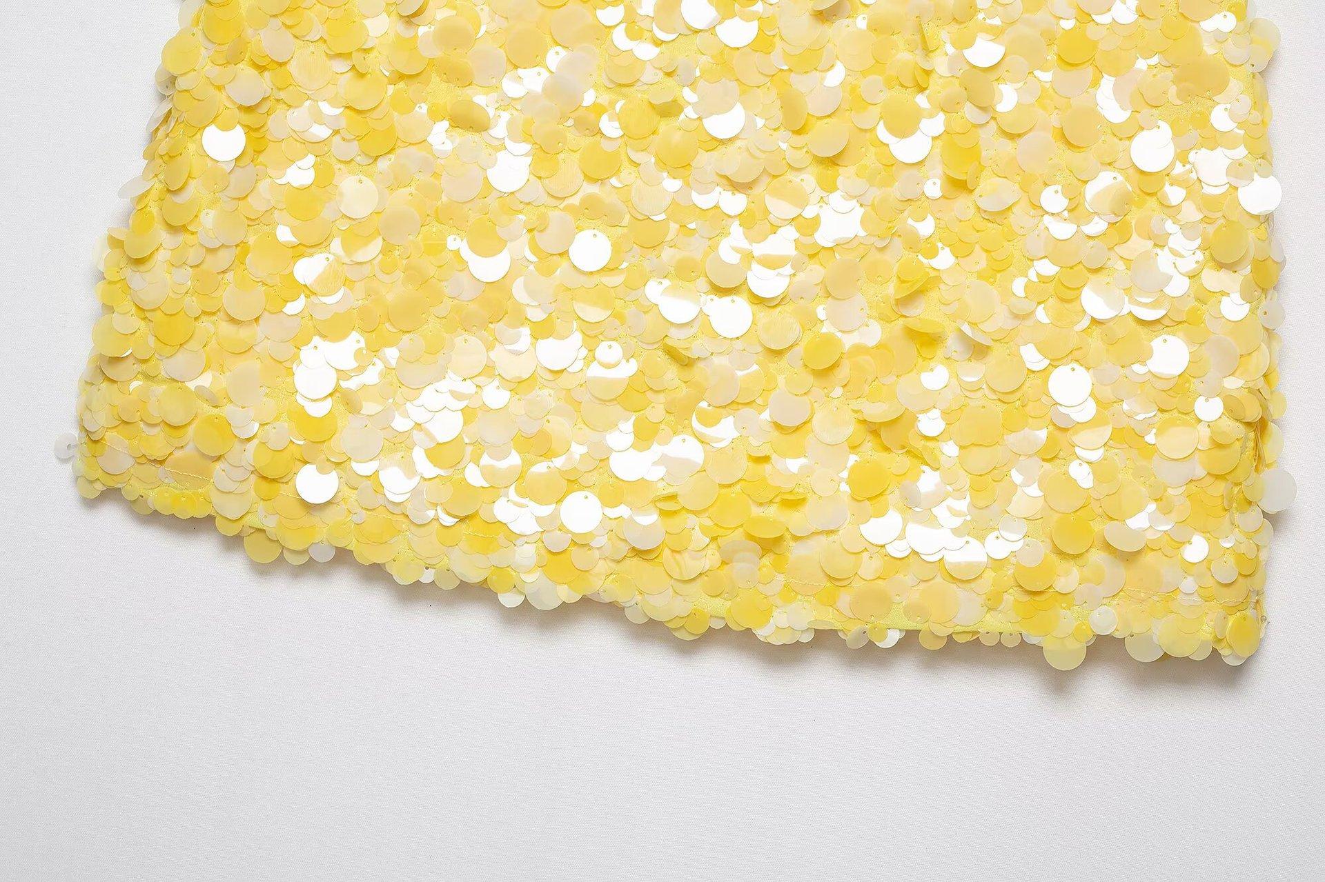 Estilo Europeo y Americano Transfronterizo Exportación Aliexpress Ropa de Mujer Zr Punto Nuevo Cuello Cuadrado Estampado Lentejuelas Minifalda Tejida
